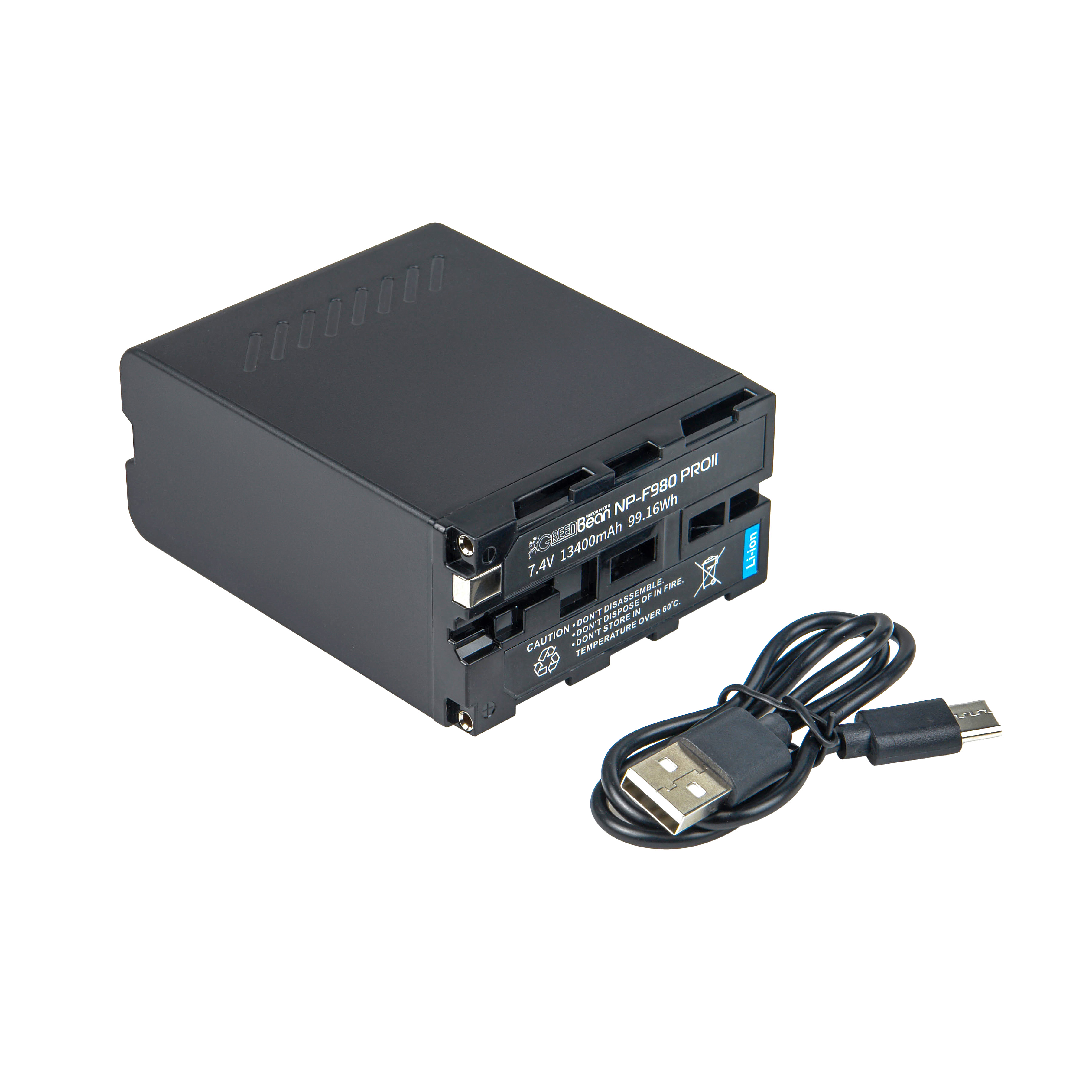 GreenBean NP-F980 PROII - аккумуляторный литий-ионный блок емкостью 13400 мАч, который предназначен для автономного питания различного оборудования: осветителей, видеосендеров, слайдеров, видеомониторов, а также видеокамер с адаптером типа Sony NP-F.