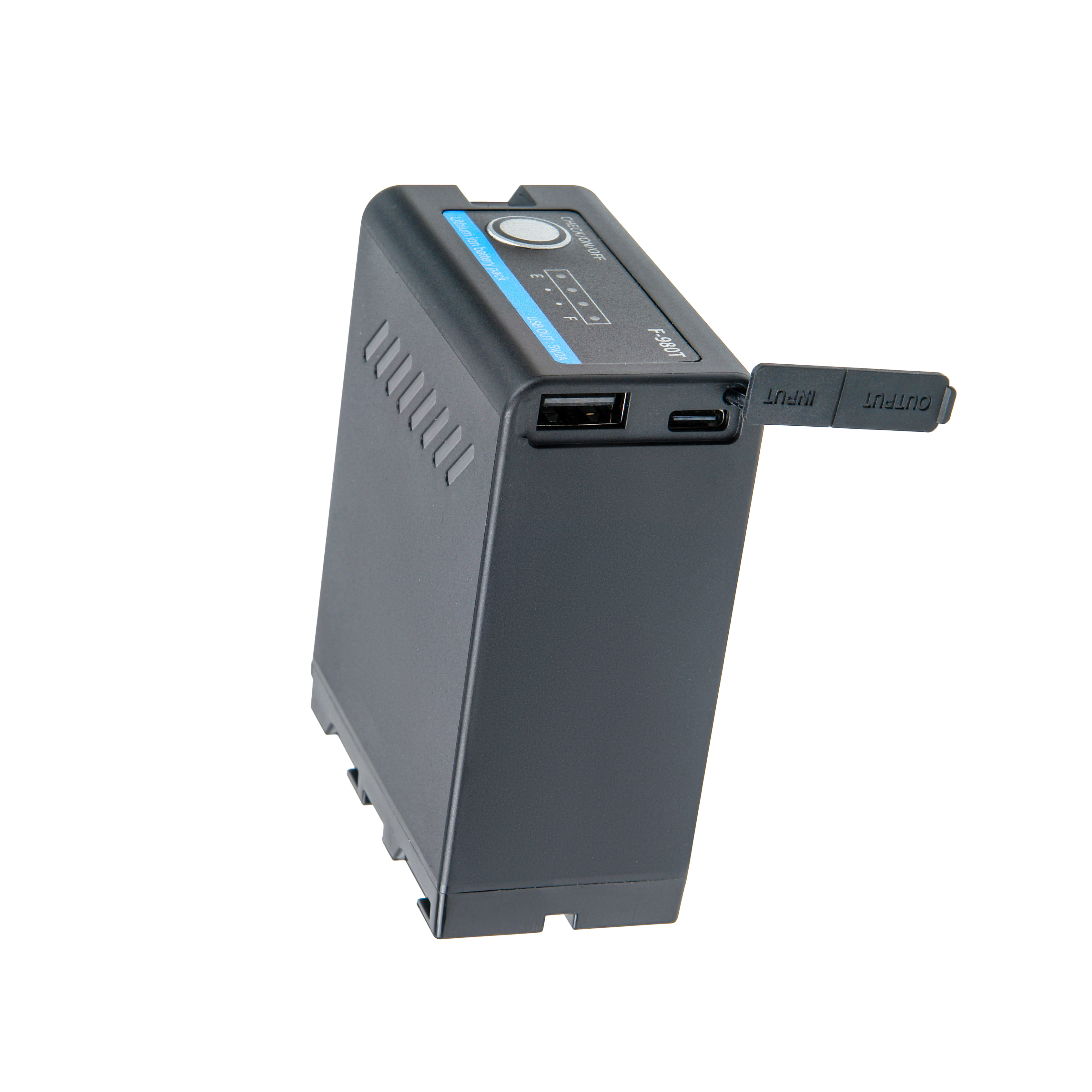 Модель NP-F980 PROII имеет функцию проверки заряда: при нажатии кнопки «Check» четыре светодиодных индикатора показывают уровень заряда батареи.