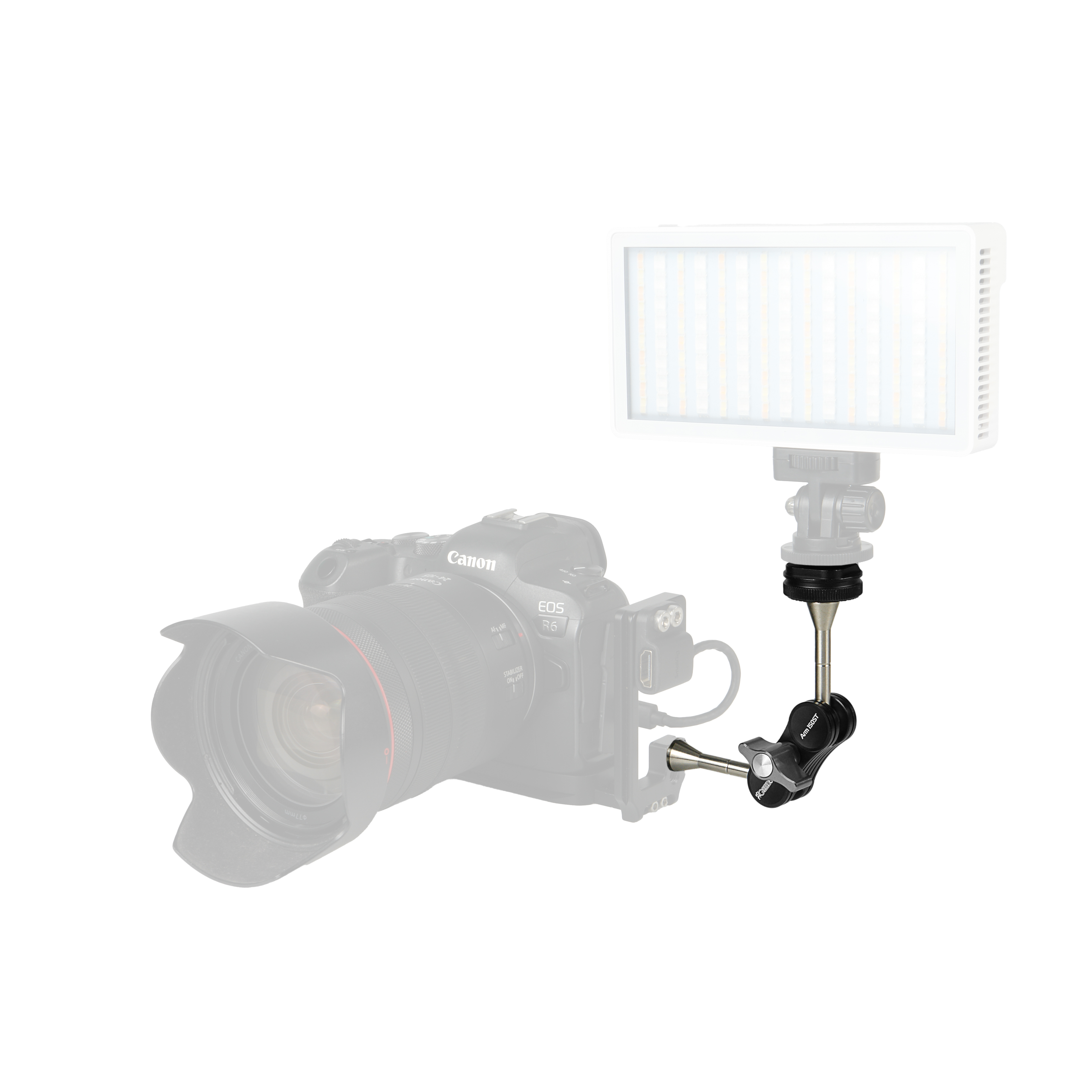 Основой Magic Arm служит двойной шаровой шарнир с диапазоном наклона ±90° и полным вращением на 360°. Фиксация обоих шарниров осуществляется одной рукояткой для быстрой установки положения.