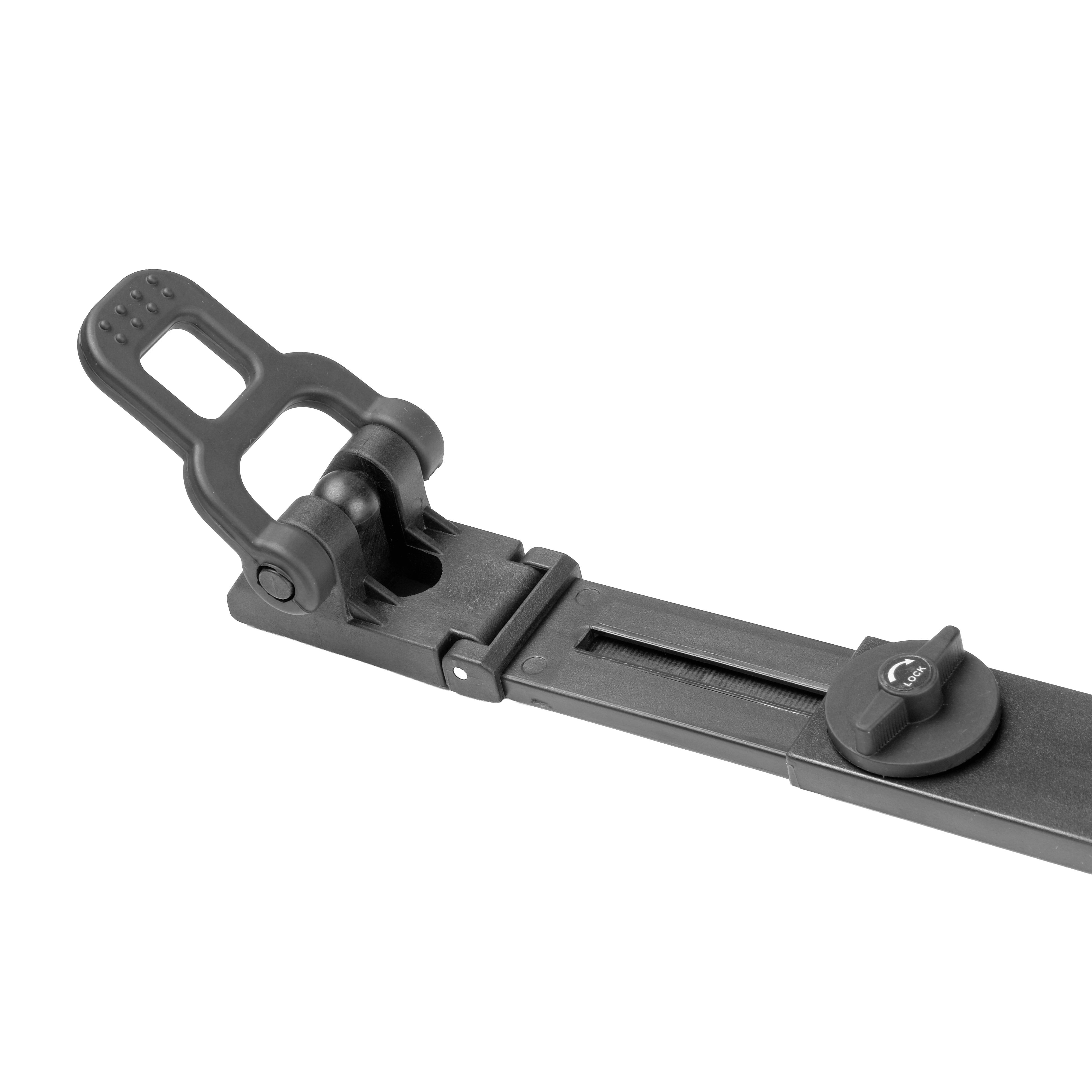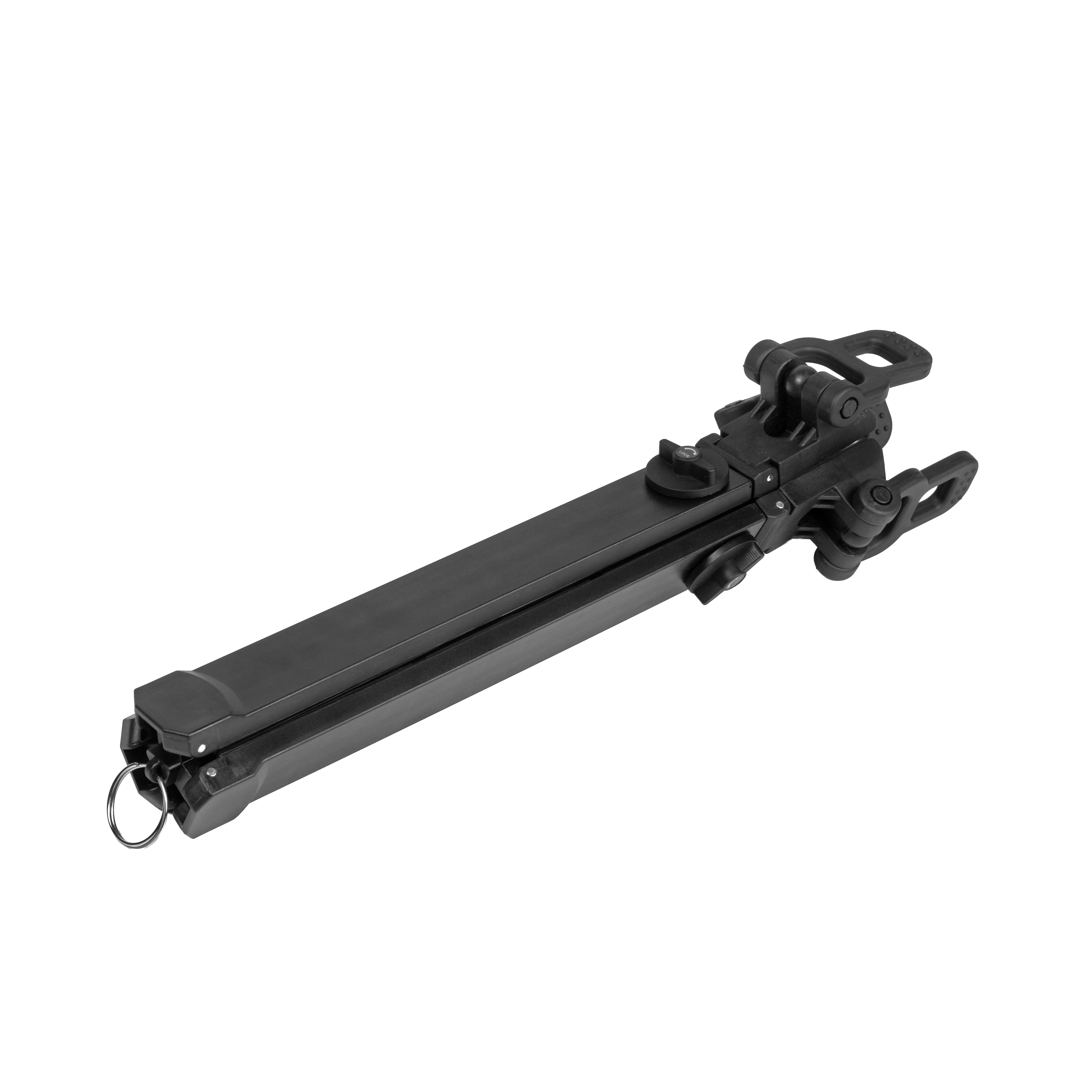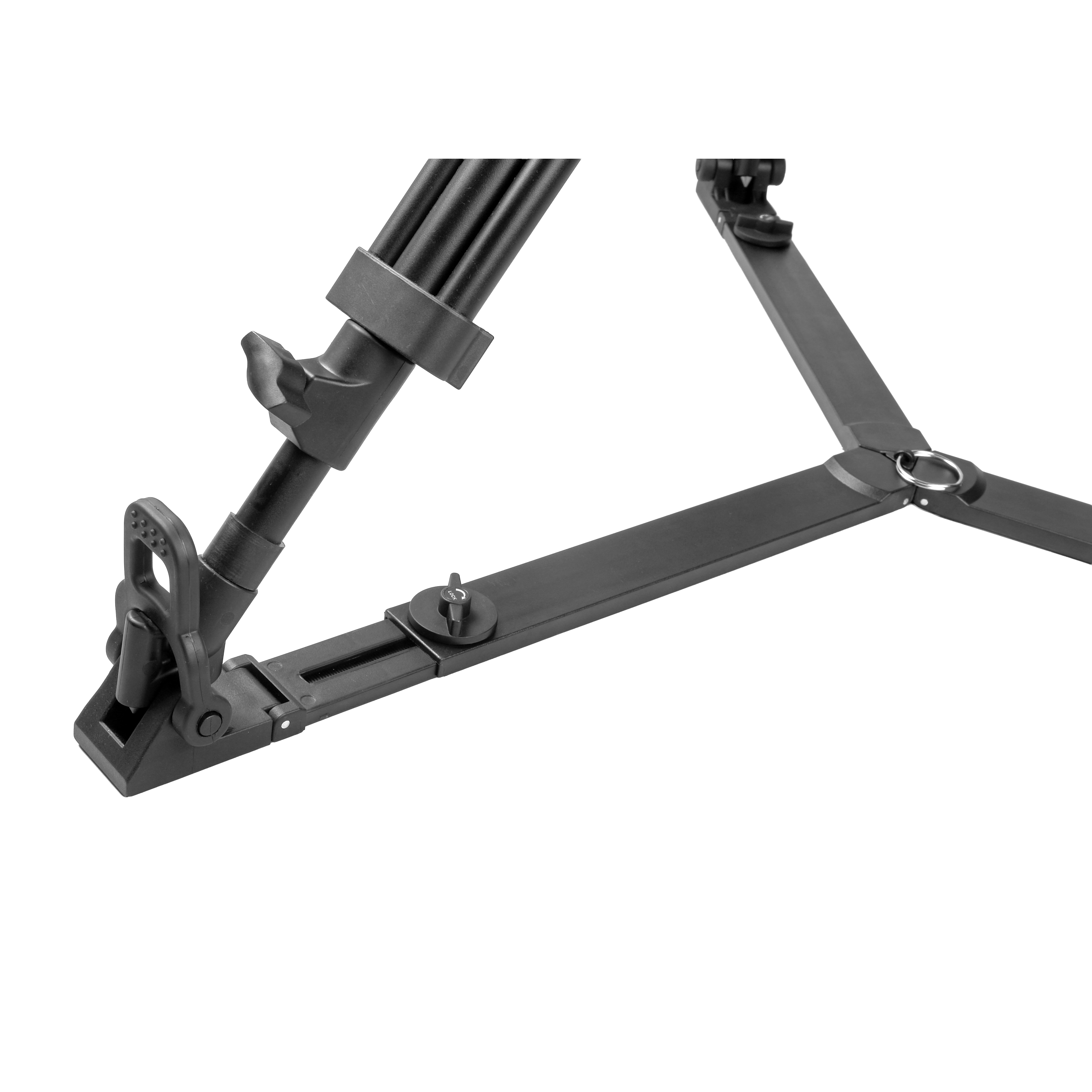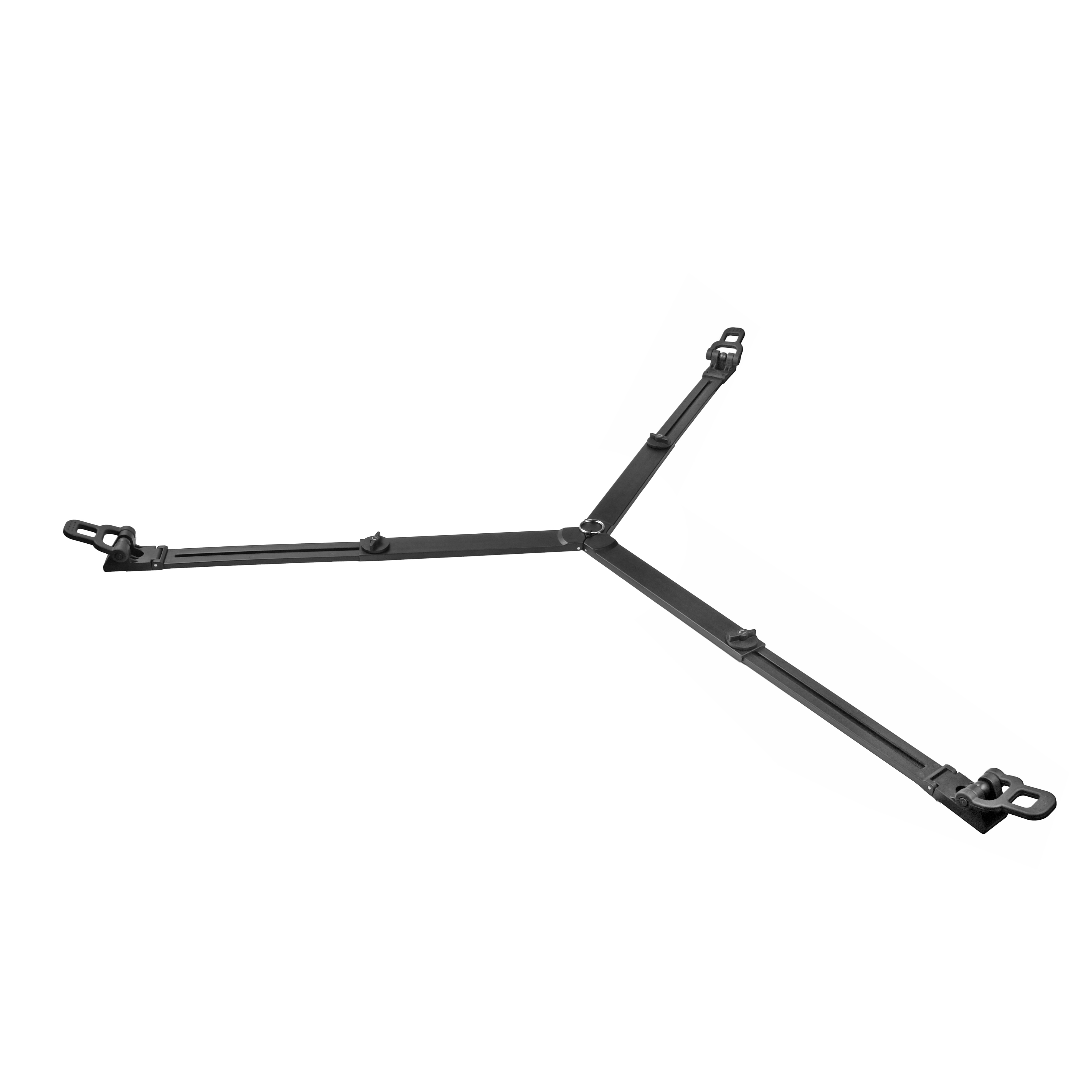 Телескопическая конструкция направляющих с надежной фиксацией позволит использовать растяжку практически с любым штативом. Минимальный разлет растяжки (расстояние от середины основания до точки крепления под шипы) составляет 70 см, максимальный – 122 см. Размах ног штатива в месте крепления стяжки от 140 до 244 см соответственно.