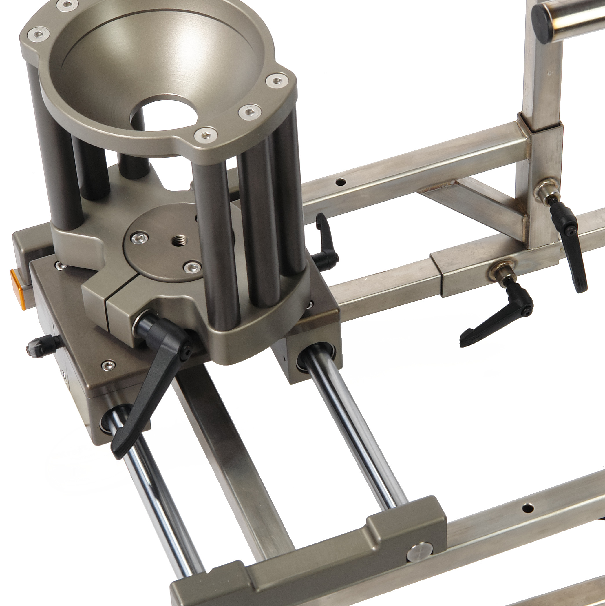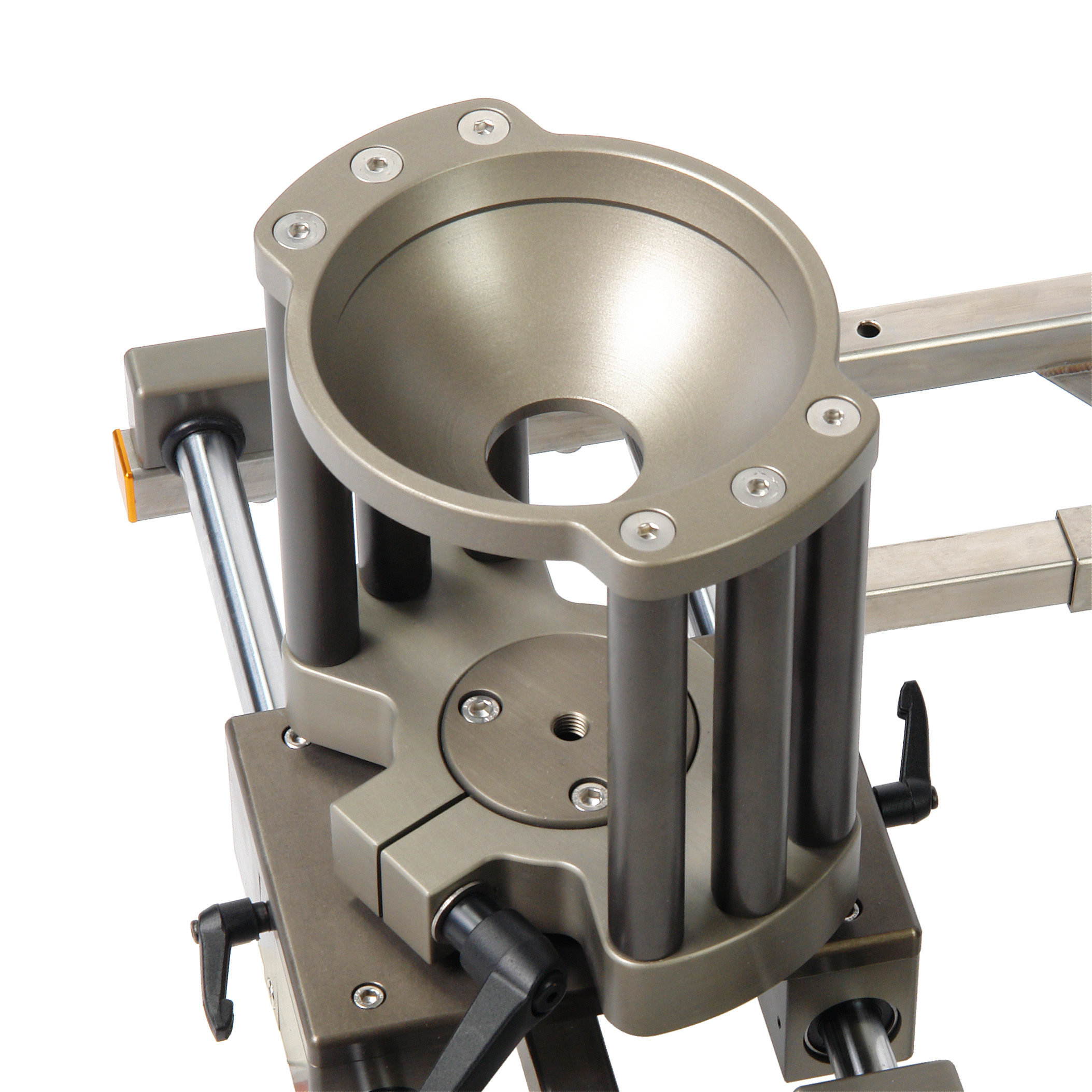 Камера, закрепленная на дополнительно приобретенной видеоголовке, устанавливается на шаровой базе автогрипа. В комплект входят шаровые базы диаметром 100 и 150 мм (для каждого автогрипа). Шаровая база передвигается по направляющим в пределах 300 мм, что позволяет выбрать низкую или более высокую точку съемки. Для балансировки камеры шаровая база может перемещаться по направляющим автогрипа. Выбранные положения фиксируются винтами с крупными переставными регулирующими ручками.