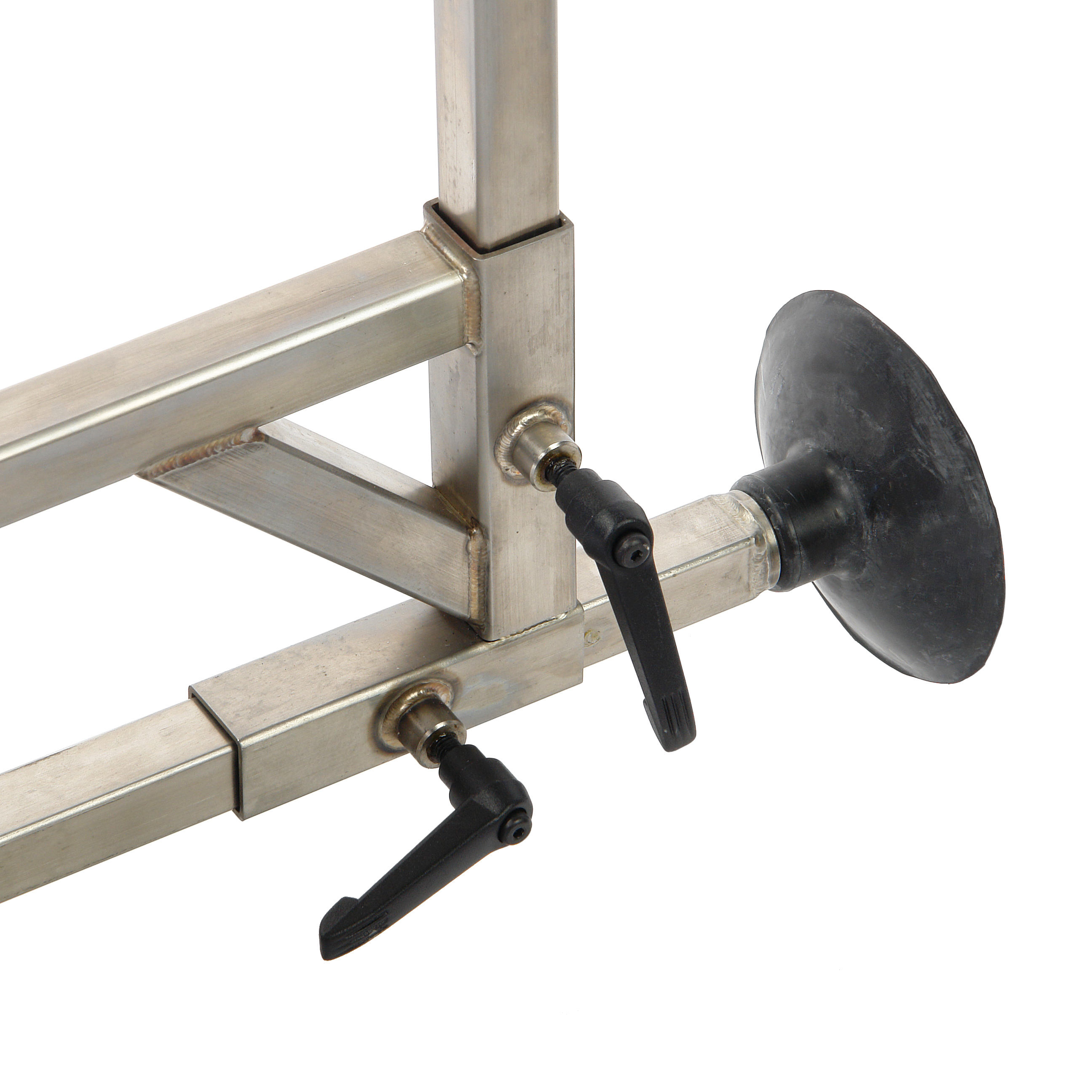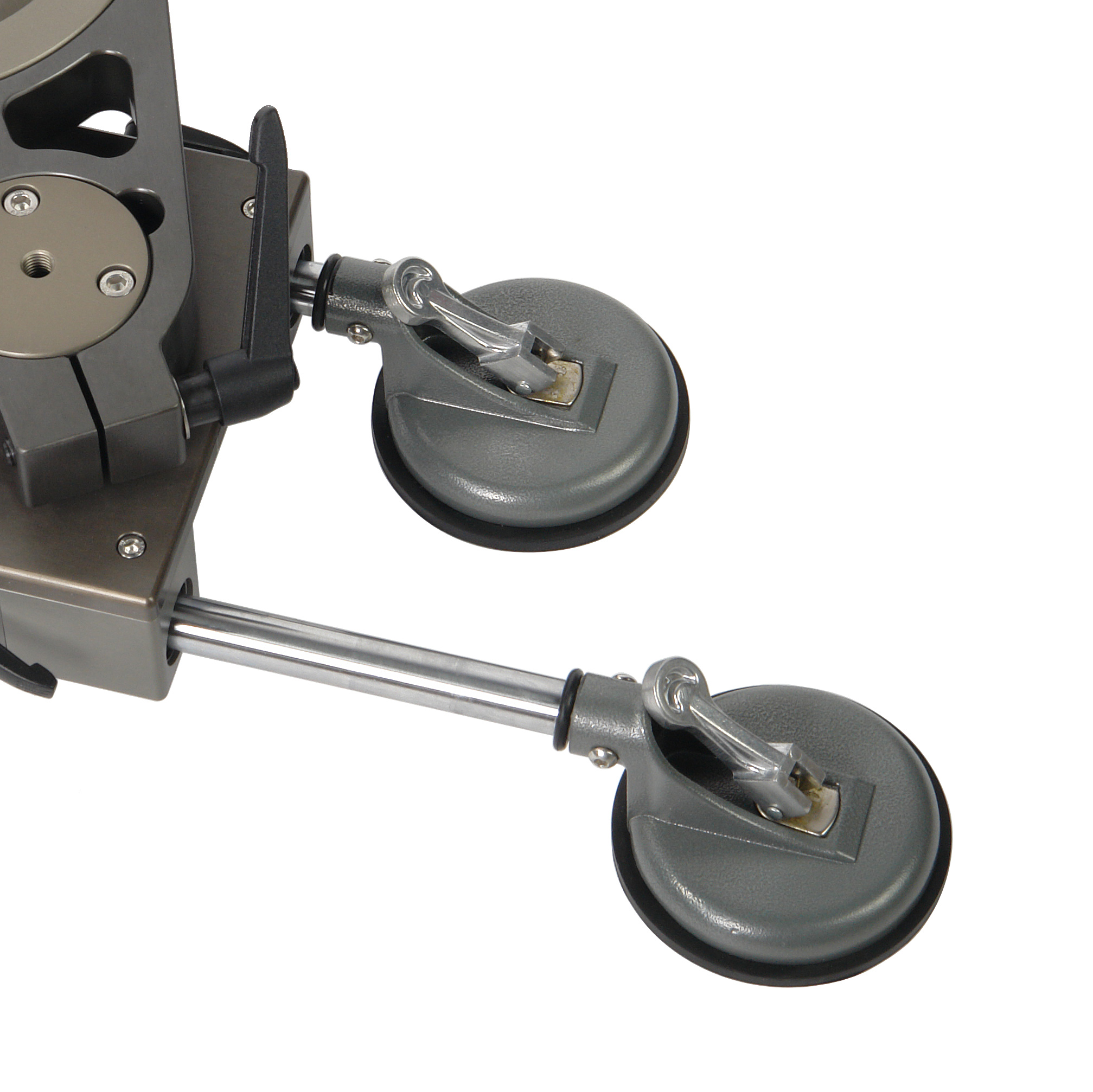 Для балансировки камеры конструкция регулируется - для этого оба держателя присосок независимо друг от друга перемещаются внутри корпуса и каждый надежно фиксируется винтовым зажимом. Для нахождения подходящей точки съемки камера, установленная на штативную головку, может вращаться вместе с шаровой базой, которая также закрепляется винтовым зажимом с крупной переставной регулирующей ручкой.