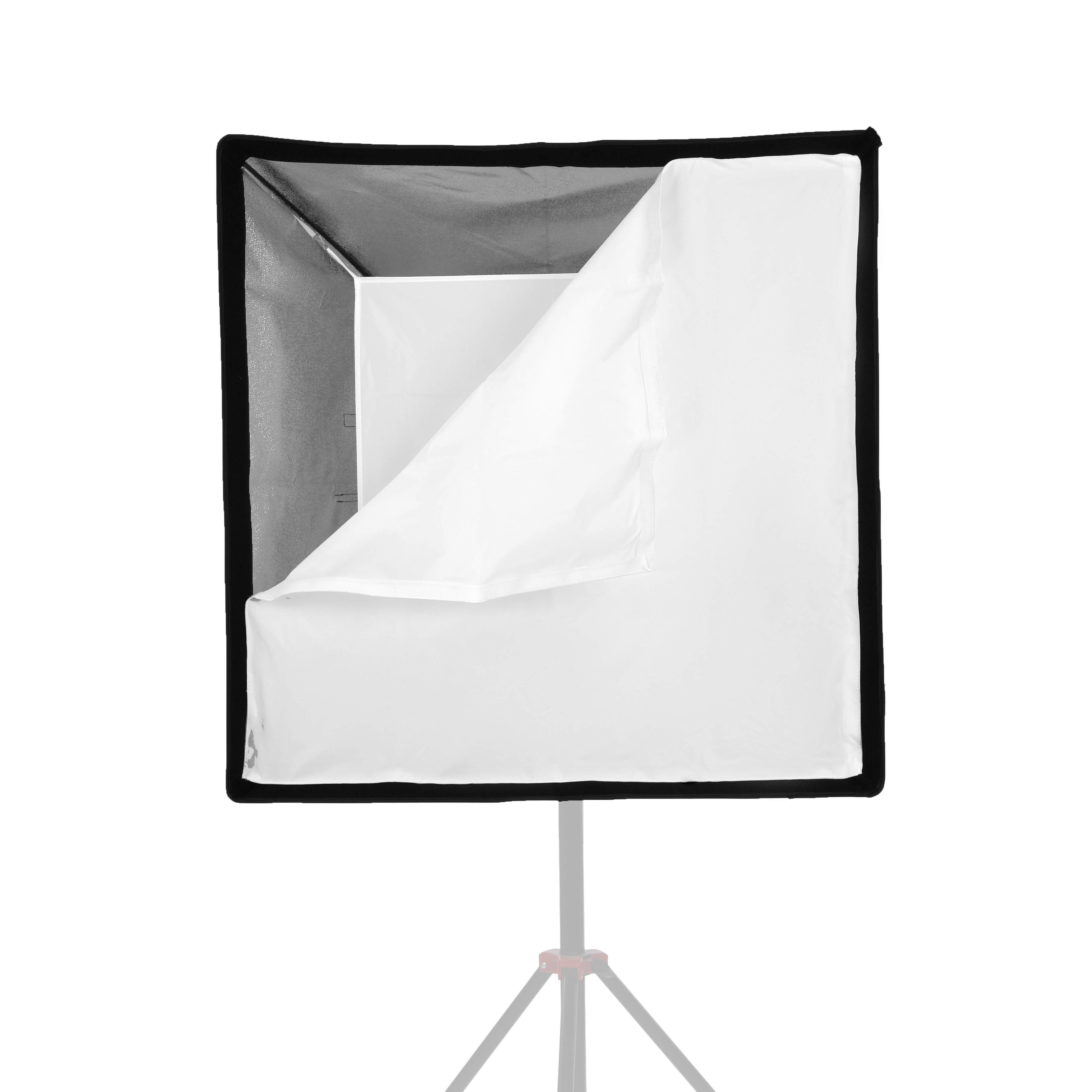 Серебристая поверхность внутренней стороны тканевого каркаса софтбокса обеспечивает равномерную засветку рассеивателя, благодаря чему смягчаются формируемые софтбоксом тени. Дополнительный внутренний диффузор улучшает равномерность светового потока.