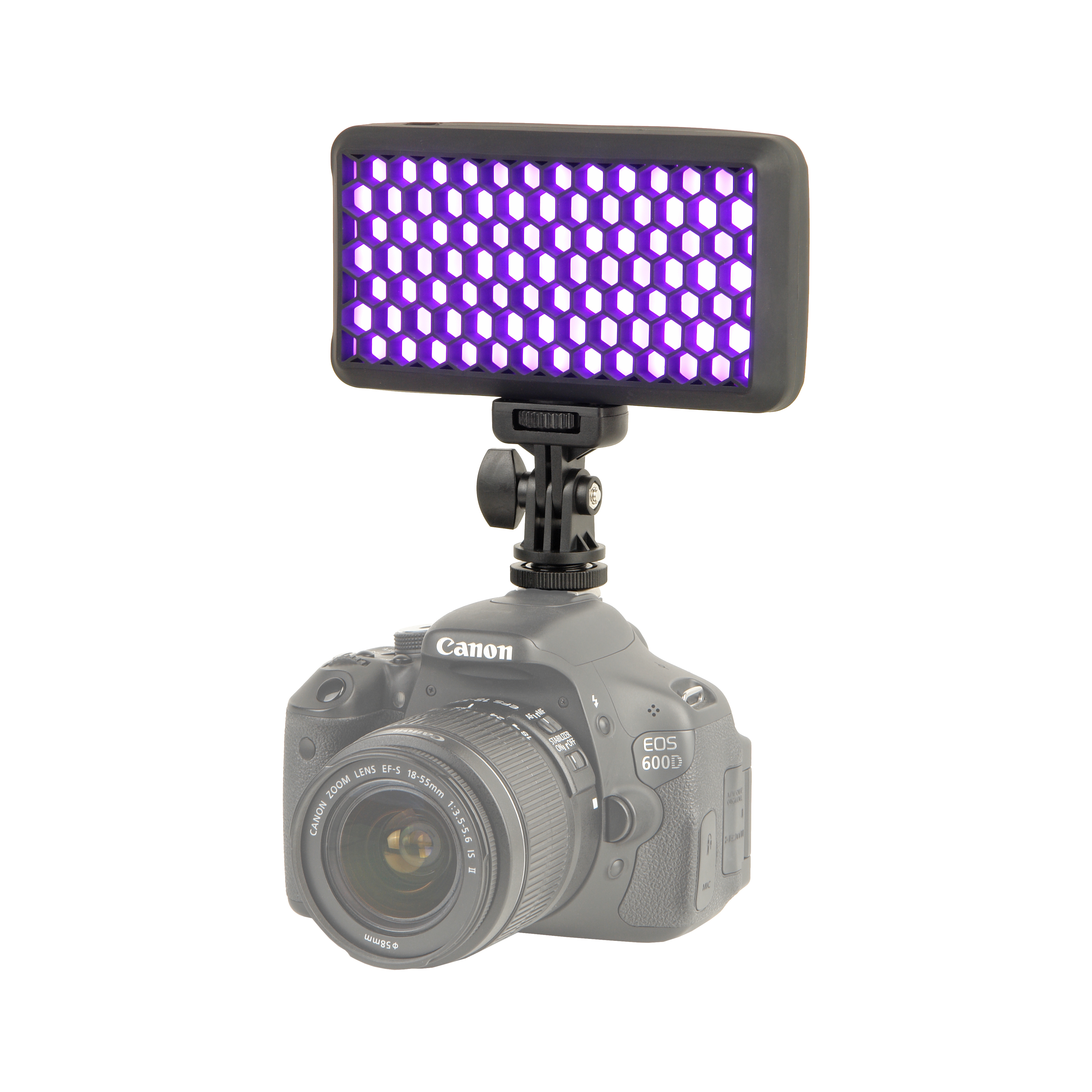 Устройство может устанавливаться на штатив при помощи одного отверстия 1/4", расположенного на торце корпуса осветителя, или в «горячий башмак» фотоаппарата через наклонный кронштейн с адаптером «башмак».
