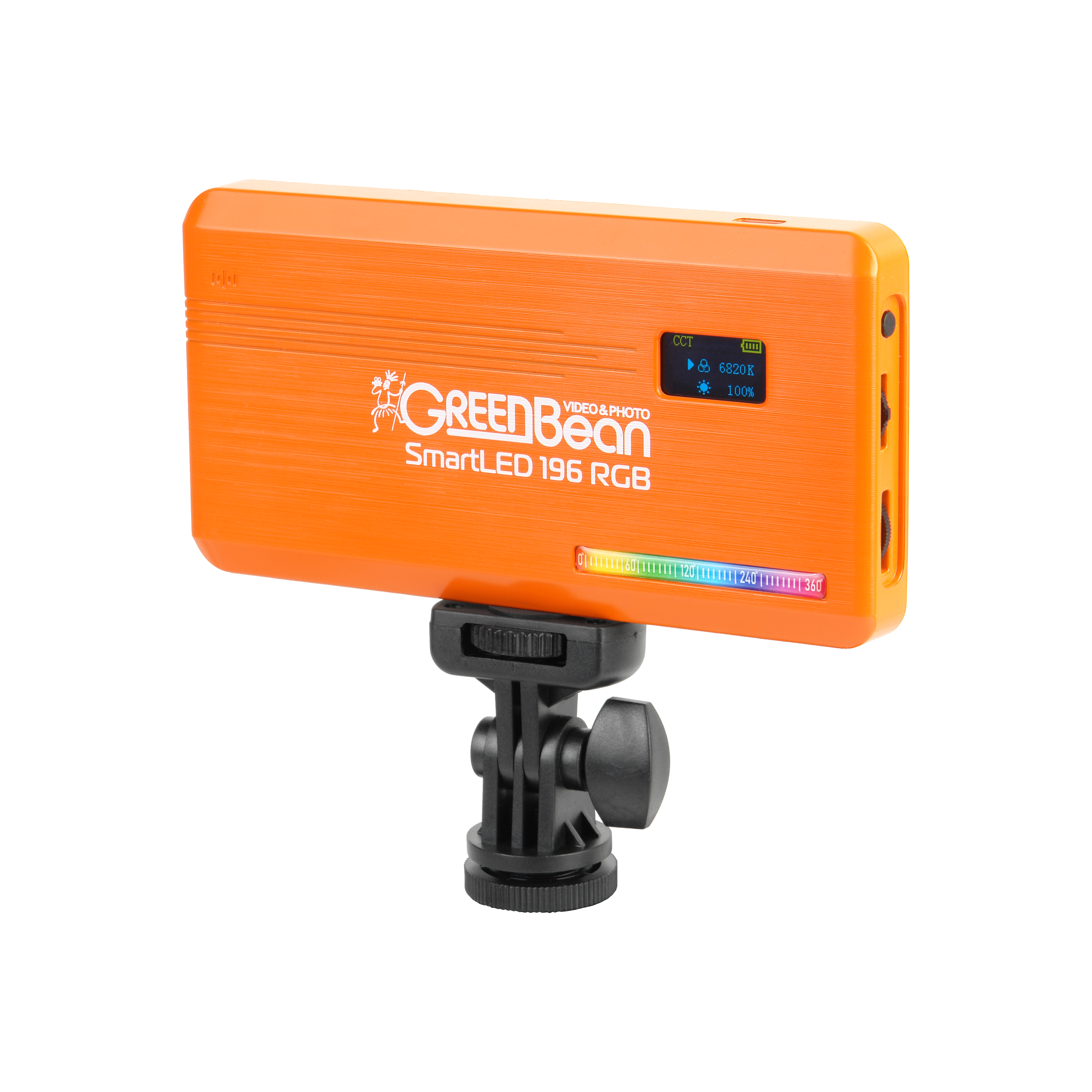 Светодиодный осветитель SmartLED 196 RGB – накамерный источник освещения прямоугольной формы в очень компактном пластиковом корпусе с длительной автономной работой от встроенного аккумулятора. Осветитель с изменяемой цветовой температурой CCT, цветовым тоном RGB и спецэффектами Fx: всё для профессиональной и любительской кино- и видеосъемки. GreenBean SmartLED 196 RGB может использоваться в репортажной и рекламной съемке, для записи видеоблогов, новостных и других видео сюжетов в качестве заполняющего источника света и для создания различных динамических и статических свето-цветовых эффектов.