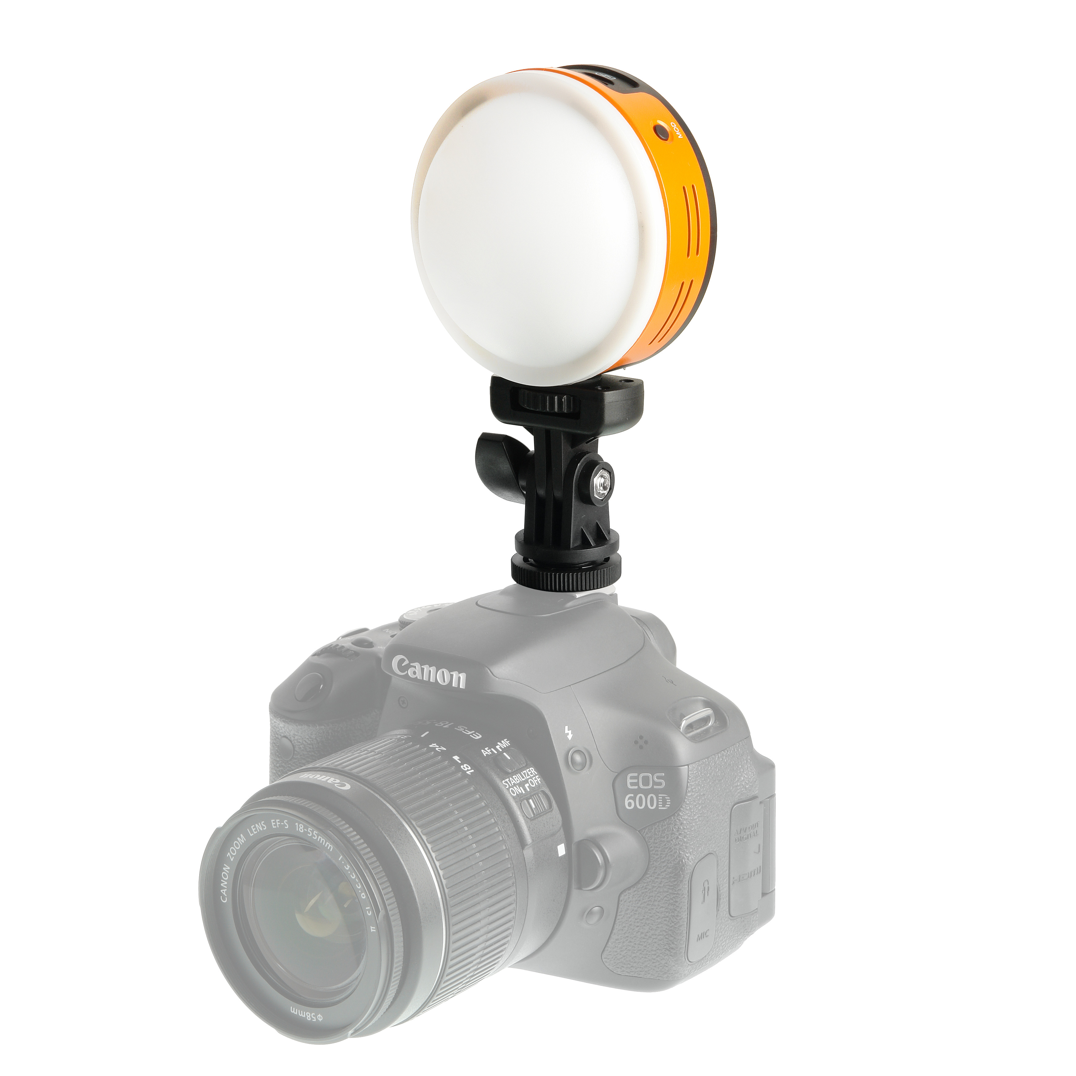 Мягкий свет от осветителя может стать еще более рассеянным благодаря комплектному сферическому диффузору, который крепится к осветителю на магнитах.