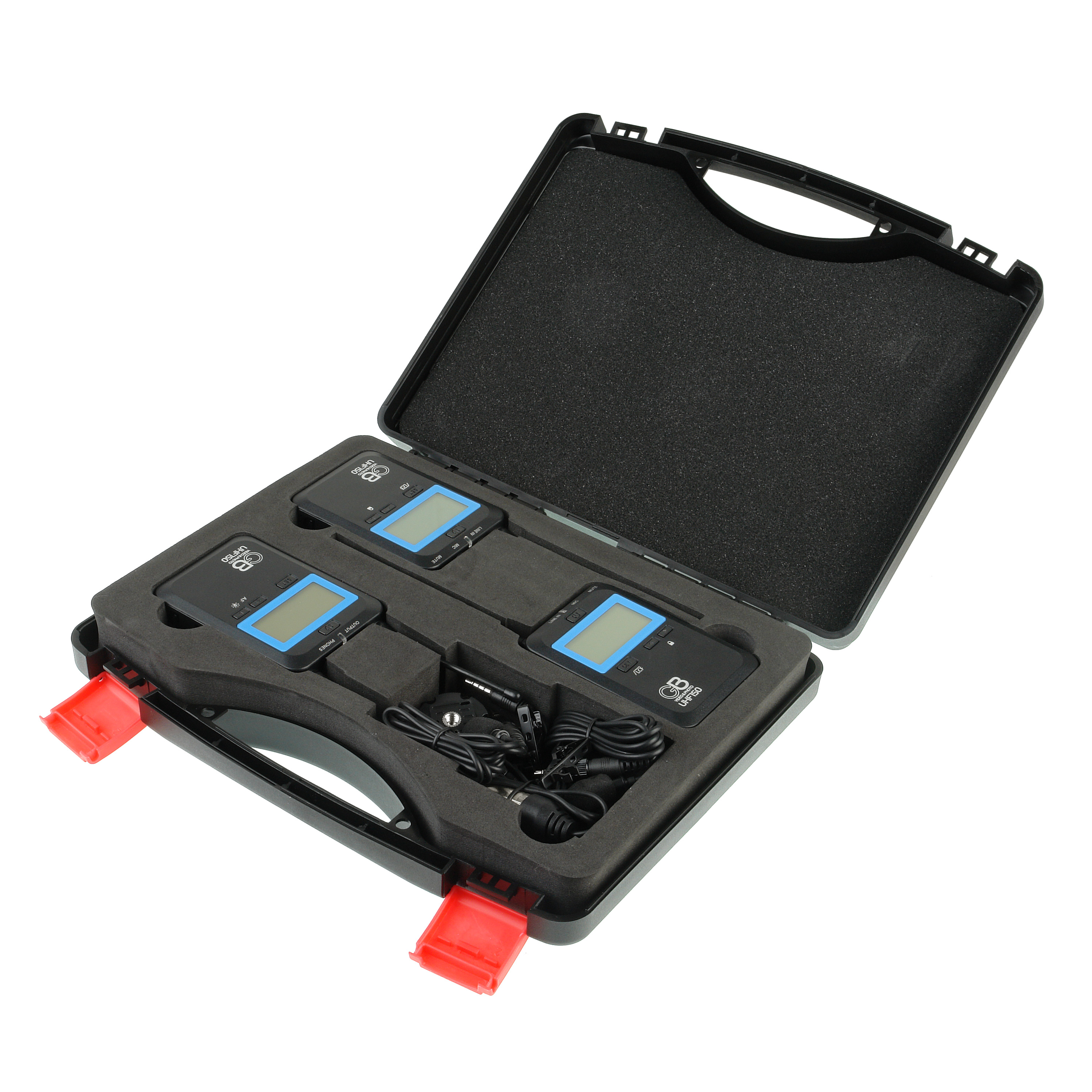 Жесткий пластиковый кейс со вспененными вставками входит в комплект и предохраняет радиосистему во время транспортировки на место съемки. Размер кейса 275х225х50 мм, вес комплекта в кейсе 0.9 кг.
