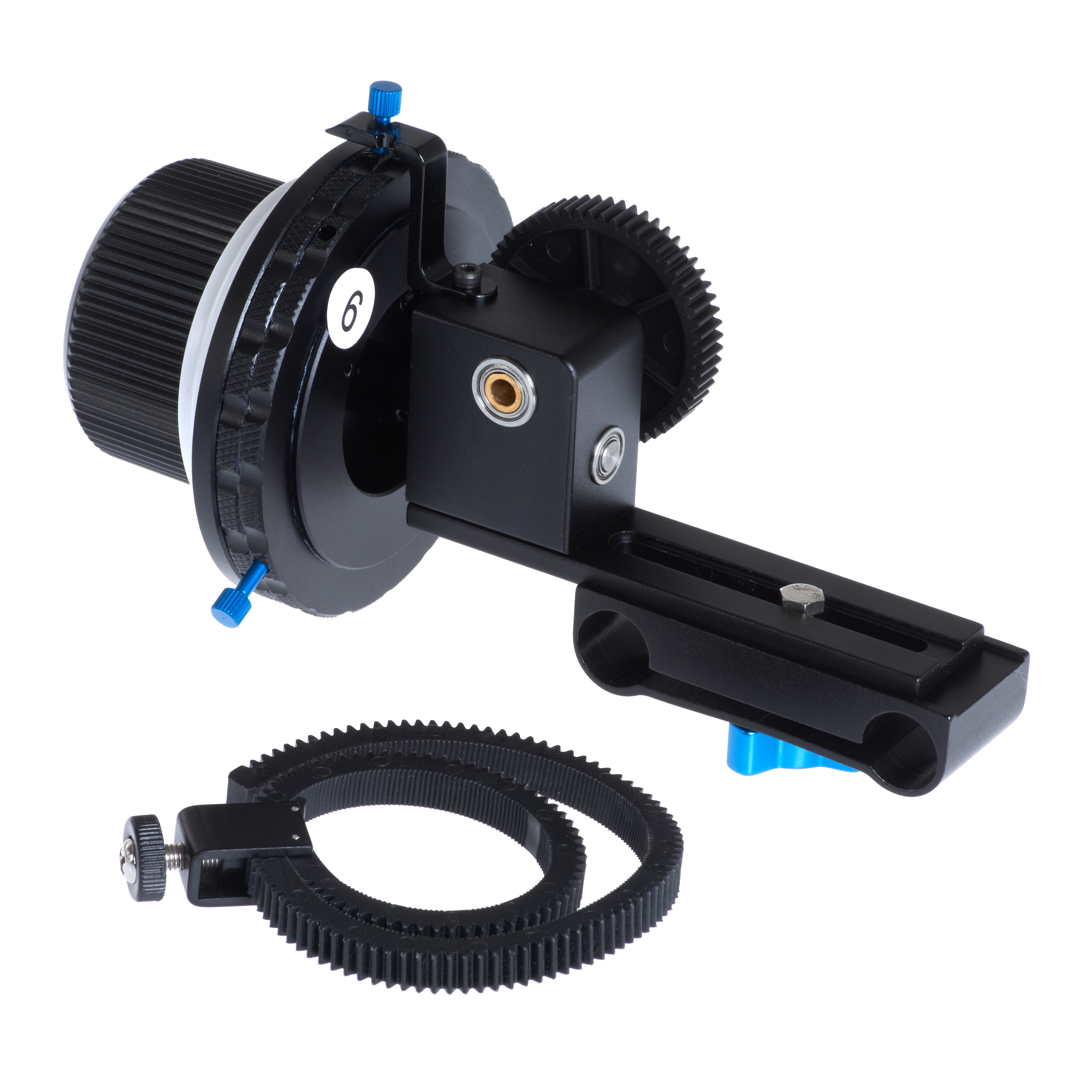 Предназначен для тонкого управления фокусировкой объектива при съемке на DSLR камеру. Позволяет плавно переводить фокус с одного объекта на другой или на задний план, снабжен двумя стопами, которые оператор выставляет перед съемкой для выбора нужного диапазона увеличения. Устанавливается на стандартную рельсовую систему (диаметр 15 мм), возможна регулировка положения Follow Focus в горизонтальном направлении — до 60 мм.