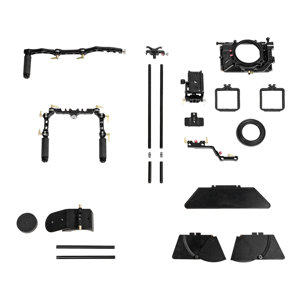 В качестве основы обвеса используются два алюминиевых суппорта (направляющие) диаметром 15 мм и длиной 440 мм, на которые «навешиваются» все остальные компоненты обвеса: ручки, площадка для камеры, компендиум, опора объектива, плечевой упор. Для удлинения суппортов, в комплекте с ригом идут два дополнительных суппорта длиной 100 мм с двухсторонними винтами. Все элементы обвеса (кроме резиновых накладок на рукоятки и плечевой накладки) изготовлены из алюминиевого сплава на высокоточном CNC оборудовании. Бесчисленное количество положений, в которые можно установить и зафиксировать все элементы обвеса, позволят подобрать оптимальную конфигурацию рига. Все затяжные барашки изготовлены из алюминиевого сплава и имеют храповой механизм.