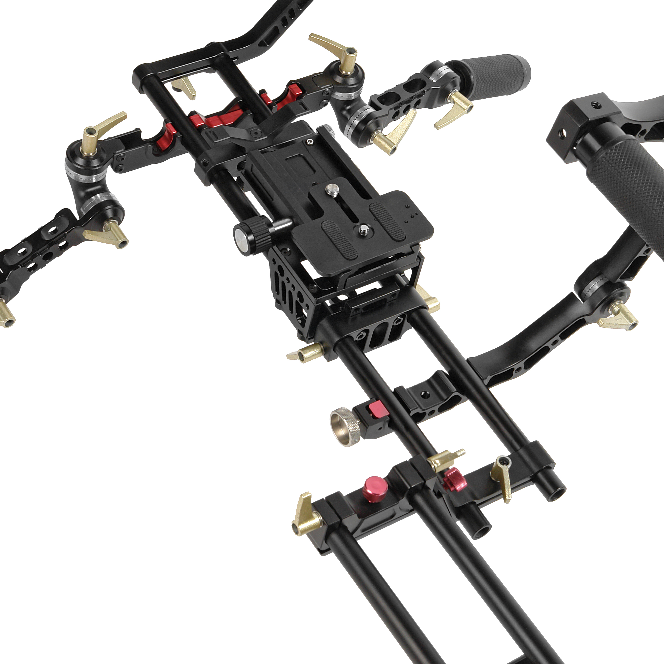 В качестве основы обвеса используются два алюминиевых суппорта (направляющие) диаметром 15 мм и длиной 440 мм, на которые «навешиваются» все остальные компоненты обвеса: ручки, площадка для камеры, компендиум, опора объектива, плечевой упор. Для удлинения суппортов, в комплекте с ригом идут два дополнительных суппорта длиной 100 мм с двухсторонними винтами. Все элементы обвеса (кроме резиновых накладок на рукоятки и плечевой накладки) изготовлены из алюминиевого сплава на высокоточном CNC оборудовании. Бесчисленное количество положений, в которые можно установить и зафиксировать все элементы обвеса, позволят подобрать оптимальную конфигурацию рига. Все затяжные барашки изготовлены из алюминиевого сплава и имеют храповой механизм.