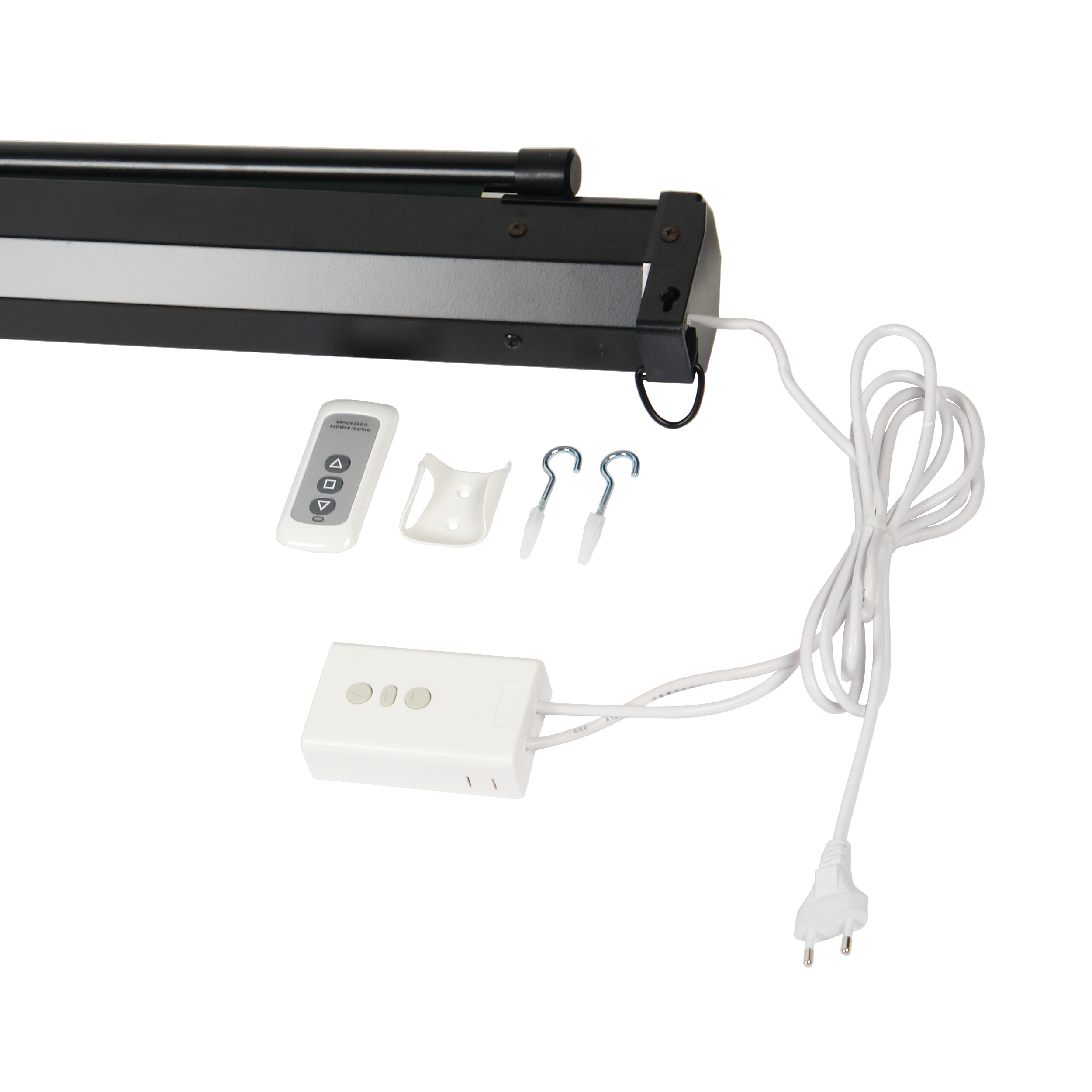 Пульт управления имеет интуитивно понятный интерфейс управления при помощи всего 3 кнопок. Нажатие средней кнопки заставит фон фиксироваться в любом положении по длине.