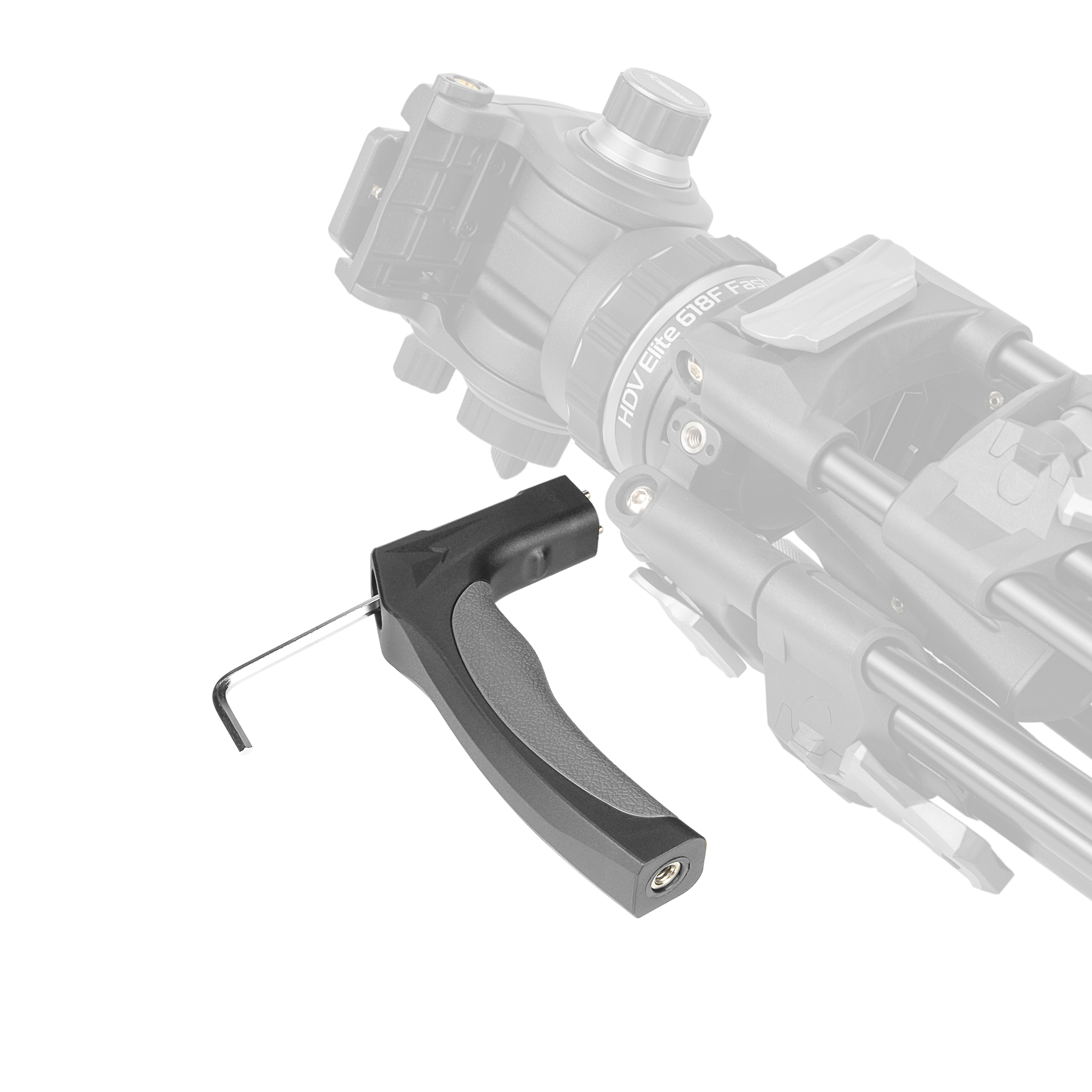 Конструкция ручки ориентирована на надежное крепление к крестовине штатива, где предусмотрено соответствующее отверстие, позволяя быстро устанавливать и снимать аксессуар без дополнительных инструментов.