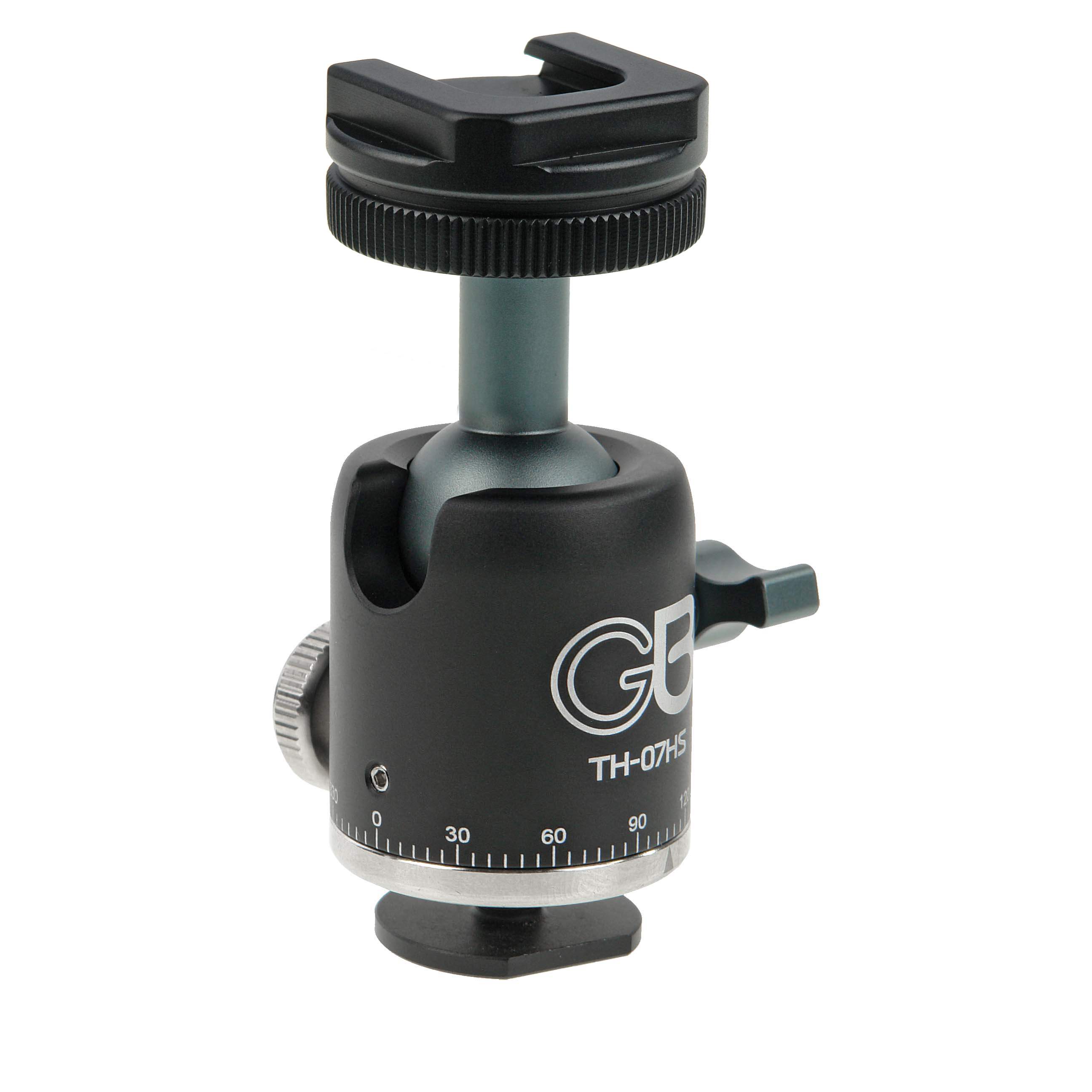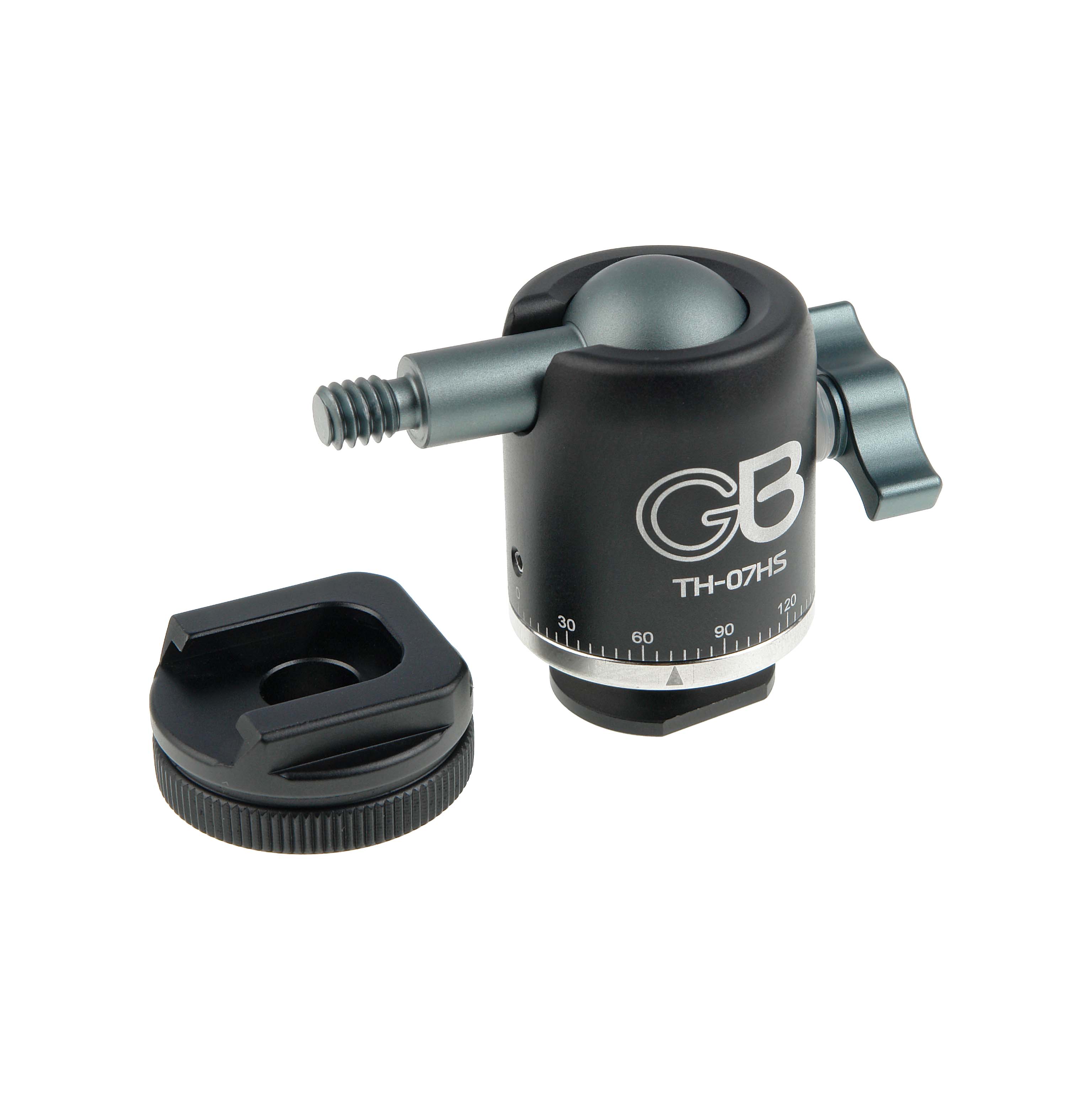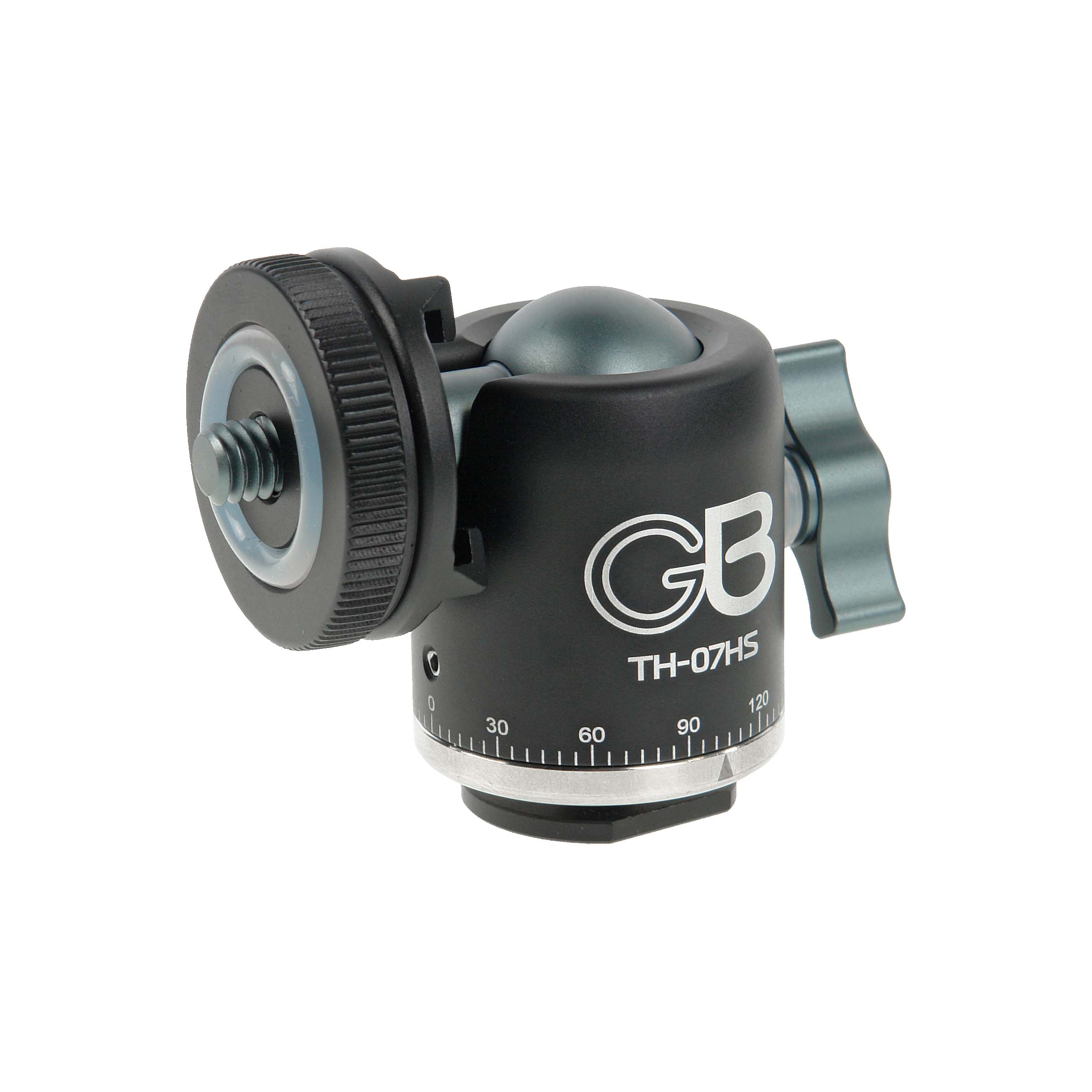 Штативная головка GreenBean TH-07HS – универсальная усиленная шаровая головка, предназначена для установки компактных осветителей, микрофонов, видеомониторов и другого дополнительного оборудования и аксессуаров, имеющих установочное отверстие с резьбой 1/4" или крепление «башмак».
