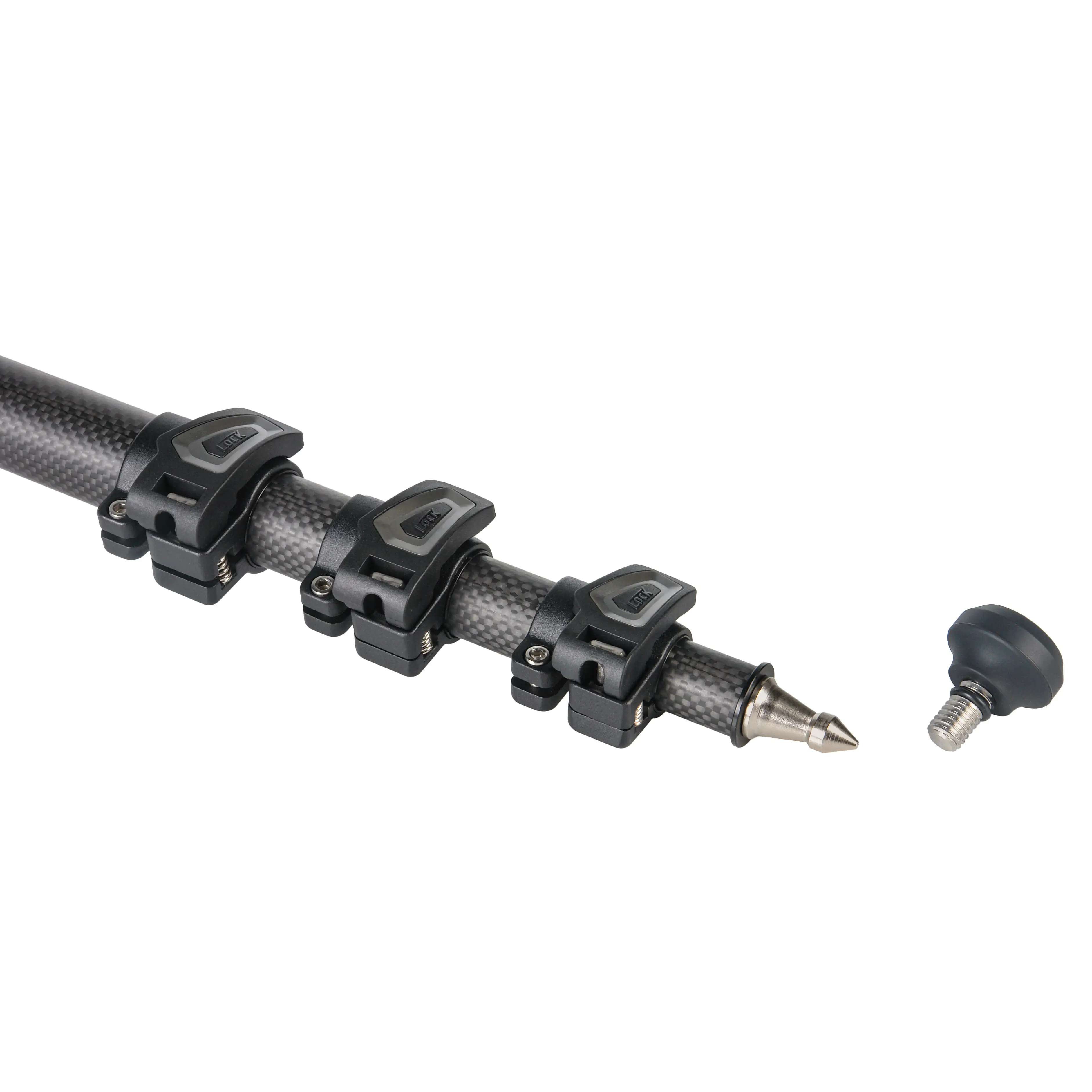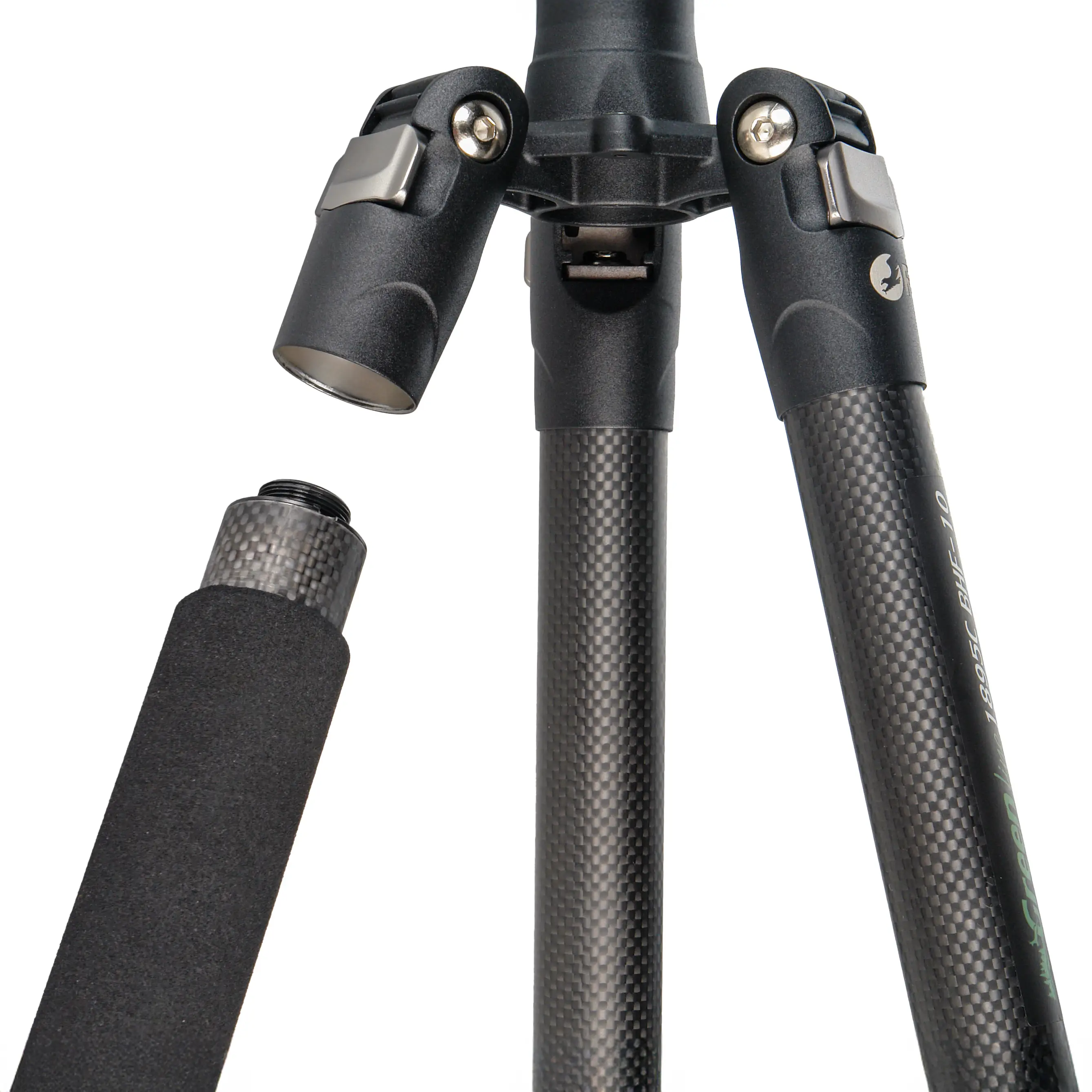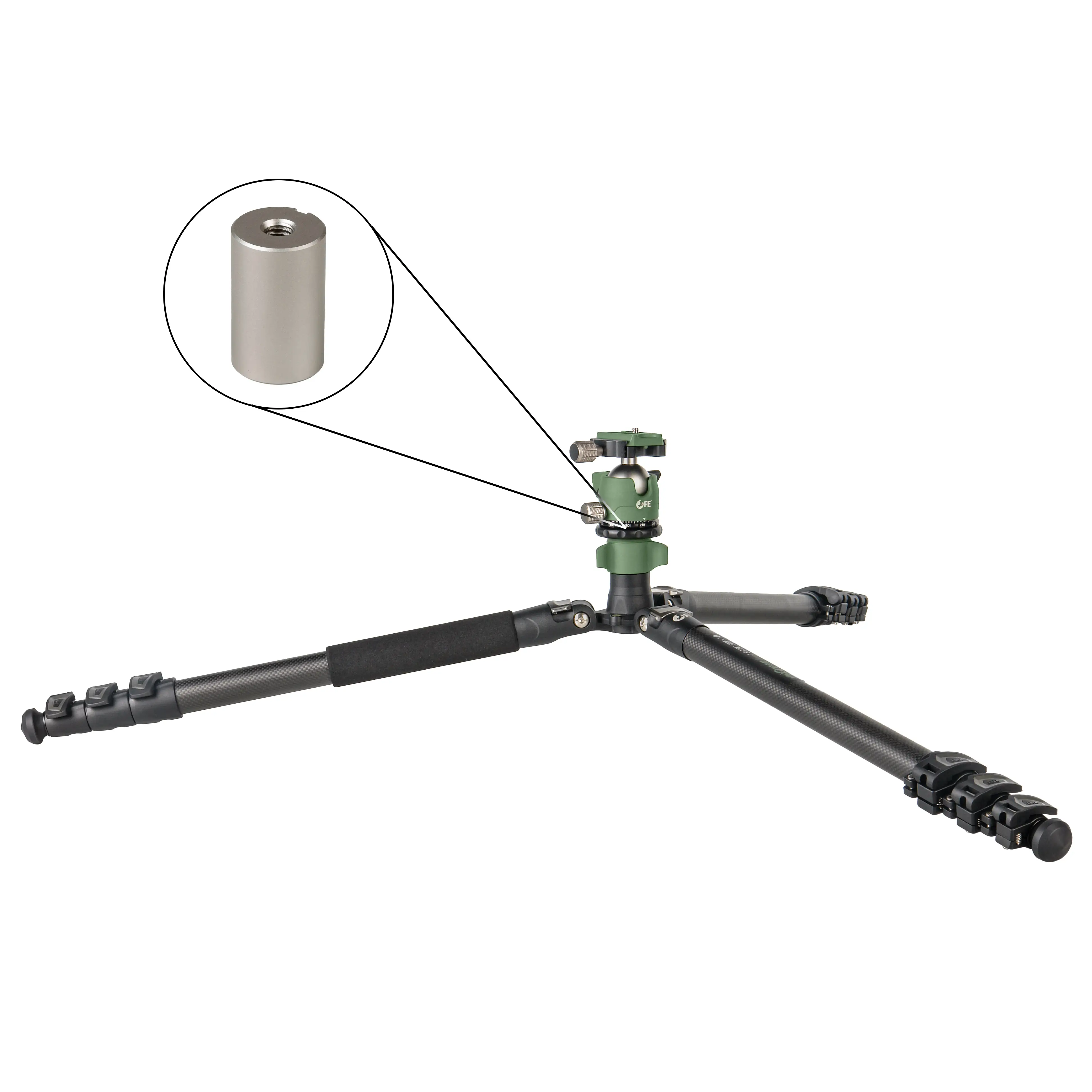 Для получения максимальной высоты монопода на съёмную ногу можно установить центральную колонну с шаровой головкой. Также возможен вариант с использованием входящей в комплект металлической вставки для монтажа головки с винтом непосредственно на ногу.