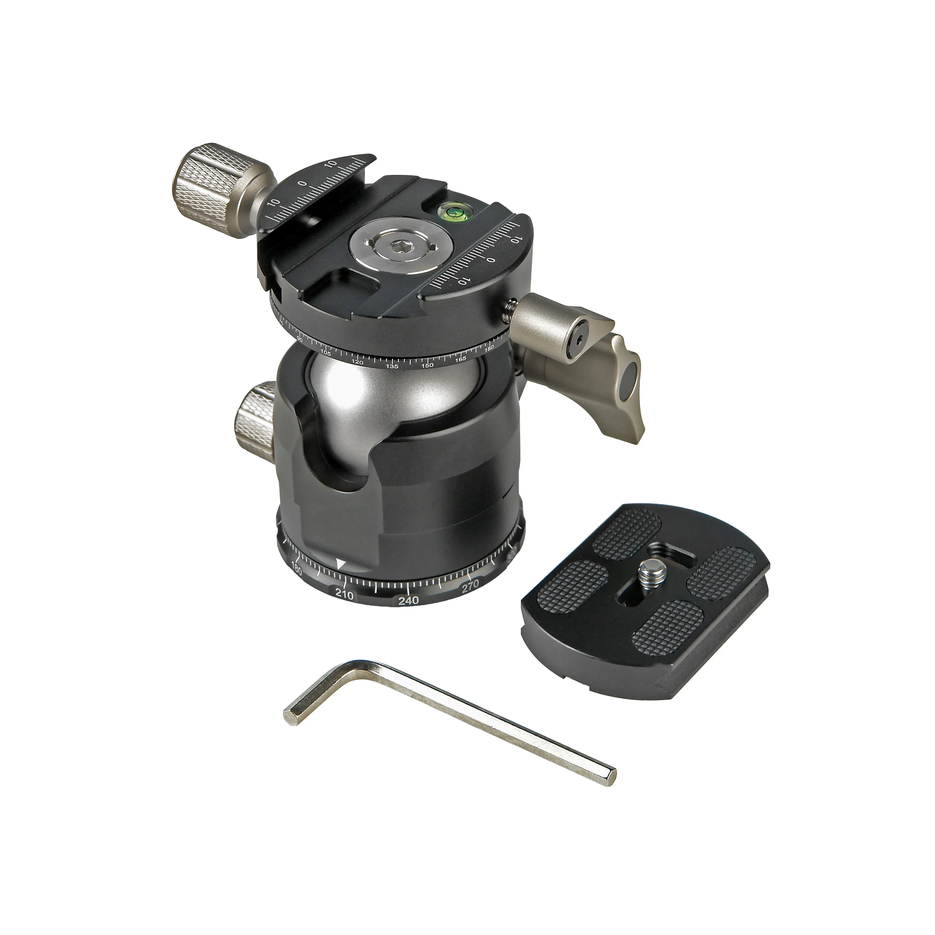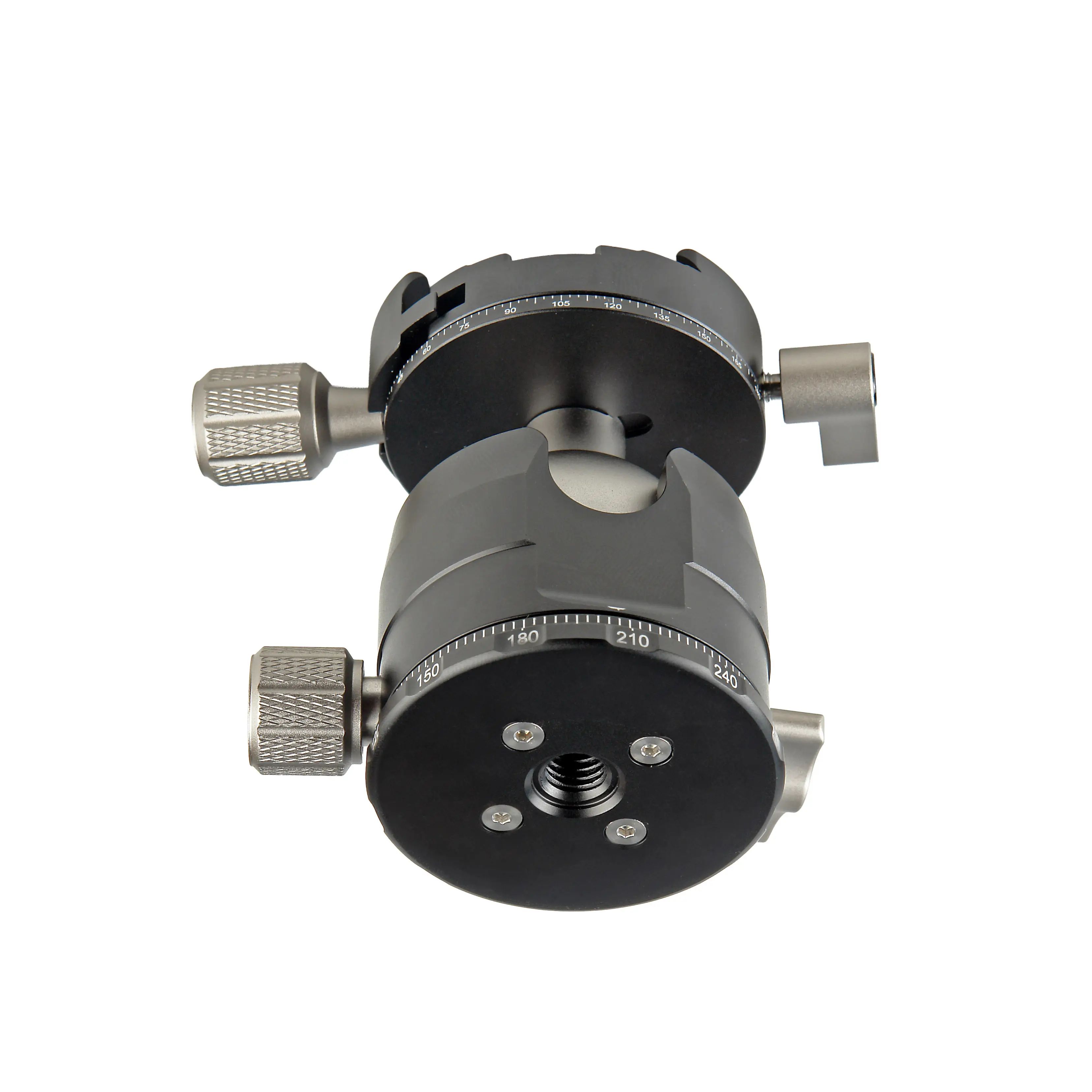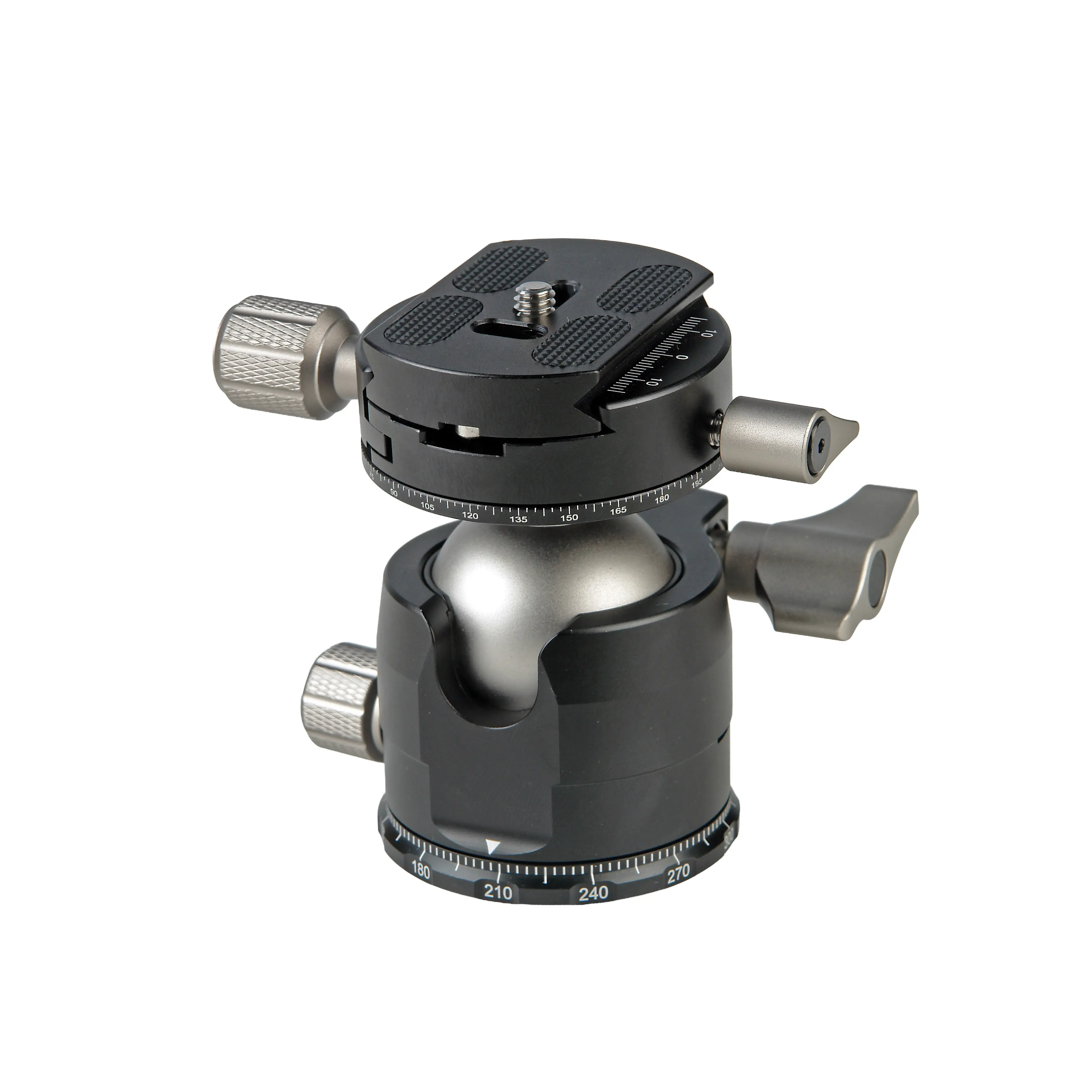 На головке предусмотрены четыре регулирующих винта: фиксатор быстросъемной площадки, фиксатор панорамирования площадки, основной фиксатор шара и фиксатор панорамирования базы. Эти элементы обладают высоким блокирующим крутящим моментом для надежного удерживания оборудование весом до 20 кг.