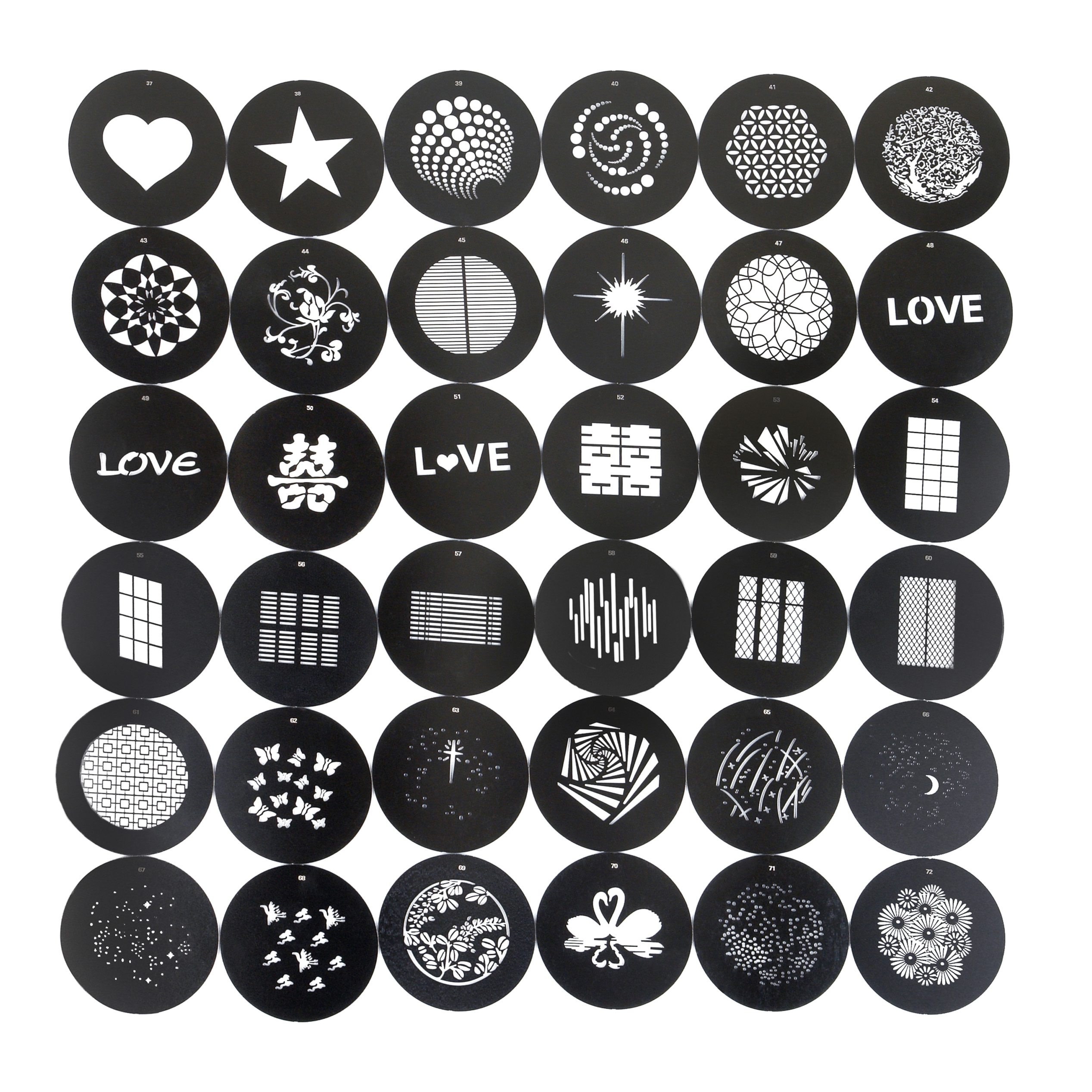 Набор предназначается для расширения комплекта масок ГОБО, поставляющихся с оптическими насадками , и . Маски также подходят для работы с другими оптическими насадками, имеющими держатель масок с подходящим посадочным диаметром.