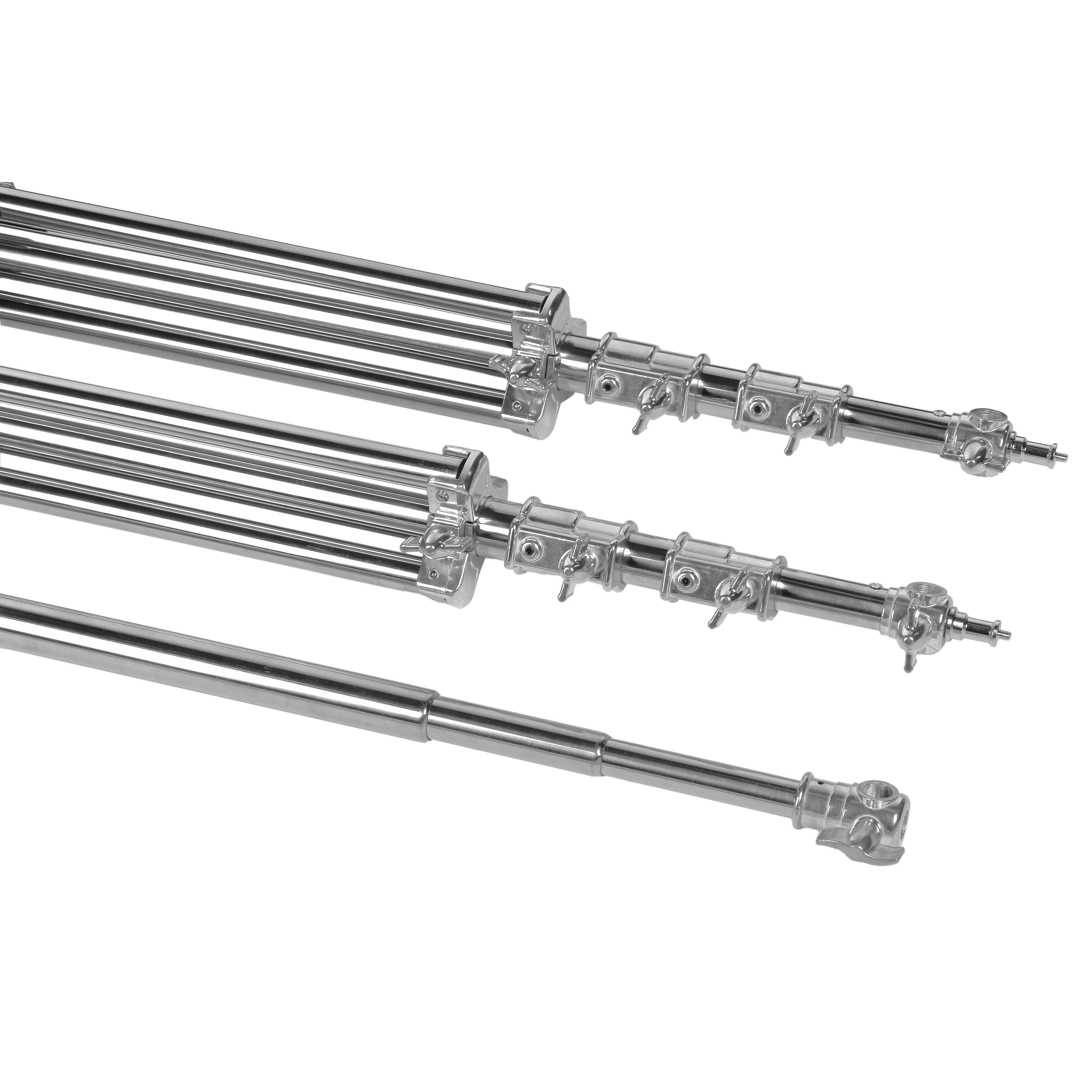 Три секции стойки надежно соединены между собой стальными винтовыми зажимами, три секции телескопической перекладины - цанговым механизмом.
