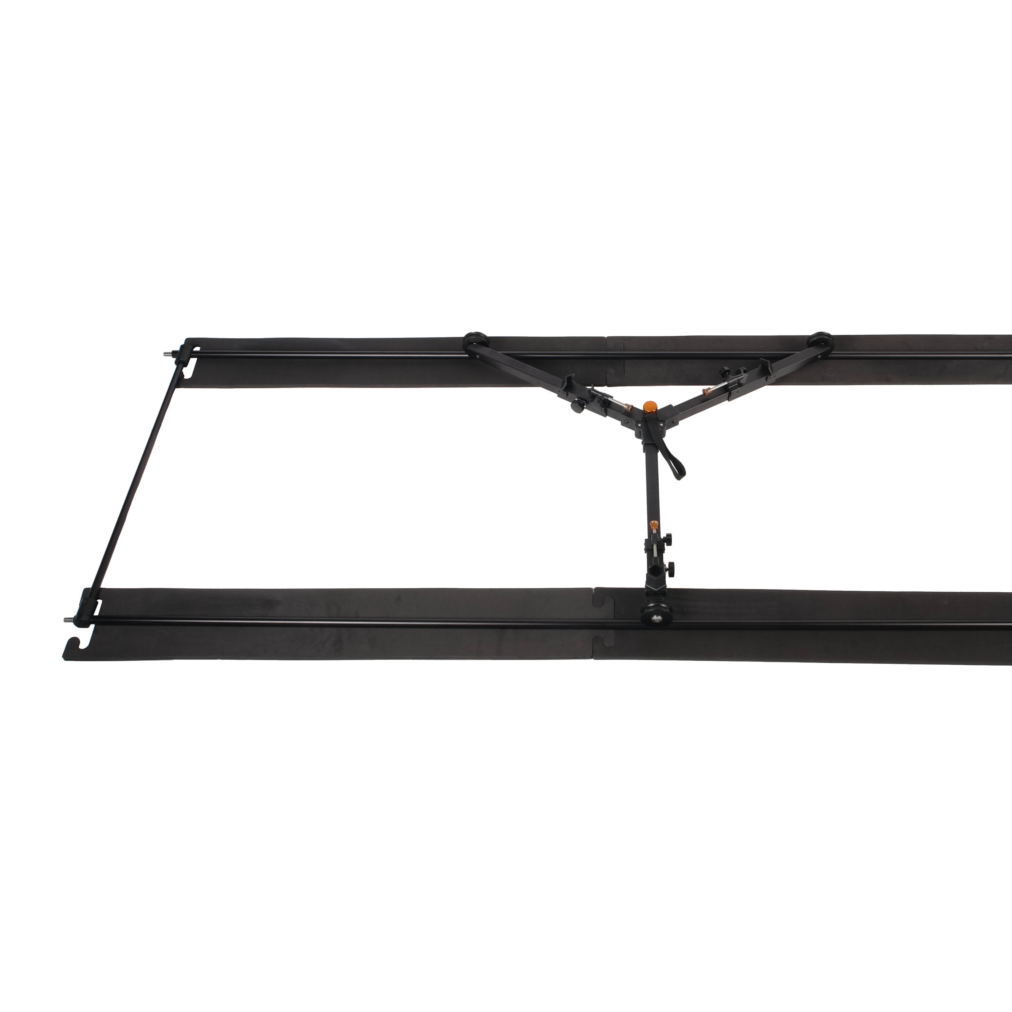 Секции рельсов изготовлены из легкого и прочного авиационного алюминия на прецизионном металлорежущем оборудовании. Быстросборная конструкция не требует использования инструментов и дает возможность смонтировать секции в единый рельс длиной от 1 до 5 метров за считанные минуты.