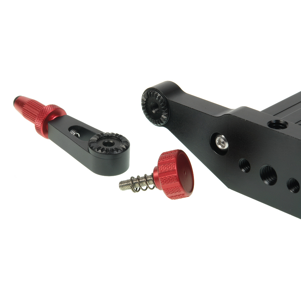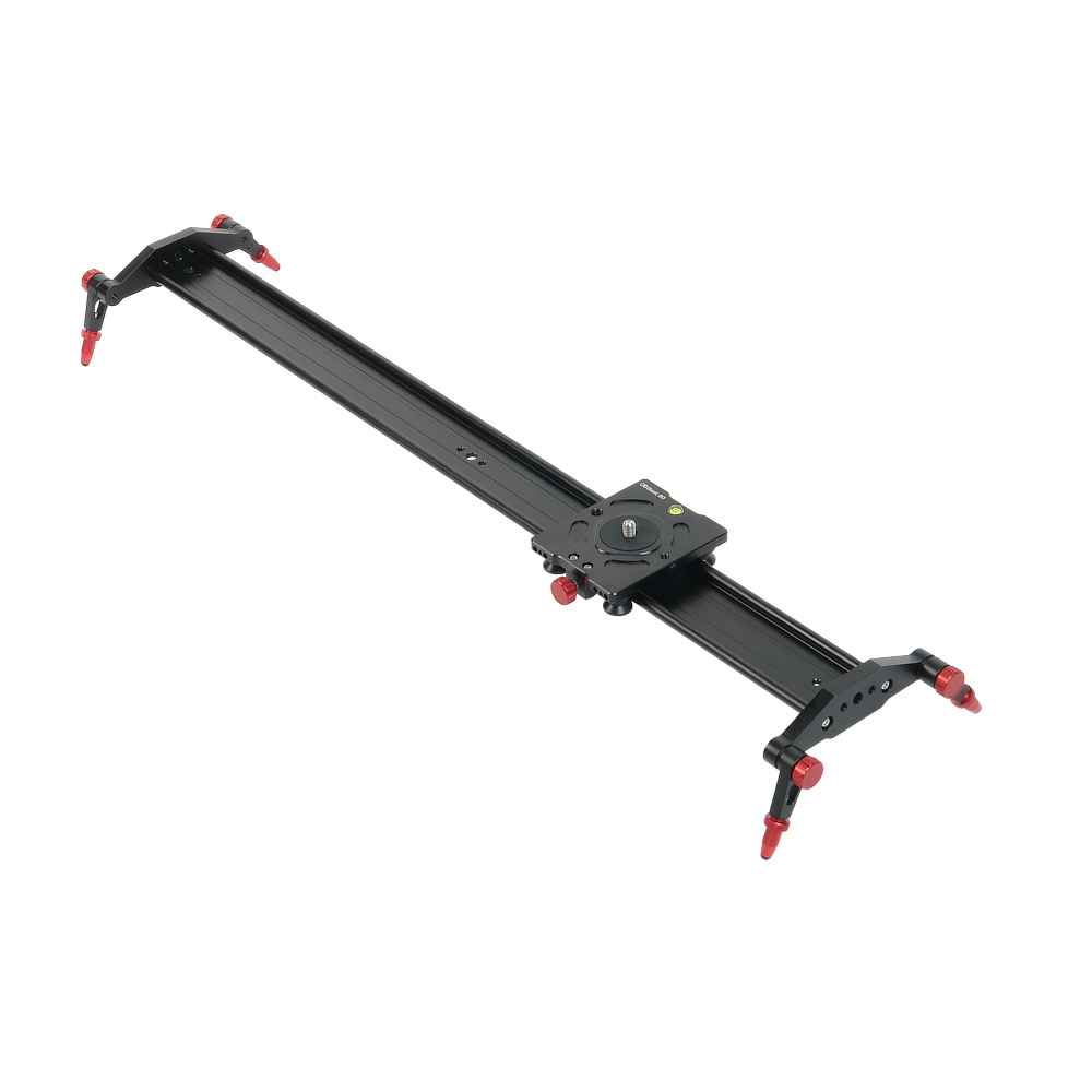 Поворотные ножки оборудованы подпружиненными зажимами с зубчатым соединением, благодаря этому слайдер выдерживает большие нагрузки с гарантированной устойчивостью. Ножки раскладываются в пределах 360 градусов, позволяя хранить слайдер в футляре без снятия ножек. На концах ножек находятся выкручивающиеся нескользящие резиновые наконечники, которые обеспечивают точное выравнивание слайдера по уровню горизонта, а пузырьковый уровень на площадке поможет проверить настройку.