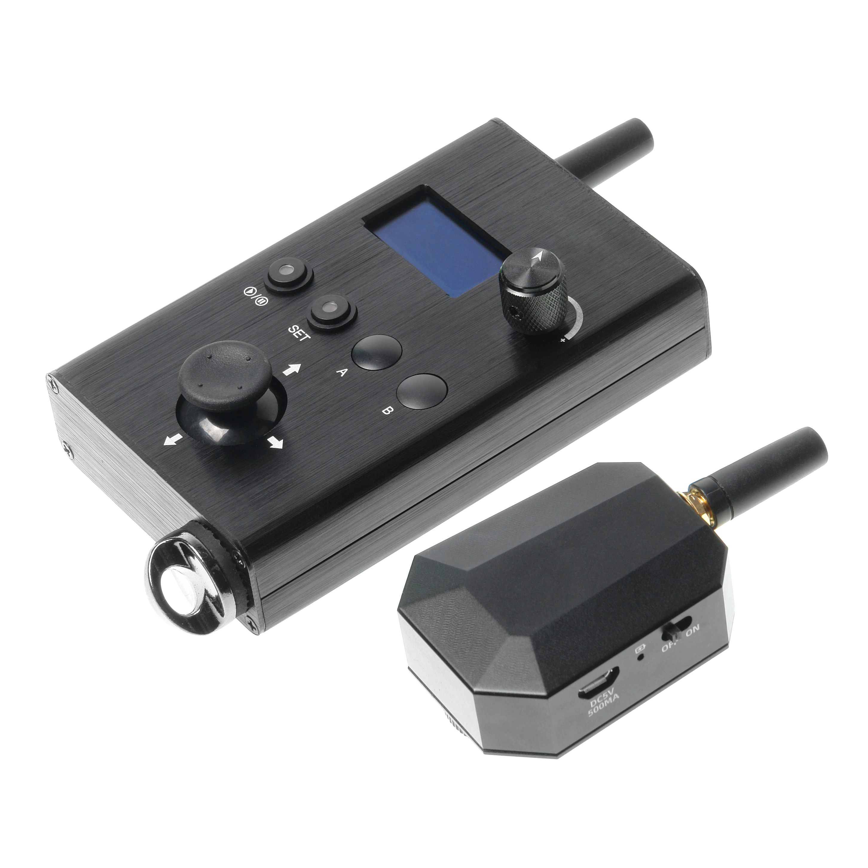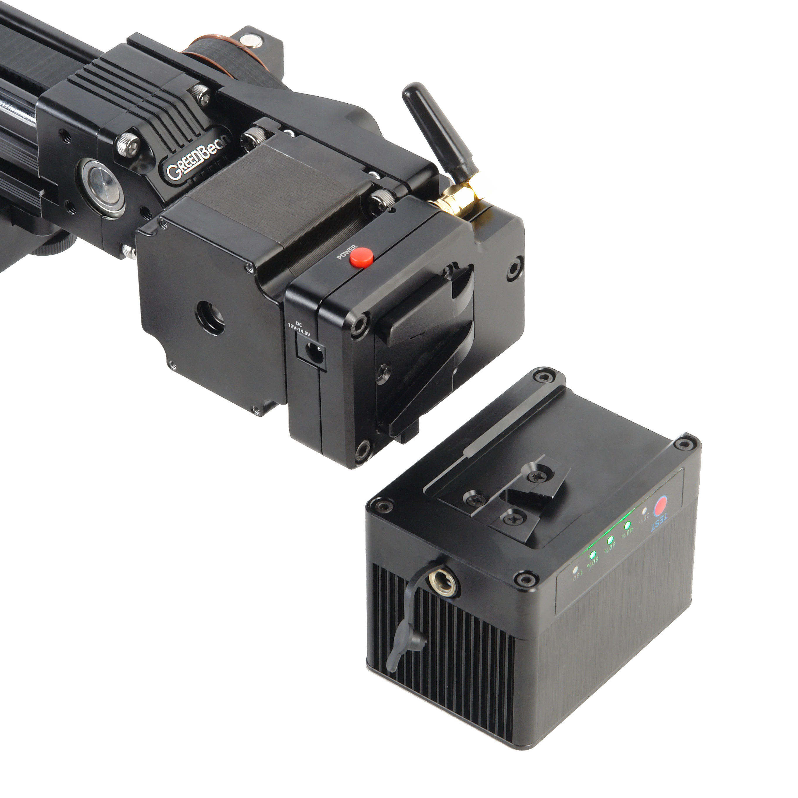 Пульт питается от встроенного Li-Ion аккумулятора. Для улучшения стабильности радиосвязи с приемником слайдера и камеры при работе в условиях радиопомех или сильного поглощения радиосигнала, штатная антенна пульта может быть заменена на удлиненную поворотную антенну входящую в комплект. Зарядное устройство для пульта и кабель идут в комплекте. При необходимости пульт может быть размещен на любом фото, видео штативе или струбцине имеющих установочную наружную резьбу 1/4".