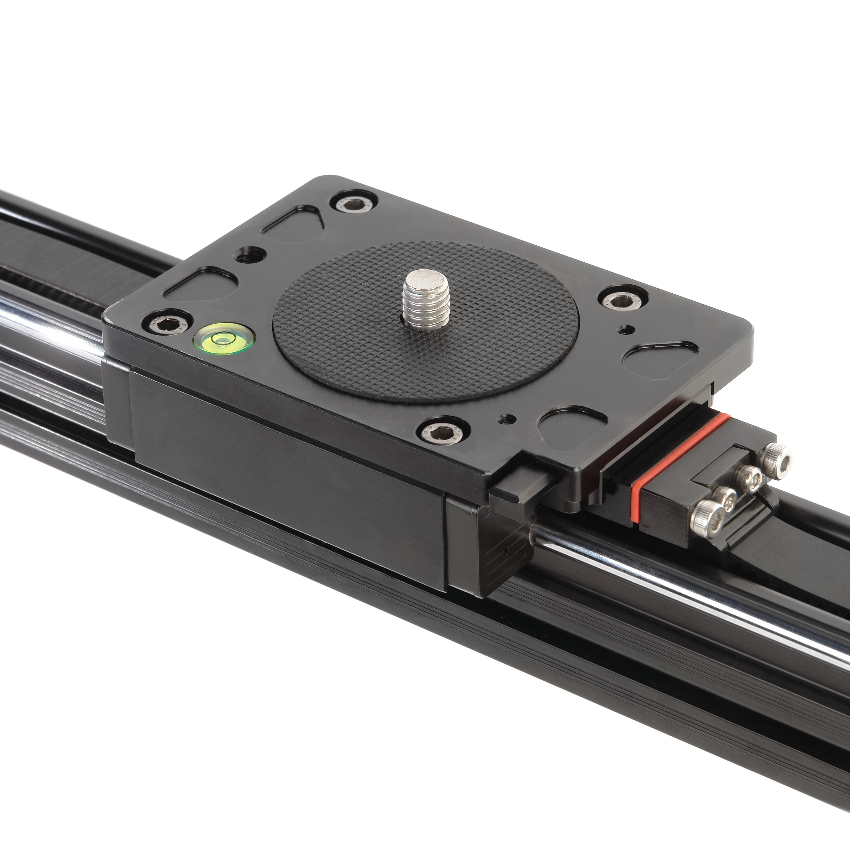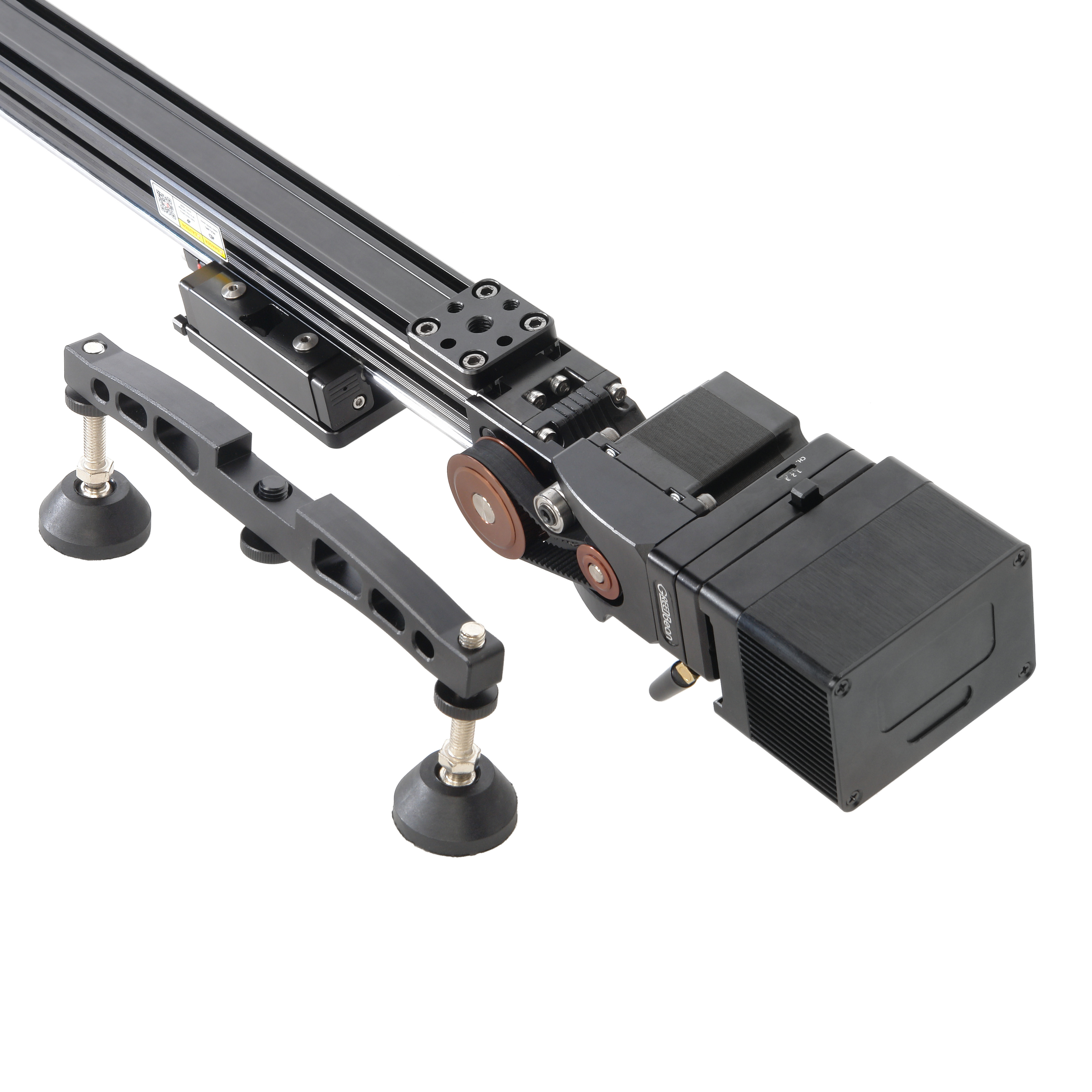 Для установки на любых, в том числе неплоских поверхностях, слайдер MotorTrack 100RС комплектуется регулируемыми опорами с шаровой регулировкой плоскости, что в совокупности с вибропоглощающими резиновыми чашками обеспечивает высокую стабильность конструкции и эффективное поглощение паразитных вибраций. Для настройки горизонта камеры площадка имеет пузырьковый уровень. Также слайдер при необходимости может быть установлен на любые видео или фото - штативы и подобные им устойчивые суппорты, для чего на нижней поверхности направляющей предусмотрены установочные отверстия 3/8".