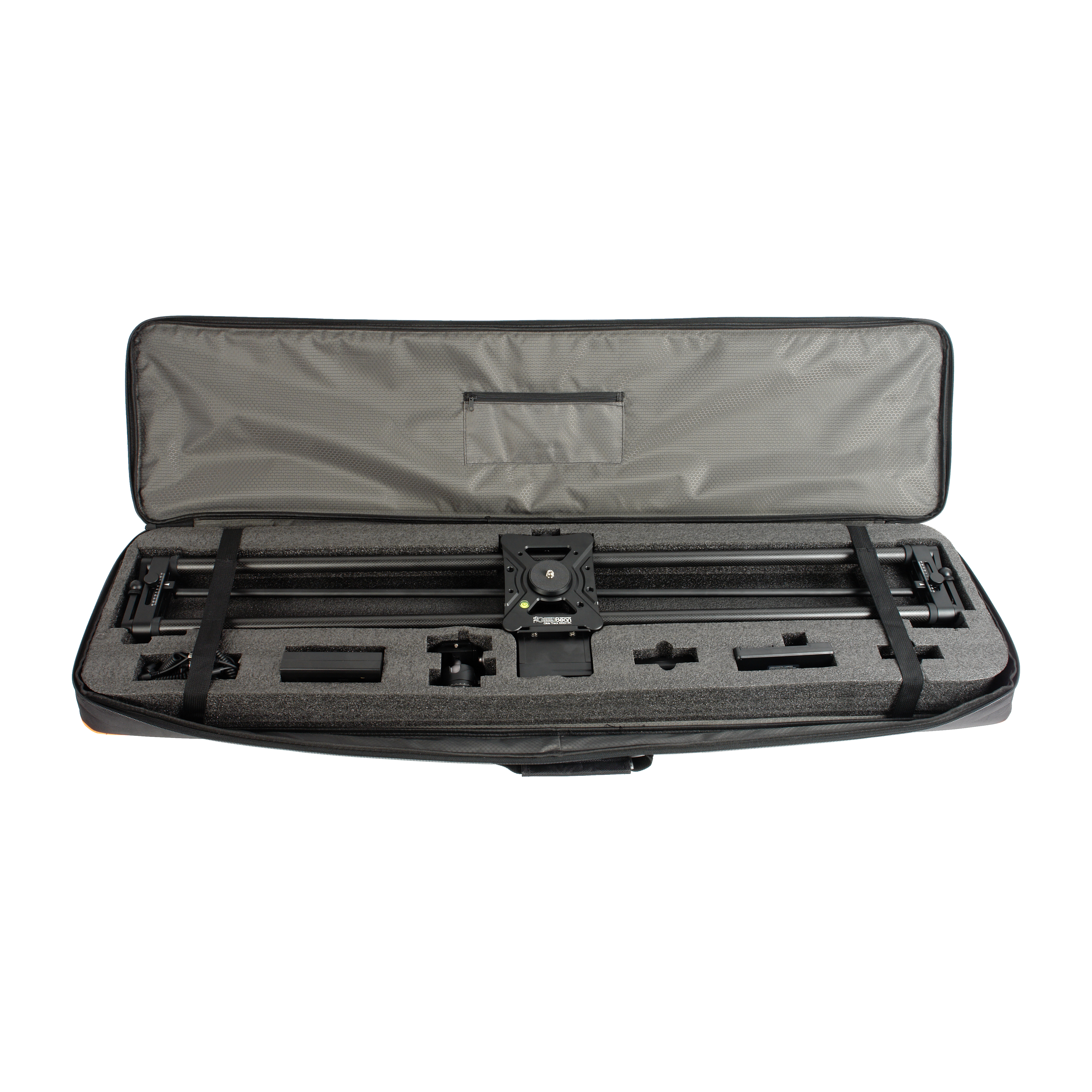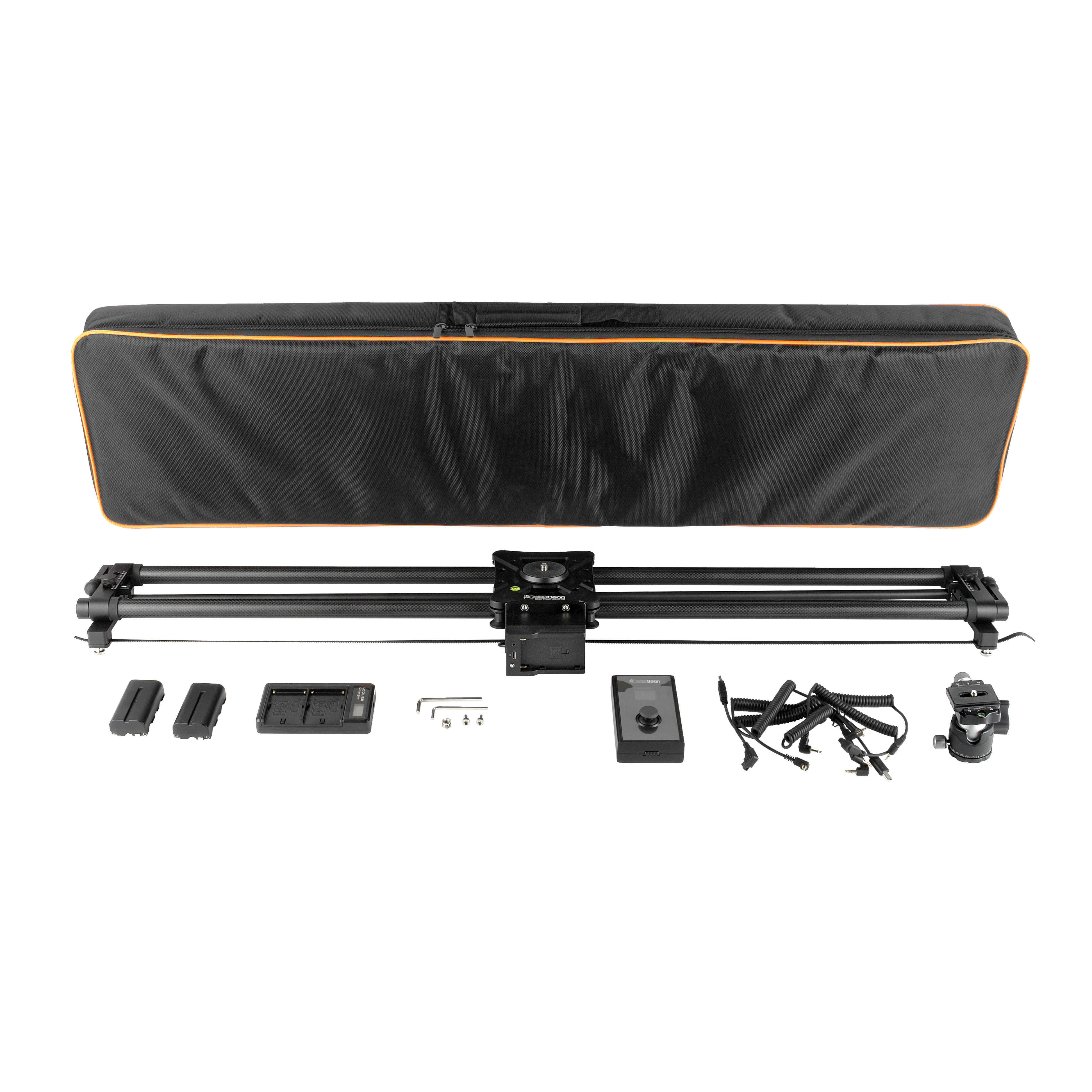 Прочная, но легкая конструкция из алюминиевого сплава и карбоновые направляющие обеспечивают стабильное движение на протяжении всей съемки от первого до последнего кадра. Включение и выключения режима плавного старта и остановки привода сделают картинку более «киношной» или «реалистичной».