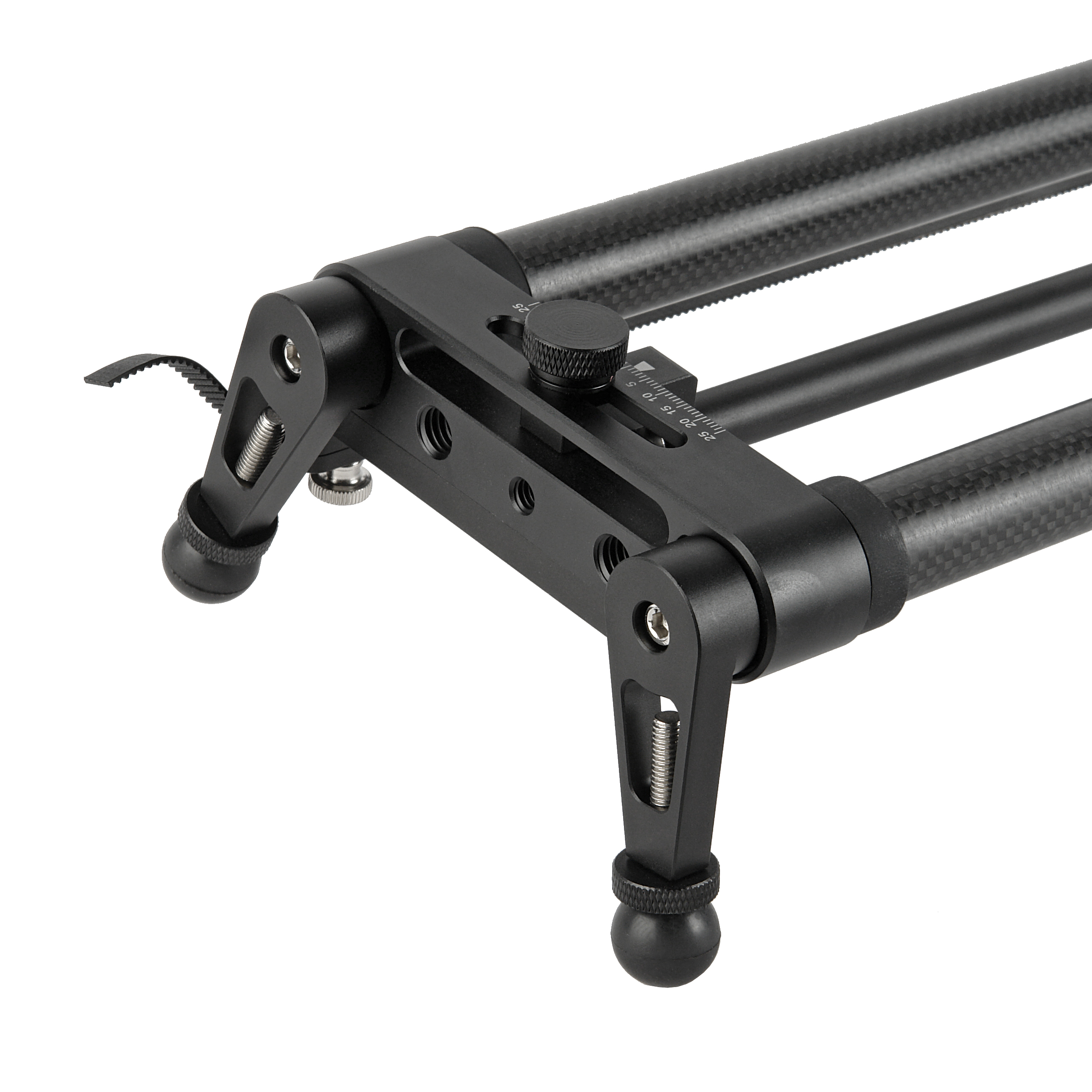 Два пузырьковых уровня, один из которых встроен в каретку для выравнивания рельсов, а другой – в штативную головку, и гарантирует отсутствие завала камеры по горизонту.