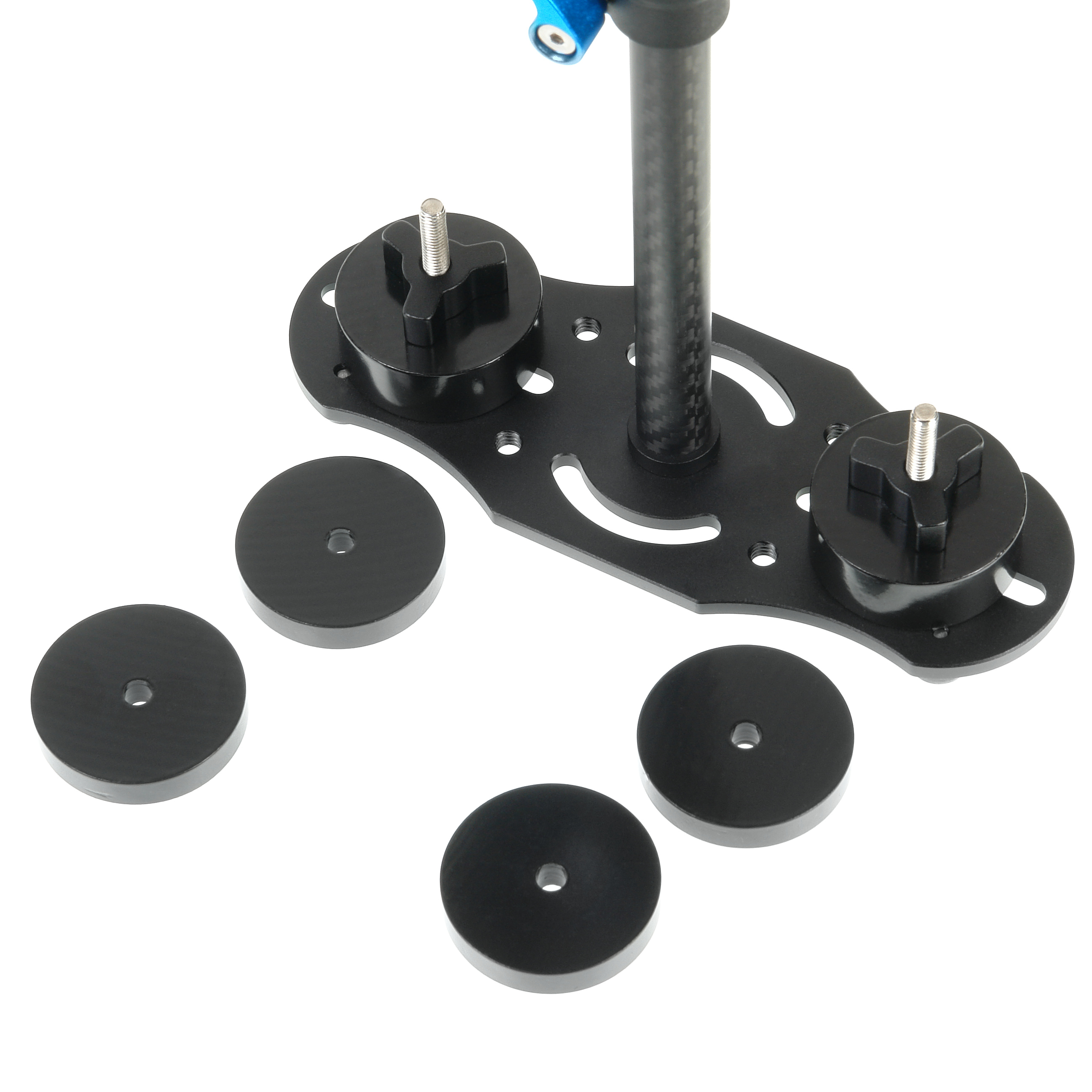 Система противовесов состоит из шести наборных грузов общим весом 827 г, которые крепятся при помощи двух винтов на базу противовесов. Грузы смещаются в продольном направлении вдоль пазов на расстояние до 5 см. Это позволяет произвести необходимую балансировку всей системы в зависимости от выбранной камеры, установленного объектива и используемых аксессуаров.