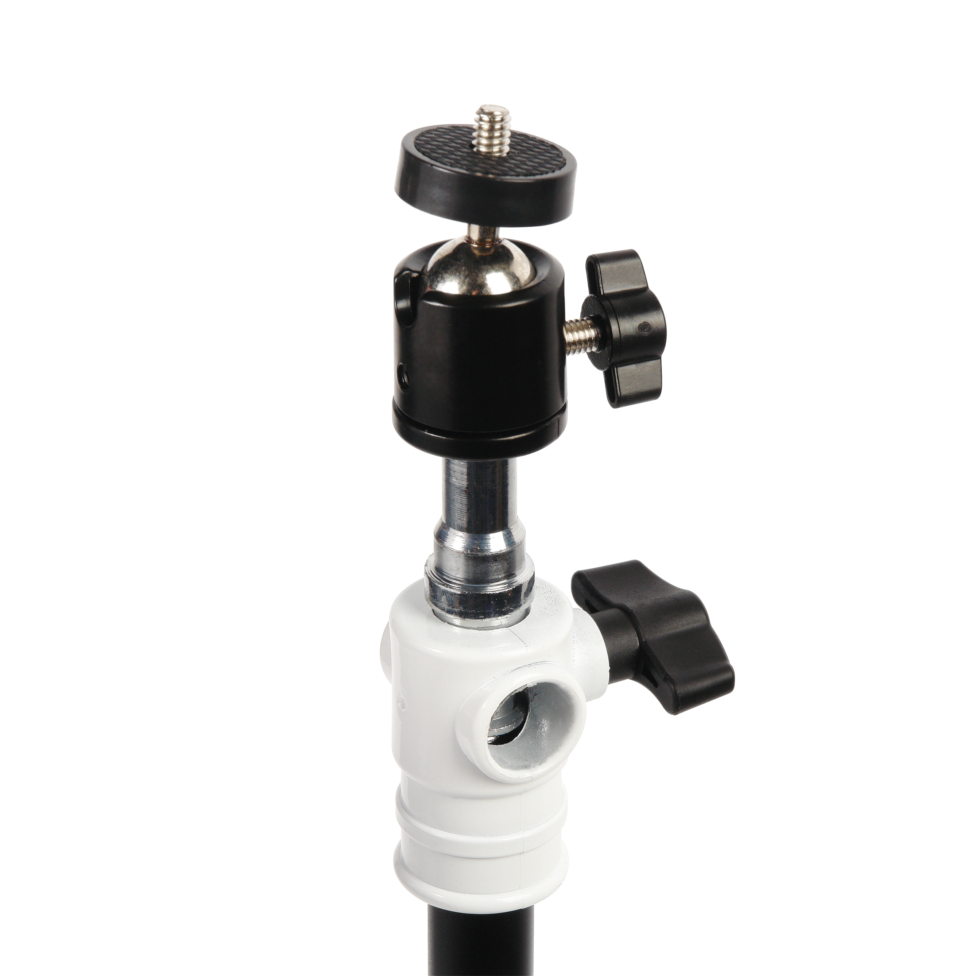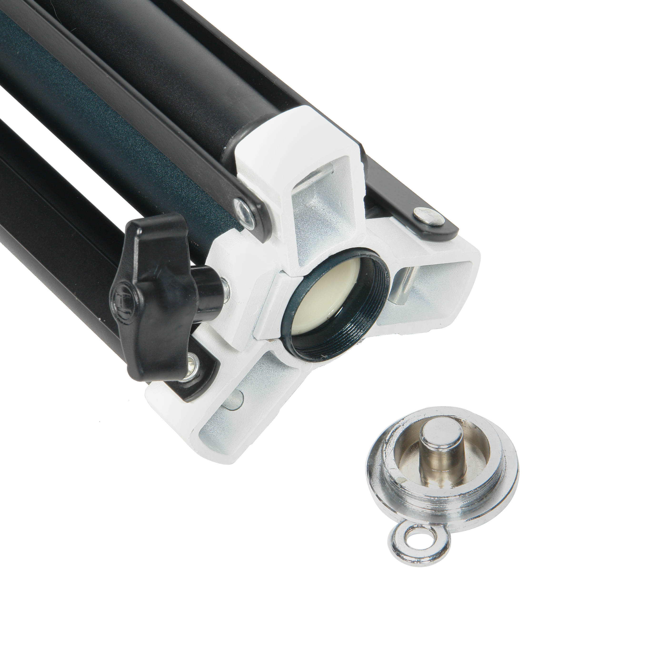 Секции телескопической колонны надежно соединяются между собой винтовыми зажимами. Съемную центральную колонну можно использовать отдельно, например в качестве перекладины для системы установки фона. Чтобы снять центральную колонну открутите защитную крышку.