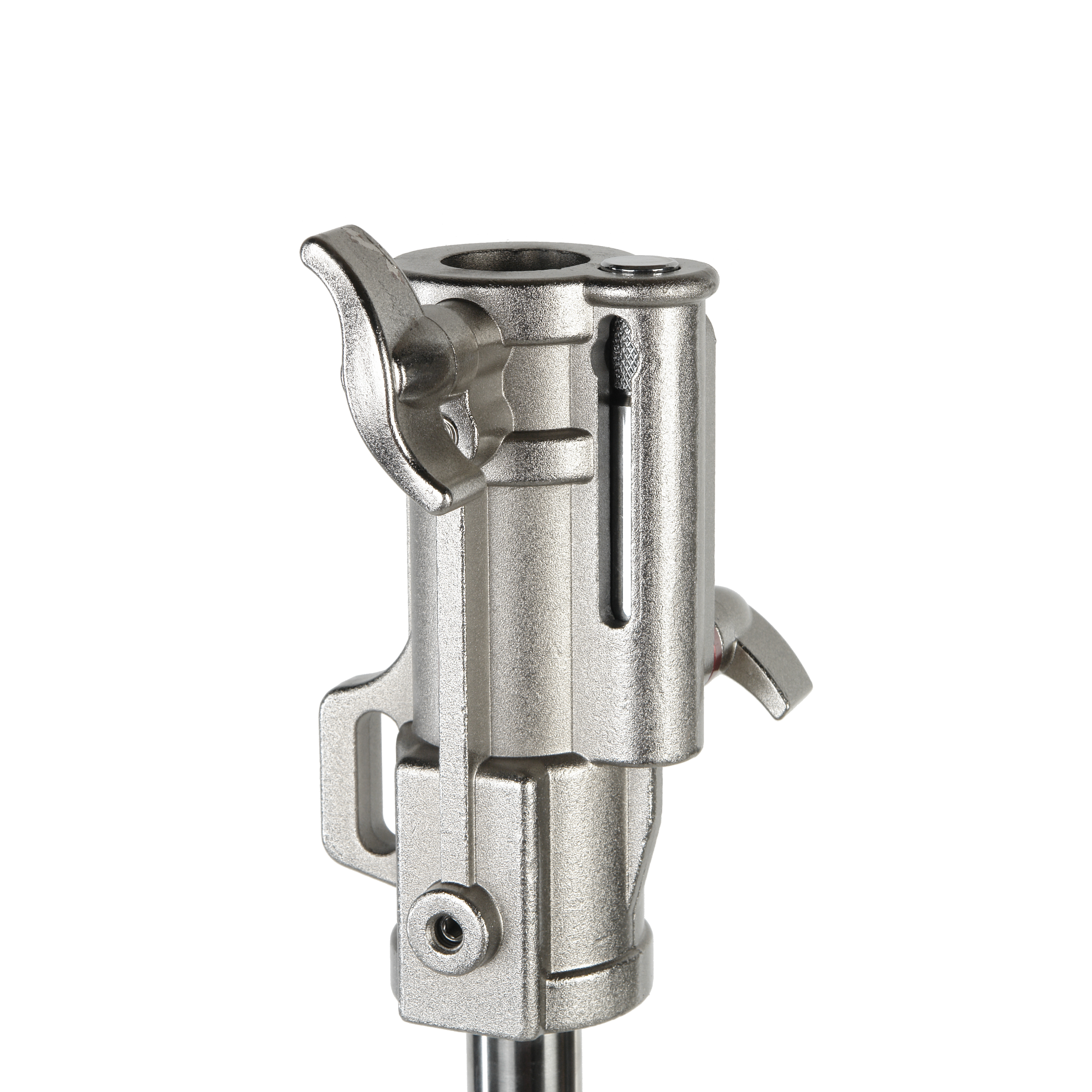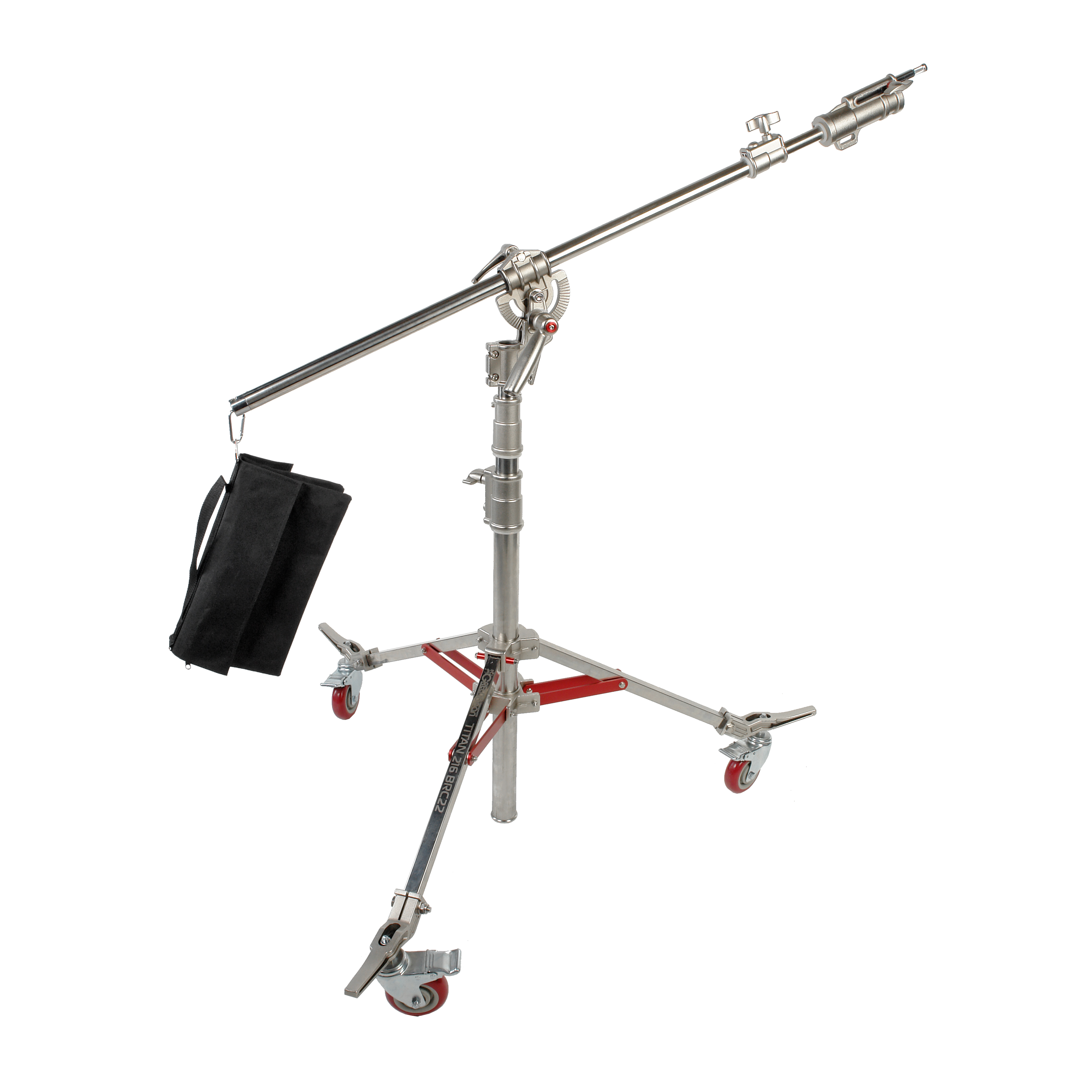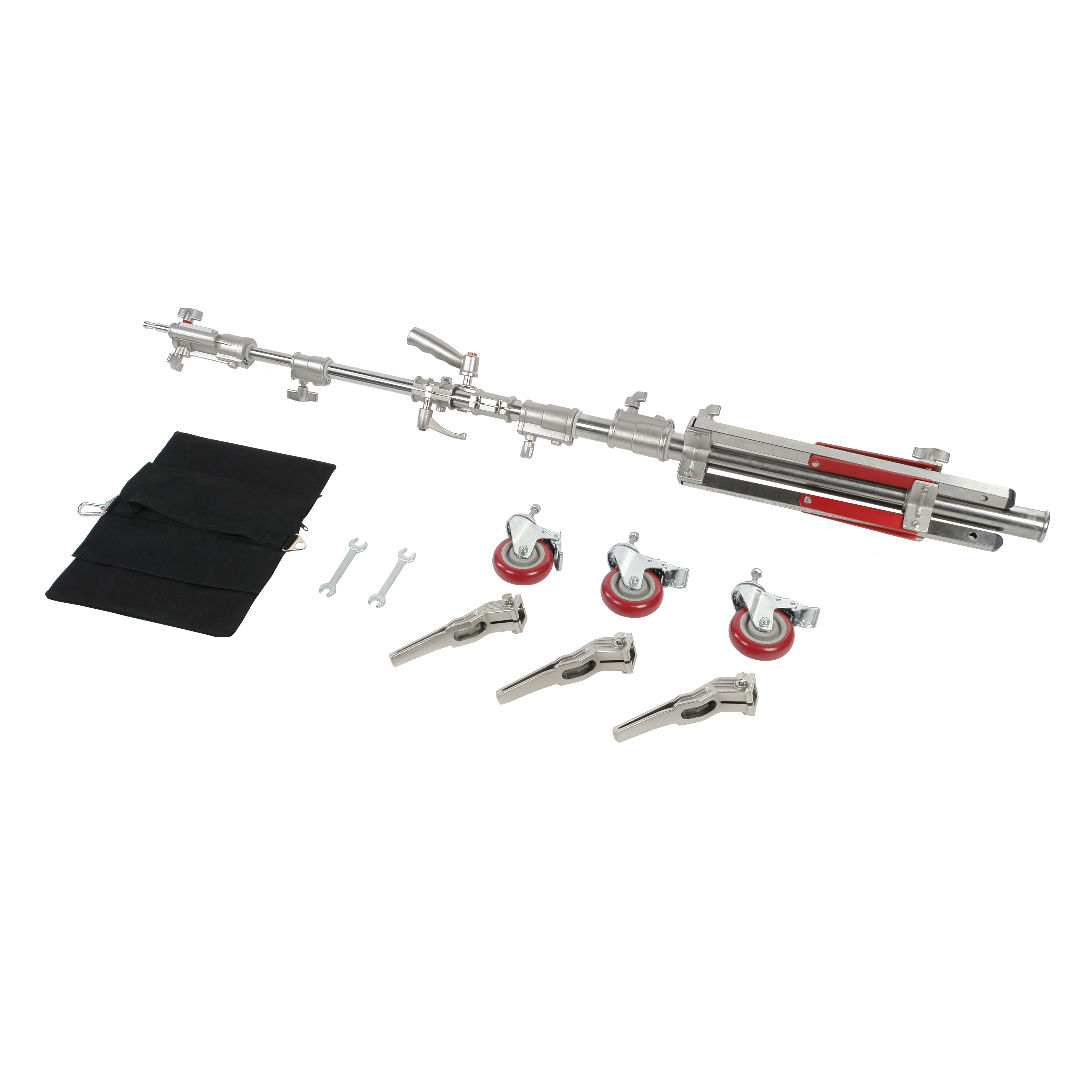 Регулируемая длина стальной телескопической перекладины составляет 118–218 см. Крепежный адаптер на конце перекладины (под стандартный шпигот 5/8") и дополнительный выдвижной шпигот Junior используются для установки источников постоянного света, светомодификаторов и дополнительных аксессуаров. Отверстие на противоположном конце перекладины служит для крепления комплектного мешка-противовеса. Общий вес оборудования и противовеса не должен превышать 20 кг.