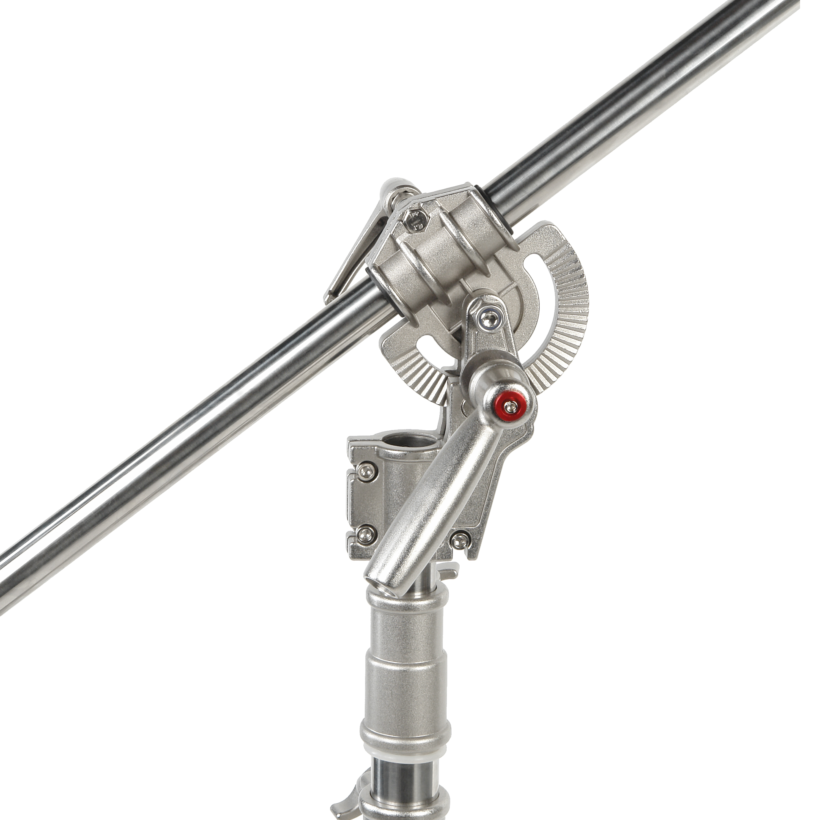 Угол наклона перекладины регулируется так, чтобы эффективно расположить оборудование над объектом съемки и при этом вывести стойку из кадра. Фиксация Угол наклона стрелы фиксируется надежным