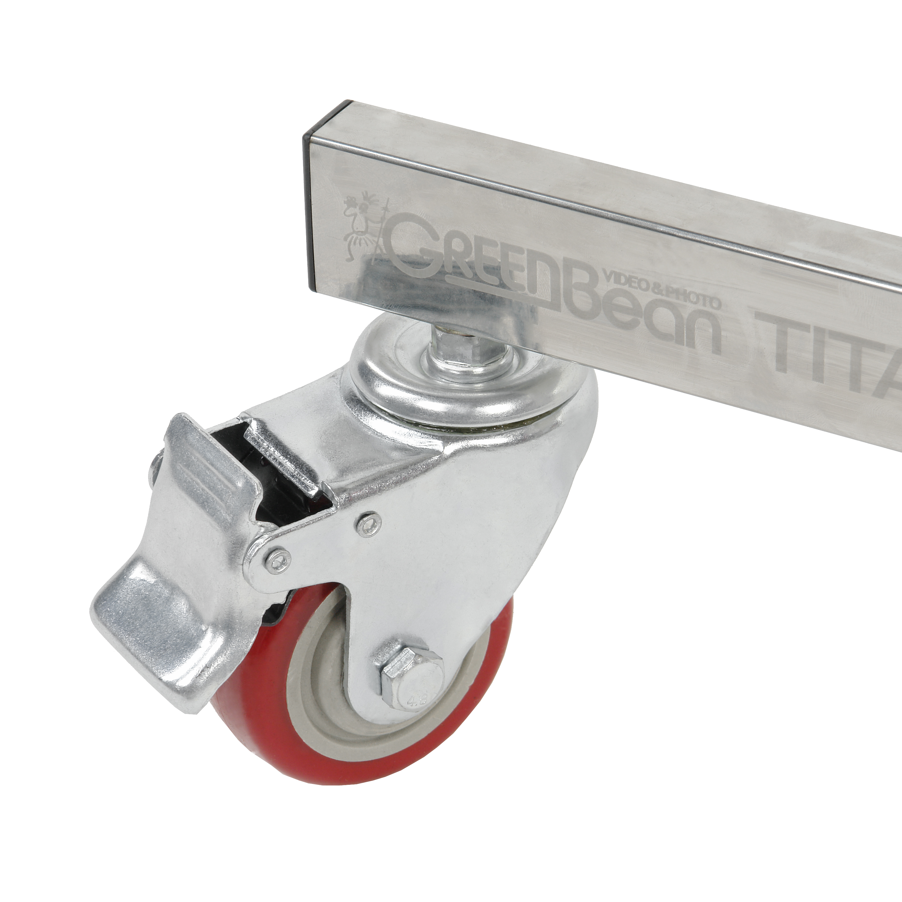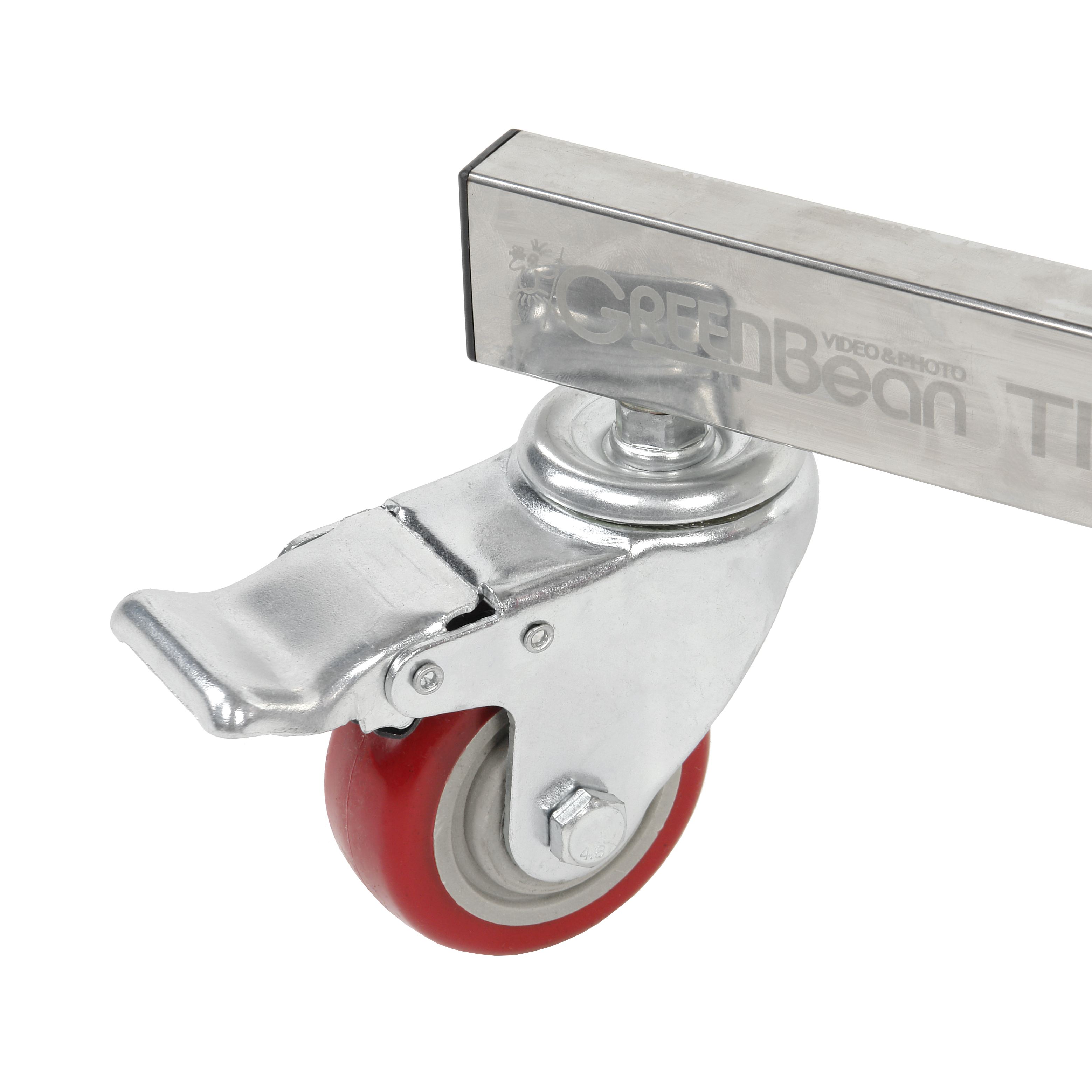 Стойка-журавль GreenBean Titan 220 BRM25 установлена на колесную тележку, позволяющую перемещать оборудование по студии. Колеса Ø75 мм с резиновым протектором и тормозным механизмом помогают сдвигать тяжелую стойку, а затем фиксировать её местоположение.