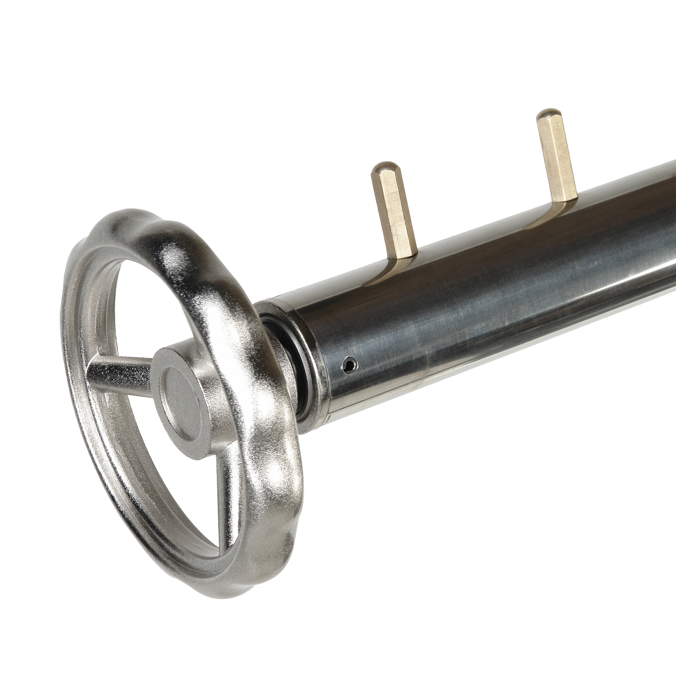 Направление осветителя можно регулировать с помощью червячного механизма, поворачивая маховик на конце перекладины. Адаптер штанги при этом меняет наклон и осветитель занимает необходимую позицию без предварительного сложного демонтажа и монтажа.