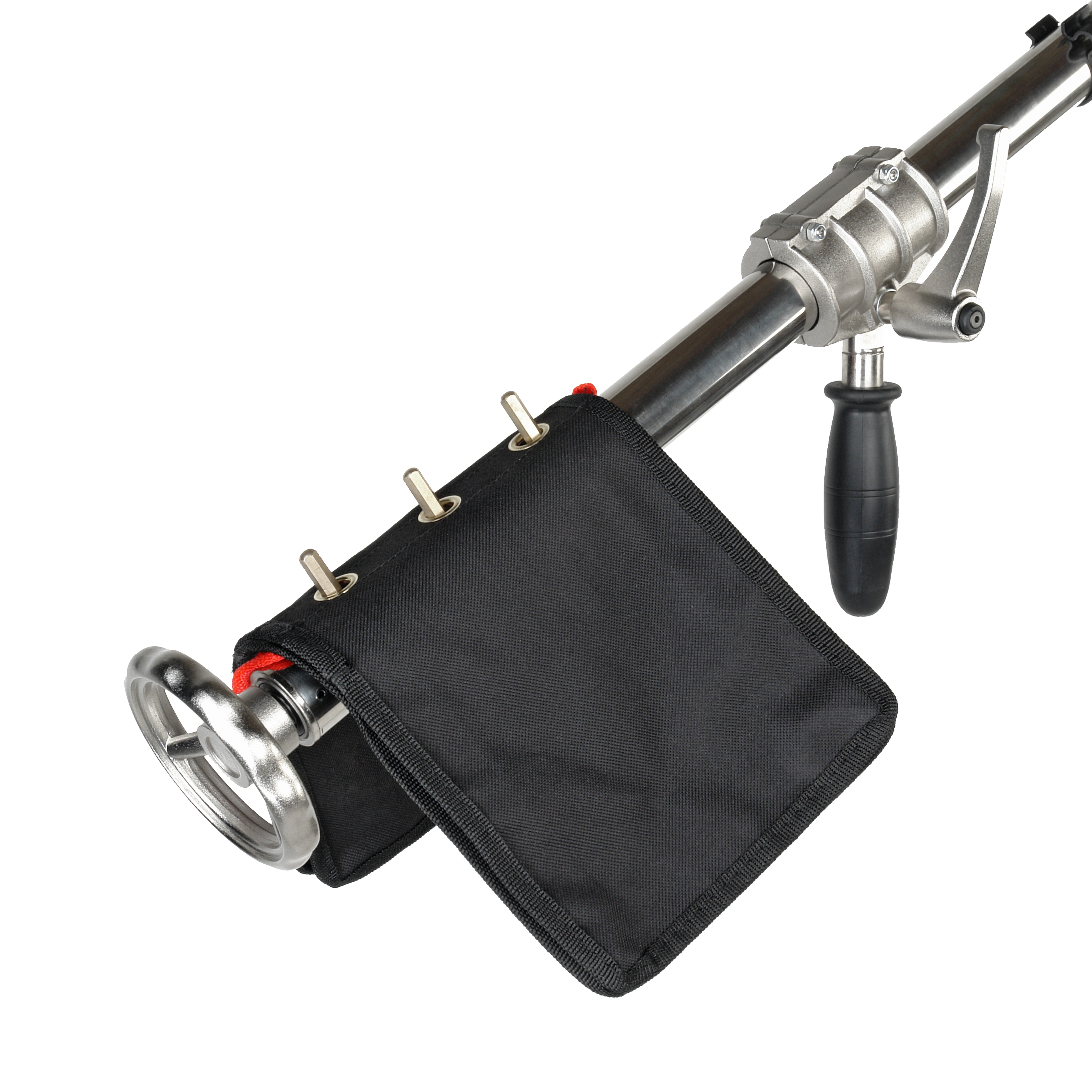 Крепежные штырьки на противоположном конце перекладины служат для крепления комплектного мешка-противовеса. Общий вес оборудования и противовеса не должен превышать 20 кг.