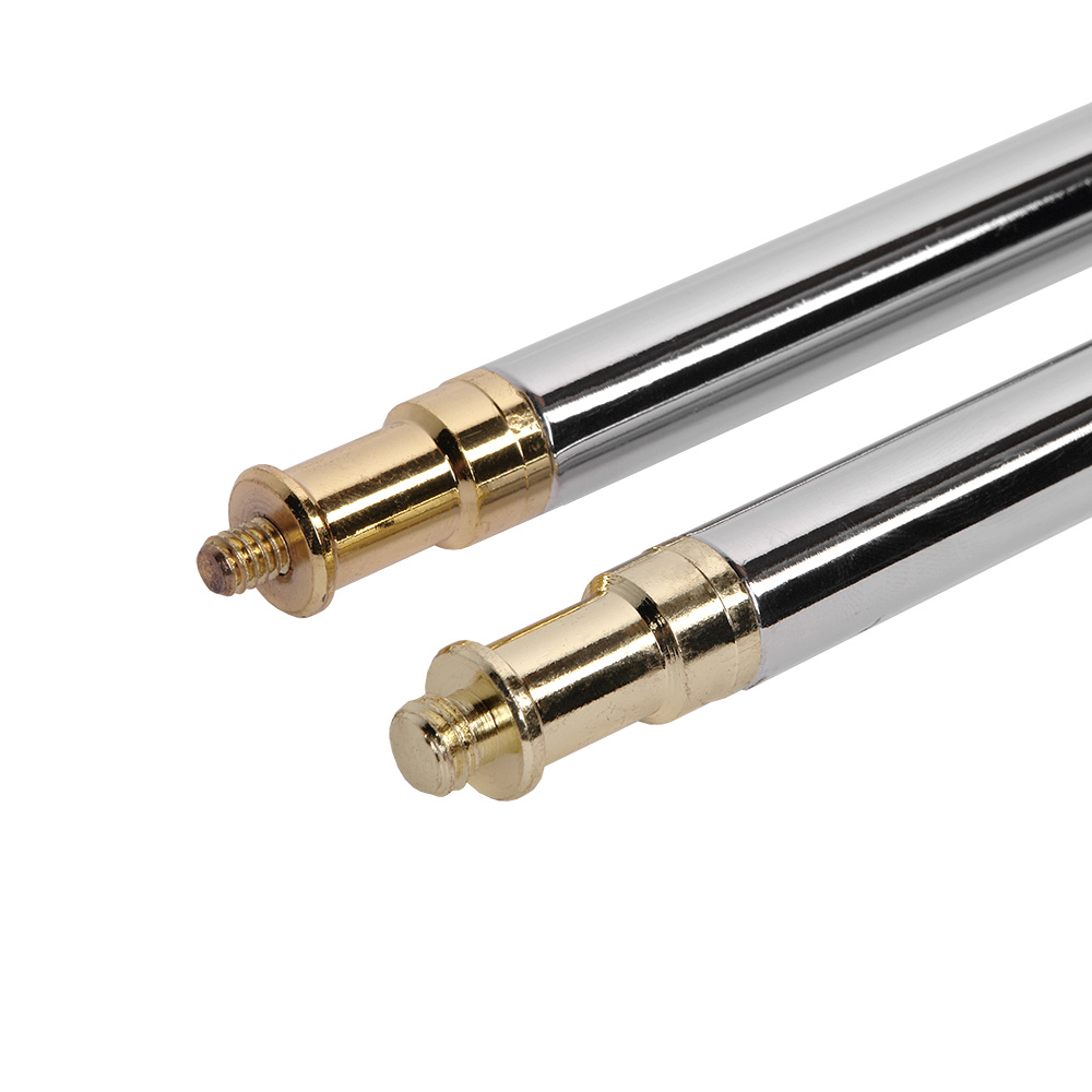 Длина перекладины - 128 см, диаметр 16 мм. С обоих концов перекладины находятся латунные шпиготы с винтами с резьбой 1/4“ с одной стороны и с резьбой 3/8“ с противоположной.