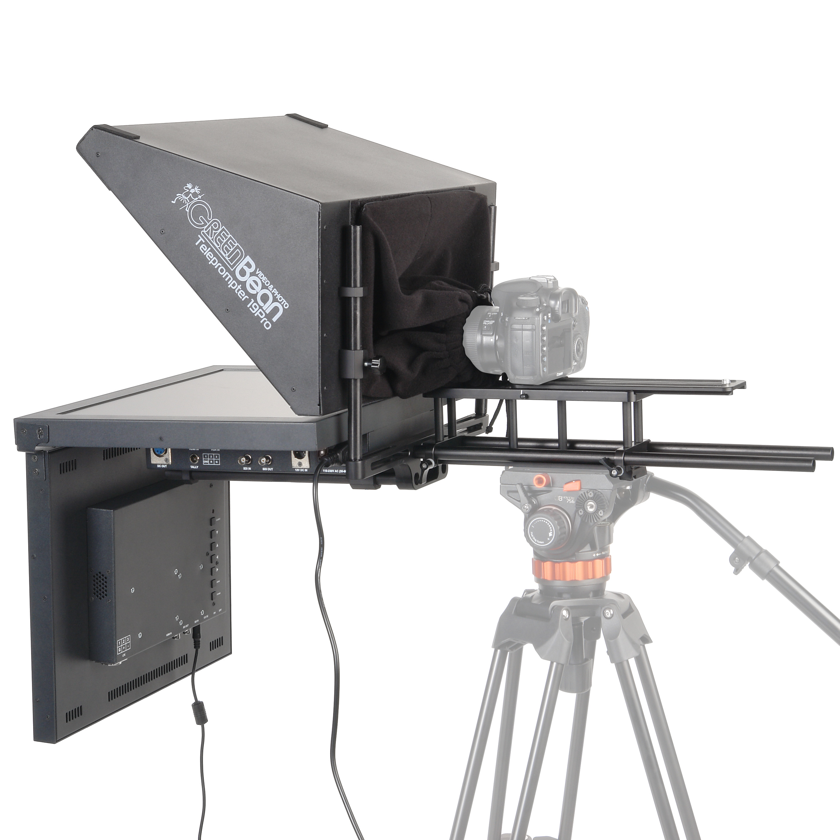 Телесуфлер GreenBean Teleprompter 19Pro – это функциональный и профессиональный телесуфлер, предназначенный удовлетворять потребность крупных съемочных или телевещательных студий. Телесуфлер предоставляет входные порты SDI, композитный (BNC), HDMI, VGA, а также выходные - SDI, композитный (BNC) для подключения профессиональных видеокамер различного формата, например, ENG/HD, а также системных студийных и вещательных камер.