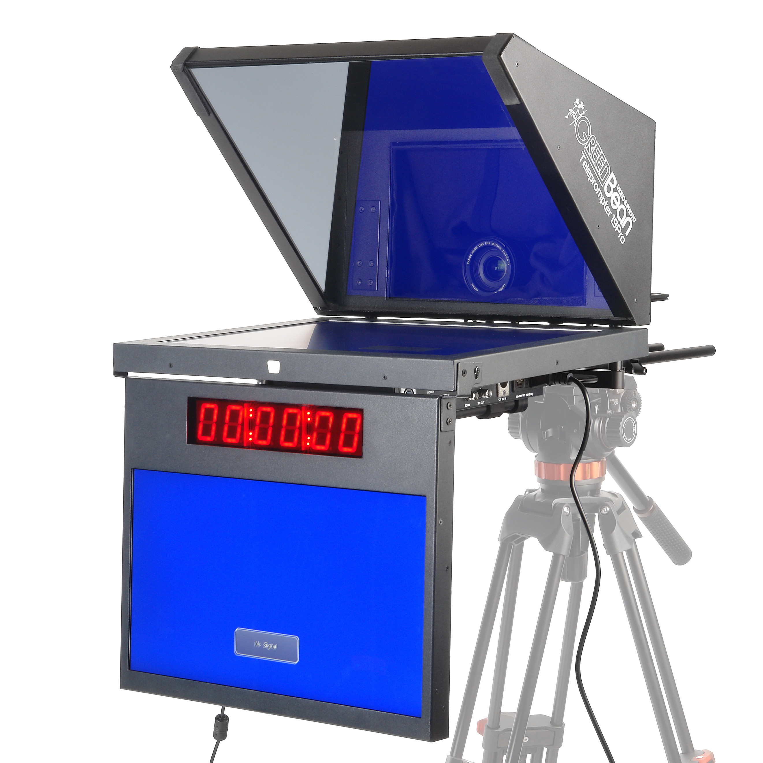 GreenBean Teleprompter 19Pro располагается перед камерой и помогает диктору (ведущему или актеру) вести запись или прямой эфир без заучивания текста, при этом сохранять постоянный зрительный контакт с аудиторией. Отличительной особенностью GreenBean Teleprompter 19Pro является то, что помимо основного монитора 19’’, телсуфлер оснащен дополнительным (TALENT) видеомонитором 17” с цифровым табло отсчета времени. TALENT-монитор предоставляет возможность диктору контролировать ход эфира - видеть себя на экране и проверять тайминг по цифровому табло отсчета времени, расположенному на мониторе.