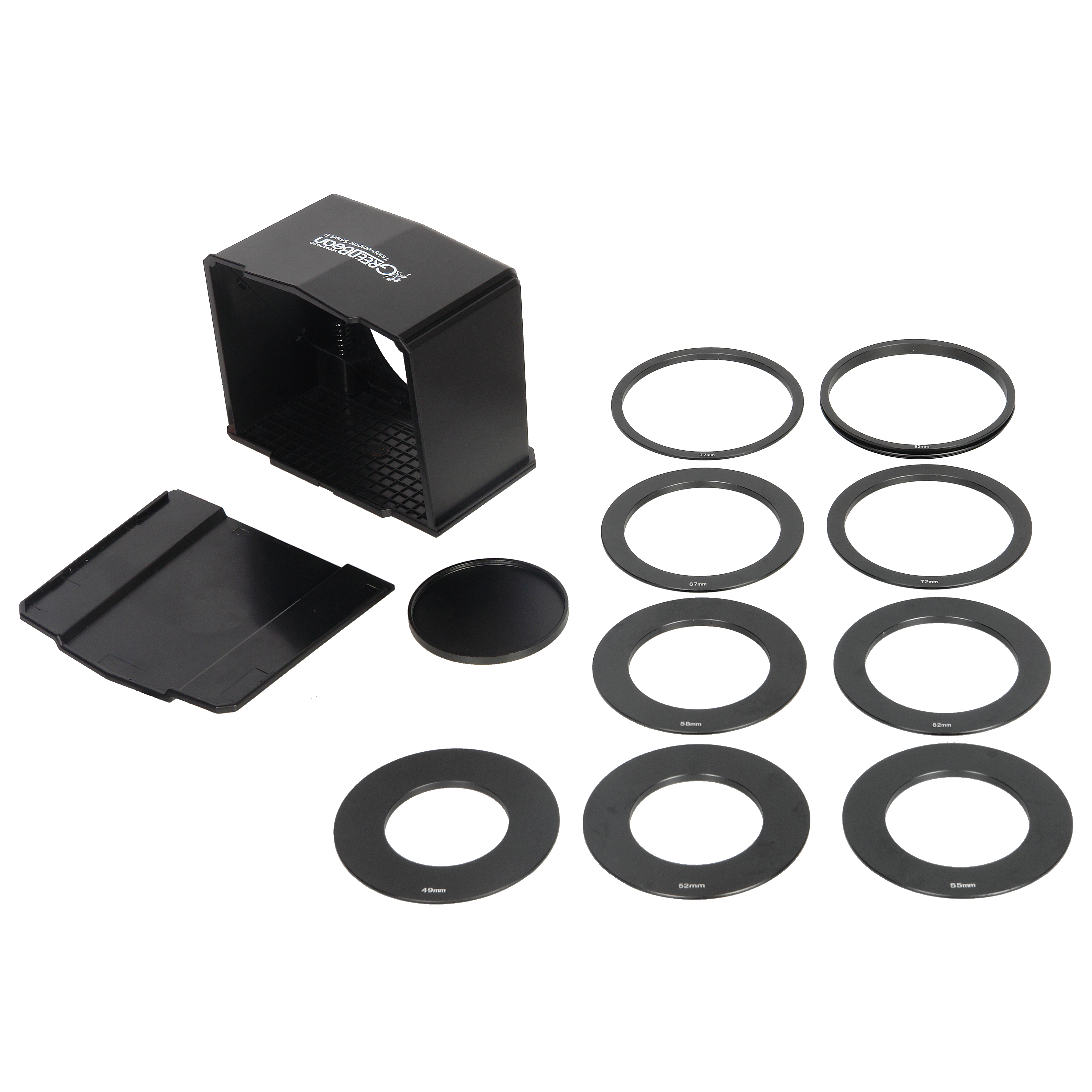 Переходные кольца, устанавливаются в корпус телесуфлера, и накручиваются на резьбу для крепления светофильтра на объективах различных диаметров от 49 до 82 мм. Смартфон устанавливается на выдвижной подпружиненной площадке телесуфлера в жесткий зажим, который надежно закрепляет телефон, телесуфлер можно использовать на ходу, прямо во время репортажа на выезде.