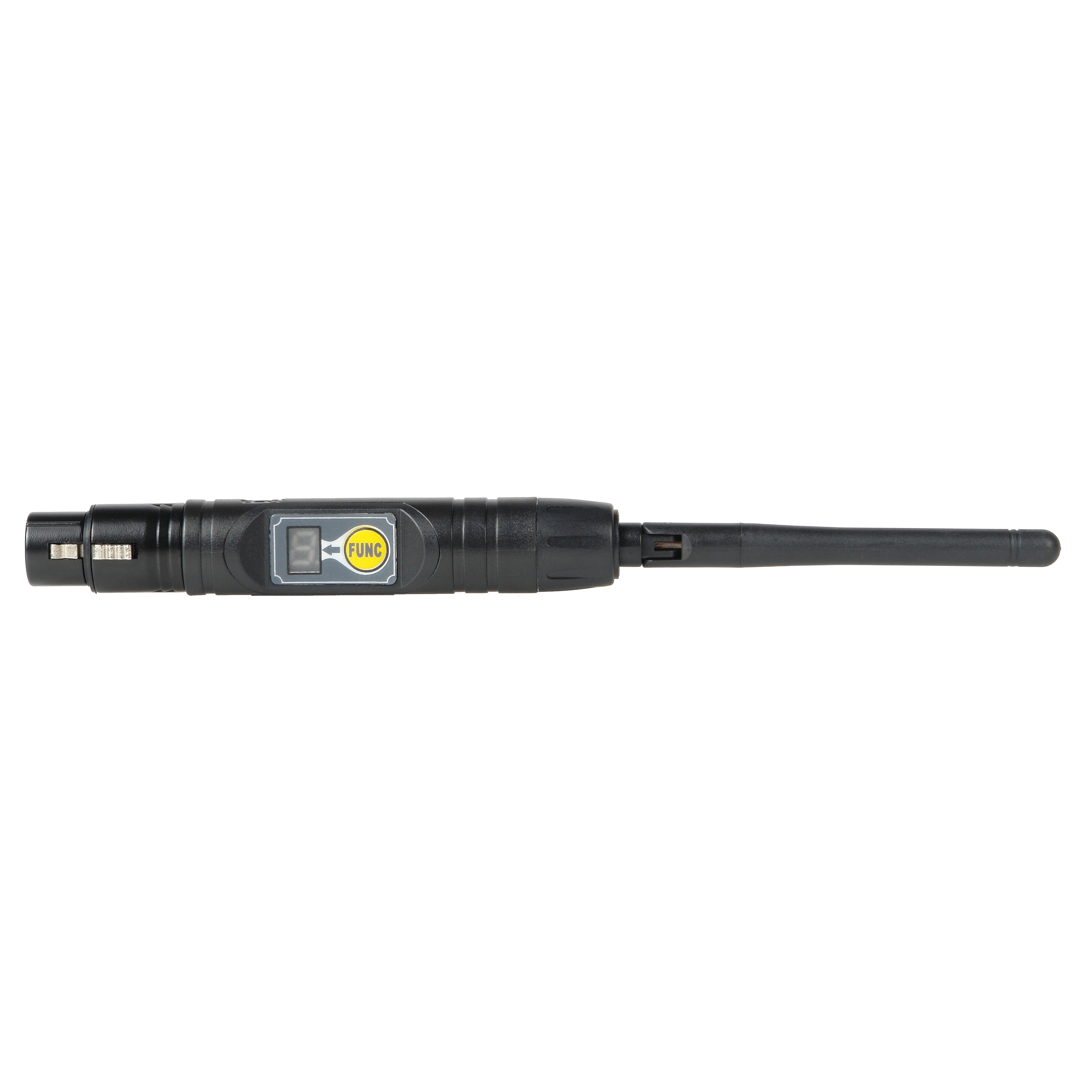 Беспроводной радиомодуль AirDMX 512T с типом разъема XLR (3-pin male) предназначен приема или передачи радиосигнала в системах дистанционного беспроводного управления осветительным и другим сценическим или студийным оборудованием по протоколу DMX 512. (Существует также радиомодуль с типом разъема XLR3 (3-pin female), выполняющий такие же функции, но присоединяющийся к интерфейсу DMX 512 XLR (3-pin male)).