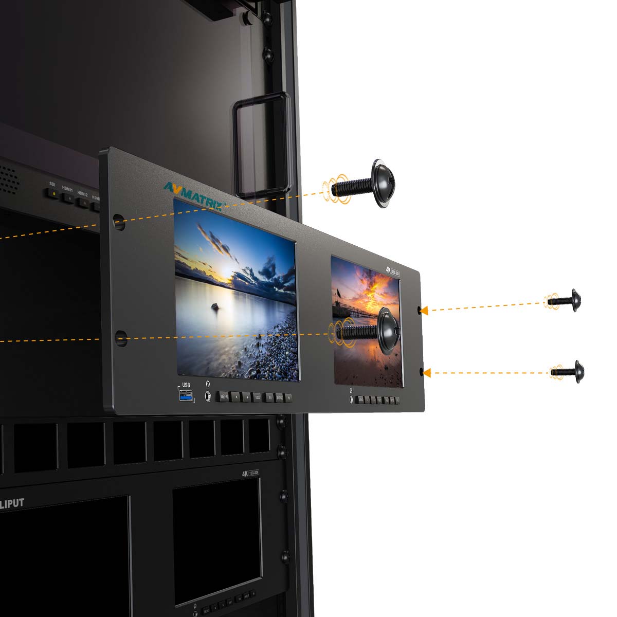 Монитор имеет различные способы монтажа для вещательной студии, мониторинга на выезде, в передвижных комплексах и т.д. Корпус 3RU идеально вписывается в 19-дюймовую стойку. Монитор оснащен двумя 7-дюймовыми экранами, которые позволяют пользователям просматривать два видеосигнала одновременно, что упрощает создание сценария мониторинга с несколькими камерами.