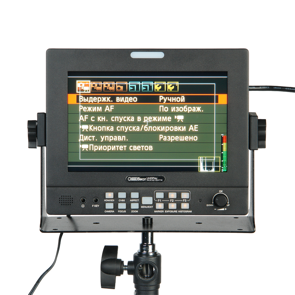 HDMI-вход и выход особенно полезны при съемке с использованием DSLR-камеры. Монитор поддерживает передачу видеоданных в форматах 480i /480p / 576i / 576p / 720p / 1080i / 1080p / 4К и цифровых аудиосигналов.