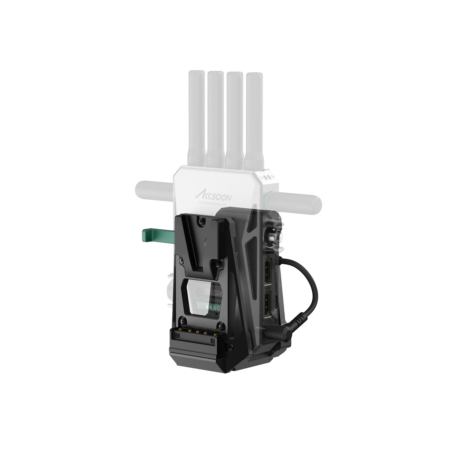 Адаптер Accsoon V-Lock предназначен для беспроводных передатчиков CineView Master 4K и CineView 2 SDI. Он позволяет питать камеру и видеосендер от одной аккумуляторной батареи V-Mount, превращая их в единую, удобную и хорошо сбалансированную систему.