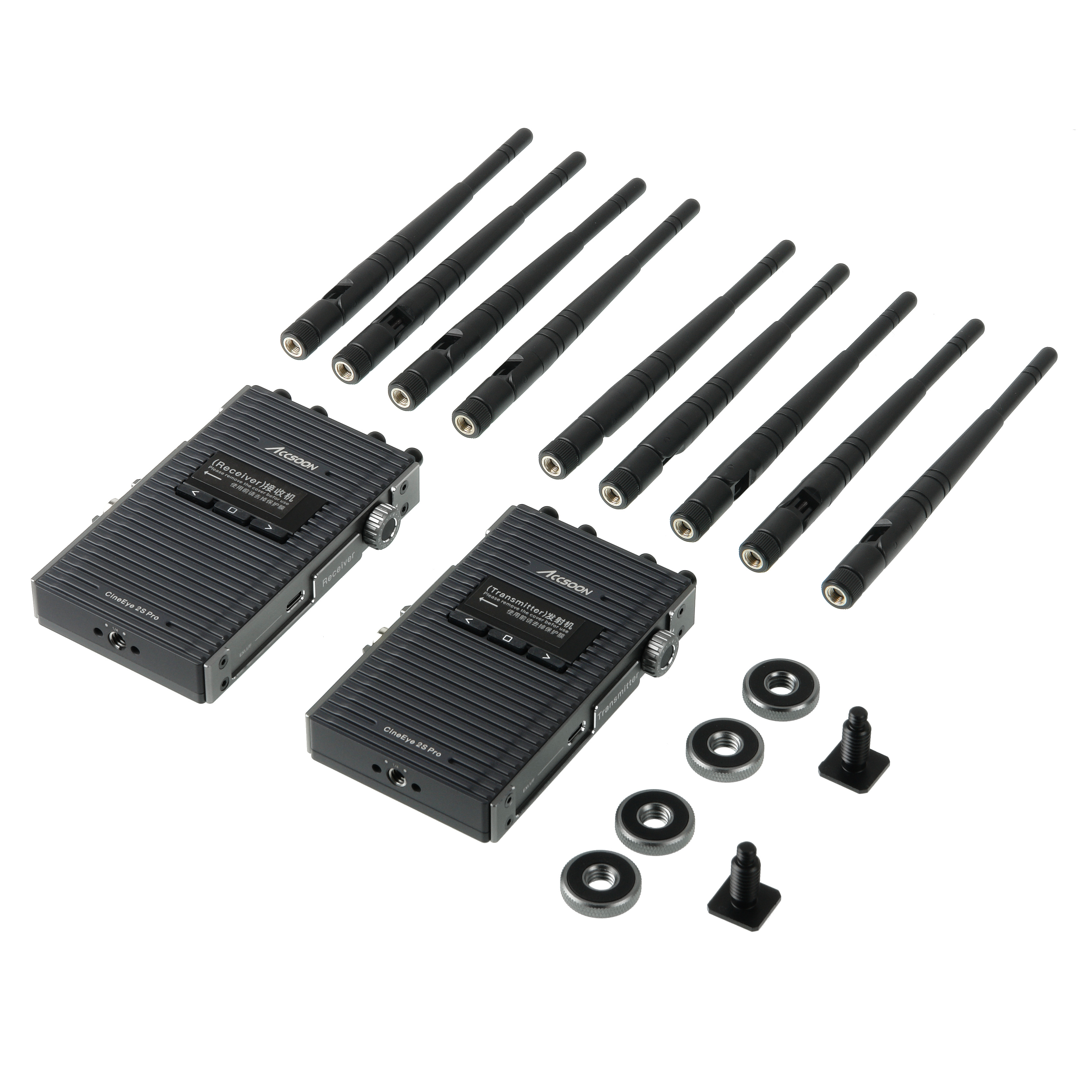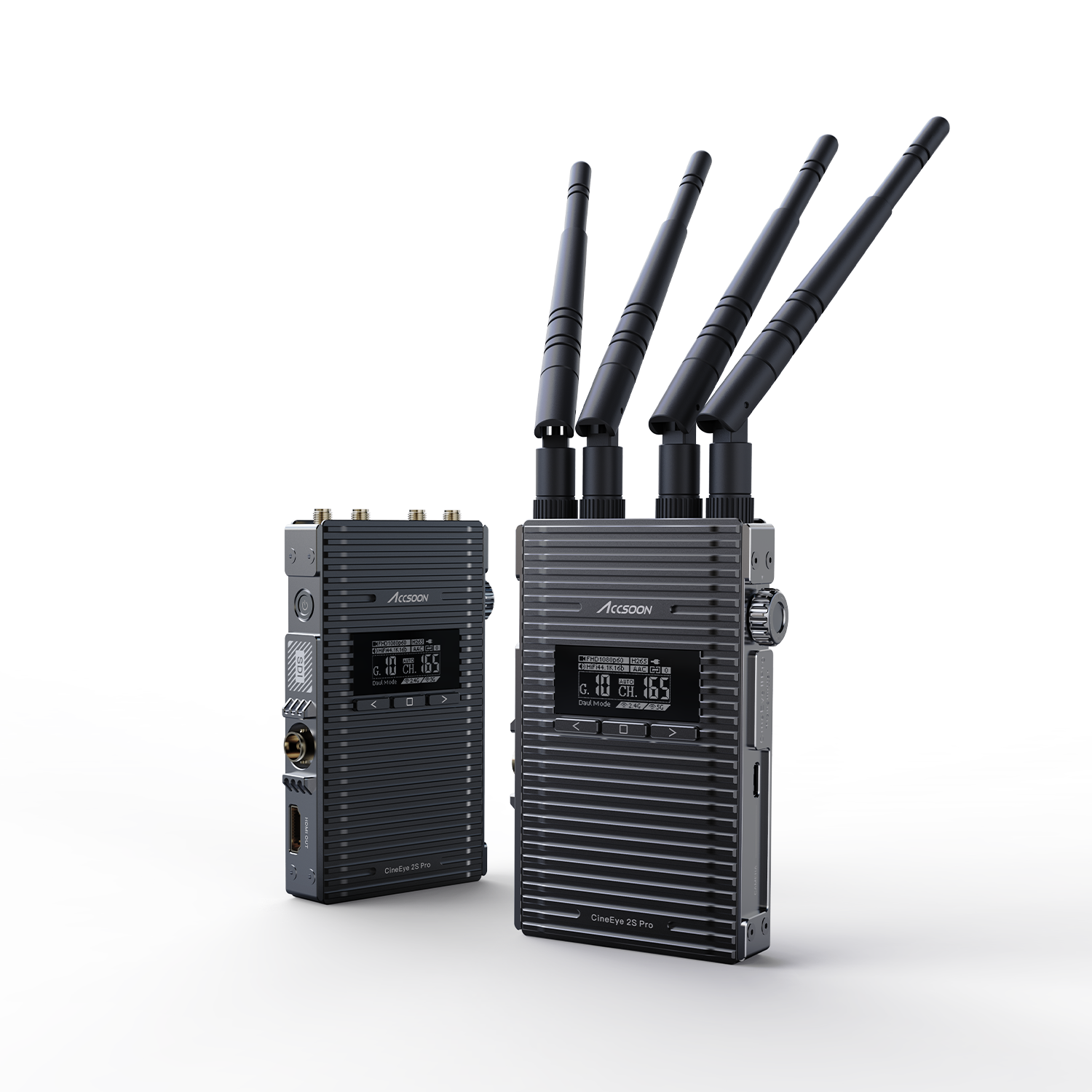 Видеосендер Accsoon CineEye 2S Pro – это комплект беспроводных радиоустройств, состоящий из трансмиттера (передатчика) и ресивера (приемника), передающий и принимающий видеосигнал со звуком с камеры в режиме реального времени с задержкой менее 0.06с. Трансмиттер может принимать на вход SDI или HDMI видеосигнал до 1080p с частотой до 60 кадров в секунду и передавать его по Wi-Fi 5 ГГц и 2.4 ГГЦ одновременно сразу на 4 устройства (в т.ч. на комплектный ресивер или на мобильные устройства iOS/Android). Возможно также приобретение дополнительных устройств – приемников Accsoon CineEye 2S Pro Receiver для видеосендера.