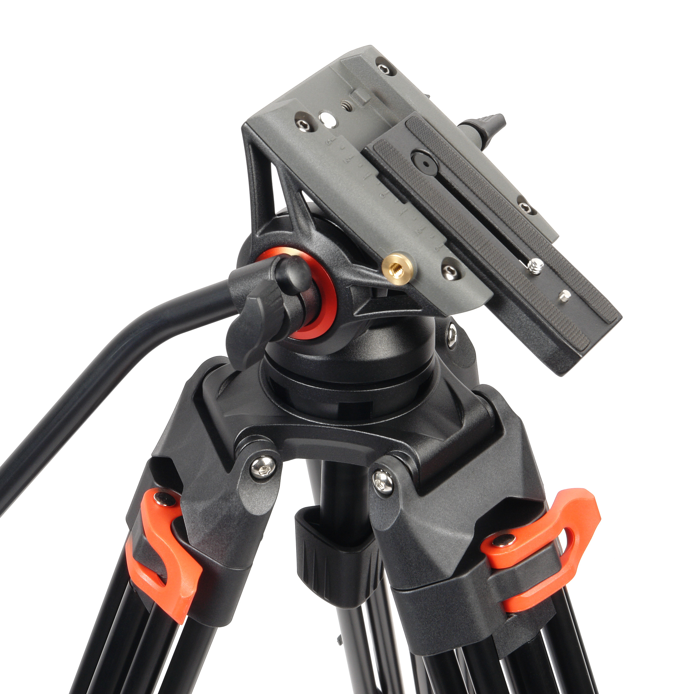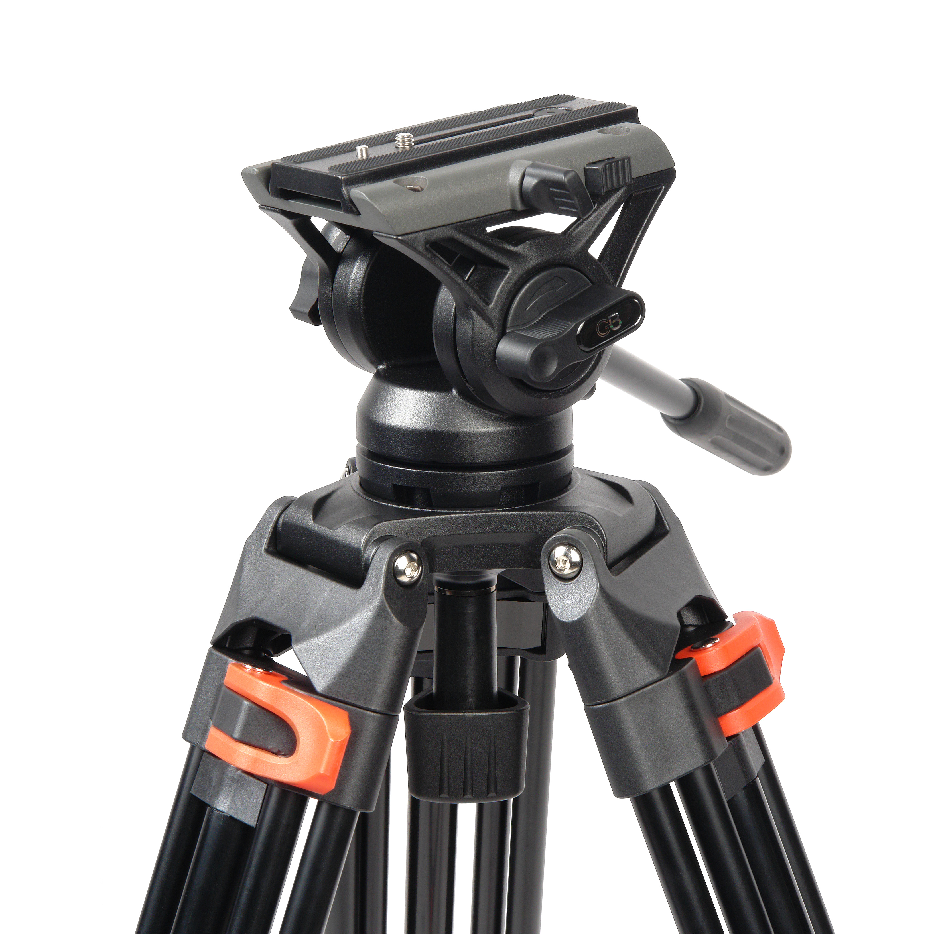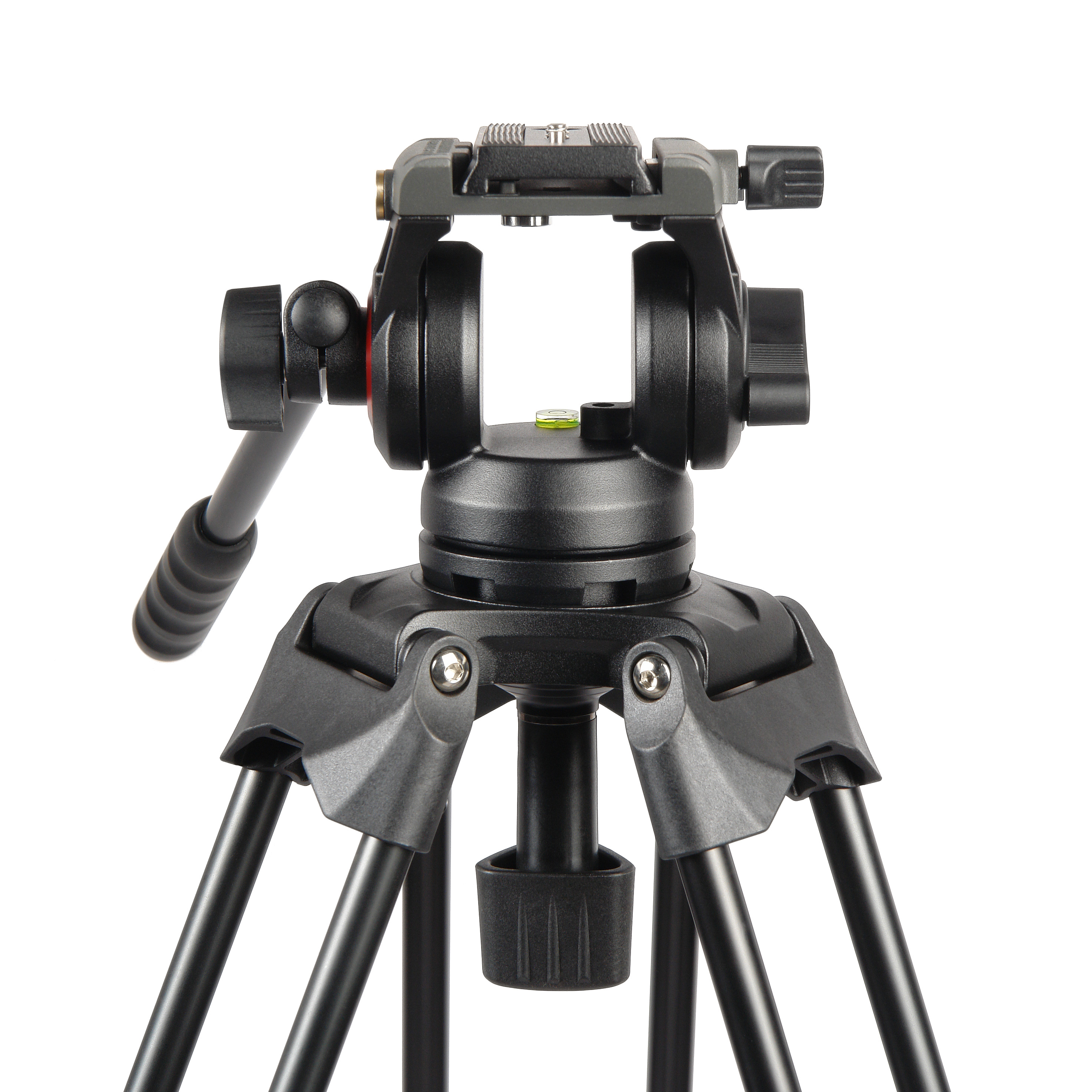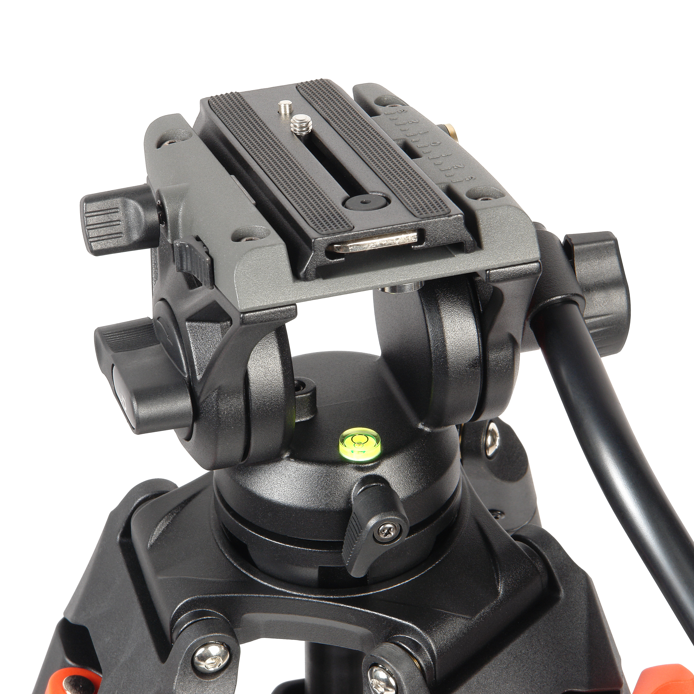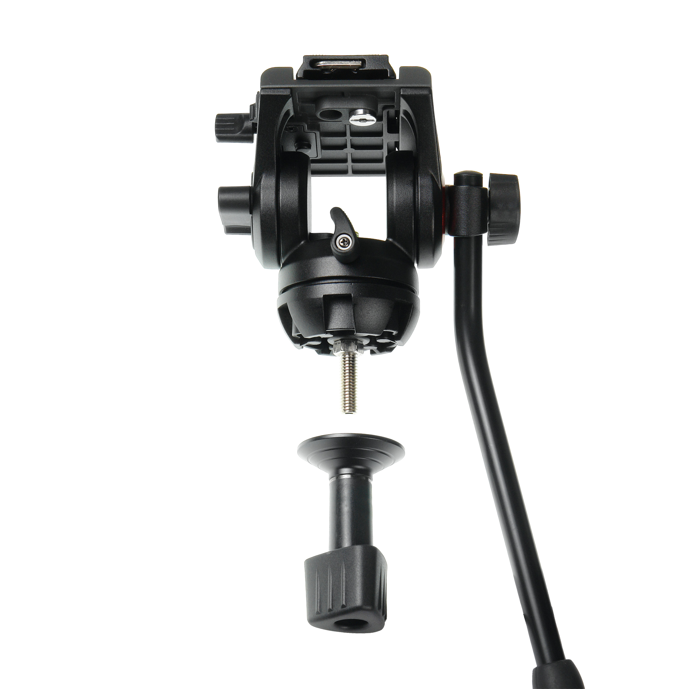 Съёмная головка с жидкостным демпфированием и системой постоянного контрбаланса поворачивается на 360˚ по горизонтали, наклоняется на углы от -70° до +90°, имеет независимые фиксаторы панорамирования.
