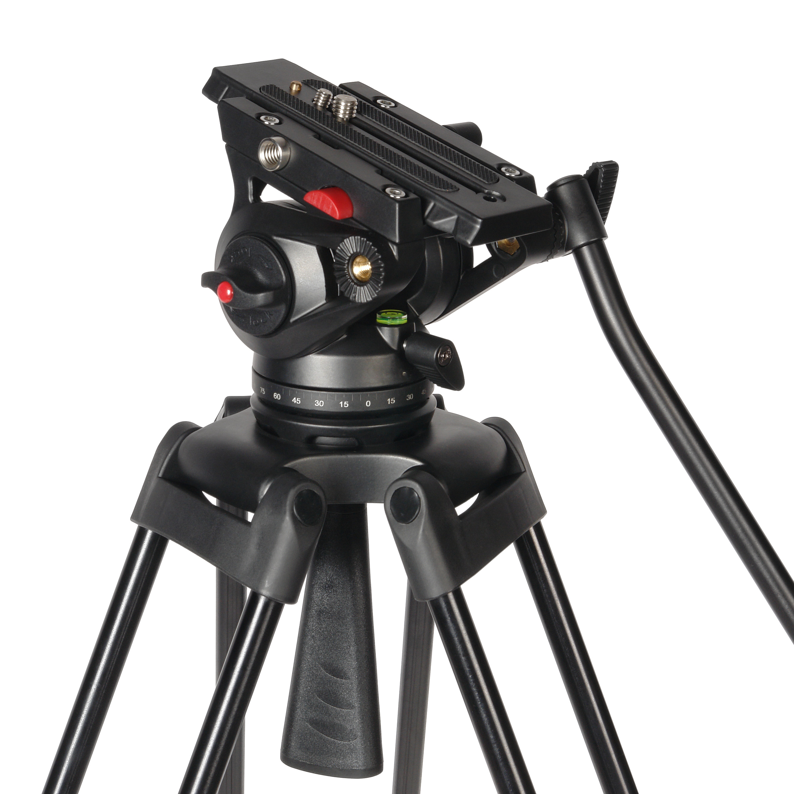 2D видеоголовка штатива с жидкостным демпфированием и контрбалансом обеспечивает плавное и легкое движение камеры при горизонтальном панорамировании на на 360˚, вертикальном панорамировании от +80˚ до -70˚. В случае необходимости, механизмы вертикального и горизонтального панорамирования фиксируется независимо друг от друга винтами.
