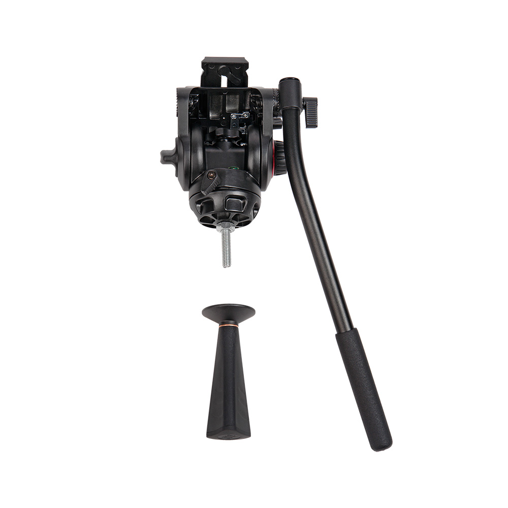 Съёмная голова с жидкостным демпфированием и системой постоянного (неотключаемого) контрбаланса поворачивается на 360˚ по горизонтали, наклоняется вперёд и назад на углы от -70° до +90°, имеет независимые фиксаторы панорамирования и независимые бесступенчатые регуляторы усилия вертикального и горизонтального демпфирования. Голова изготовлена из алюминиево-магниевого сплава. Благодаря жидкостному демпфированию все движения происходят плавно и без рывков. Дополнительно голова оснащена предохранителем площадки, кнопка которого находится на левой стороне. Также на левой стороне головы есть отверстие с системной резьбой 3/8“ для установки дополнительного оборудования (например, ) или, в зависимости от резьбы на вашей камере, можно ввернуть «лишний» винт для исключения его потери. Винтовое крепление головки к штативу выполнено из стали.