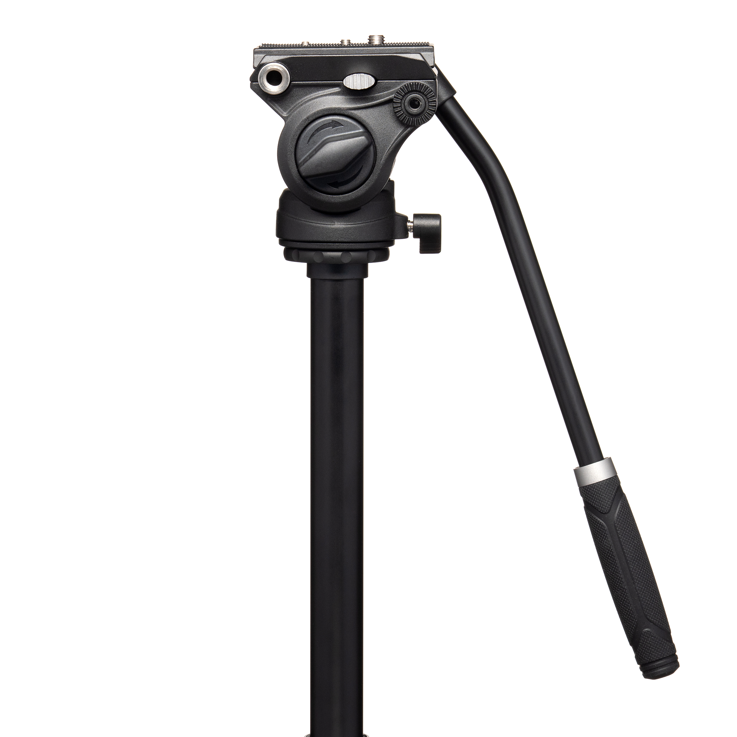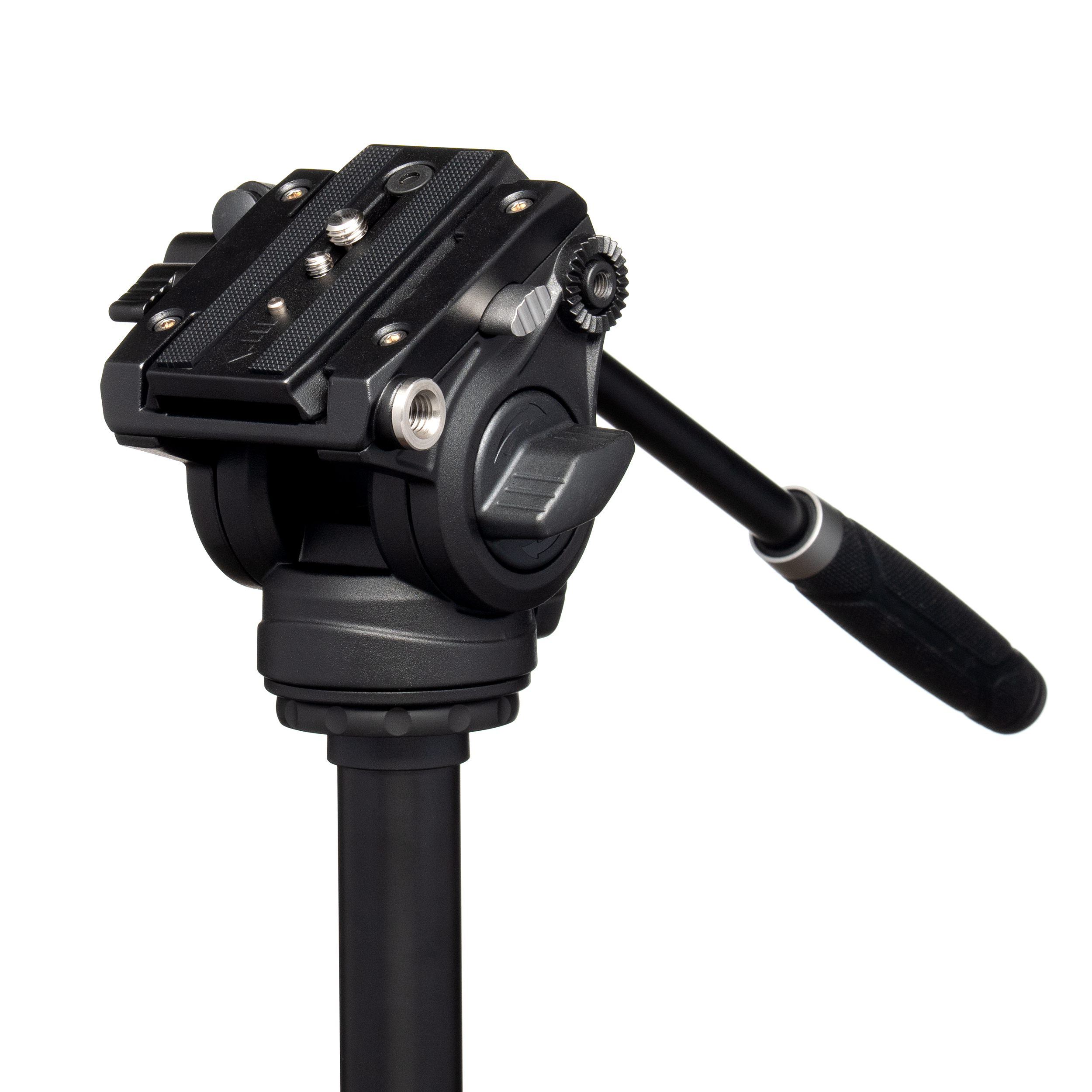 Компактная и легкая 2D-видеоголовка из алюминиево-магниевого сплава с жидкостным демпфированием помогает проводить плавные горизонтальные (360º) и вертикальные (-75º...+90º) панорамирования.