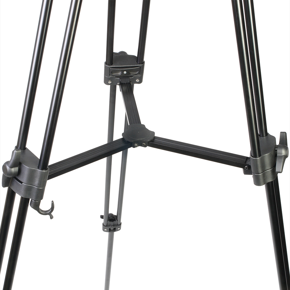 3-секционные сдвоенные телескопические алюминиевые ноги обеспечивают компактность и малый вес. Модернизированные зажимы надежно и быстро блокируют секции. Для усиления штатива используется верхняя растяжка, благодаря этому штатив можно использовать на неровных поверхностях (камнях, ступенях лестницы и т.д.). На концах штативных ног размещены резиновые опоры препятствующие скольжению. Для дополнительной устойчивости в ветреную погоду в одной из ног штатива находится подпружиненный трос с крюком для установки груза противовеса.