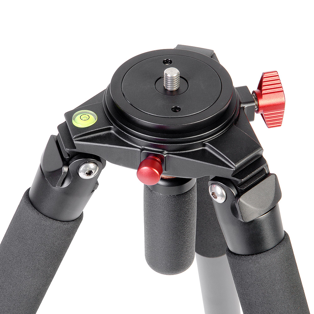 Мощное литое основание штатива и секции большого диаметра обеспечивают максимальную устойчивость на скручивание и быстрое затухание колебаний. Ноги штатива выполнены из прочного алюминиевого сплава, клипсовые замки QuickLock надежно соединяют секции. В комплекте поставляются съемные металлические шипы и резиновые пятки, эта позволяет легко заменять изношенные опоры, либо установить другие, подходящие для конкретной ситуации (совместимы опоры с винтом диаметром 10 мм).