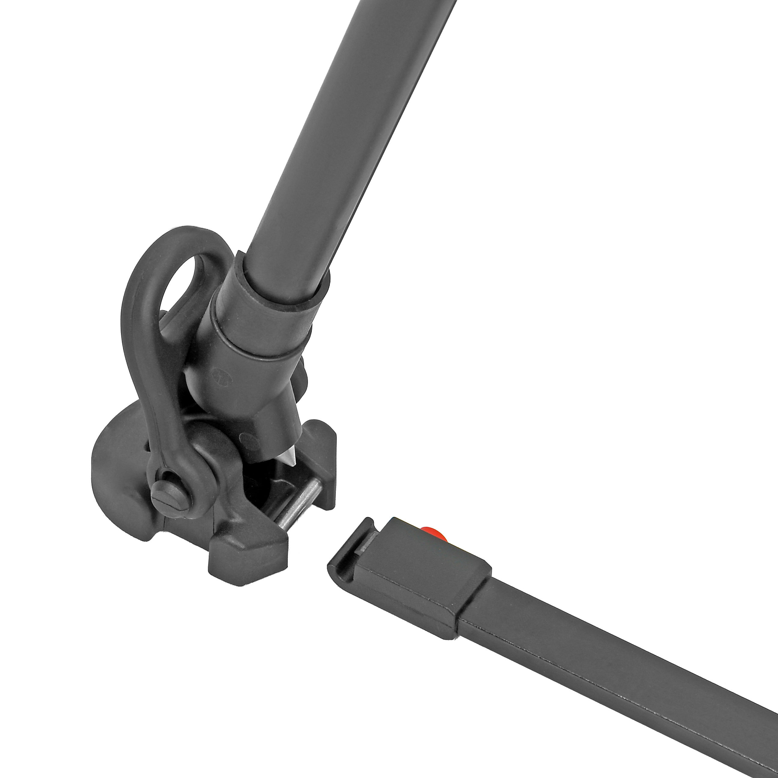 Чтобы надежно зафиксировать штатив на неровностях или в узком пространстве, используется съемная телескопическая растяжка. Система быстрой фиксации Fast Lock позволяет установить её как в качестве средней, так и нижней растяжки. Металлические внутренние секции отвечают за прочность и износостойкость механизма.
